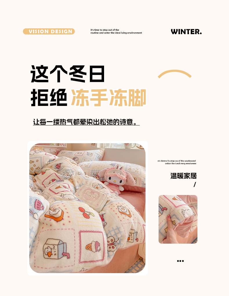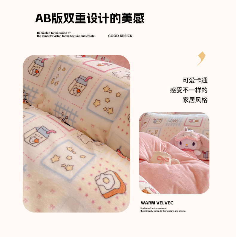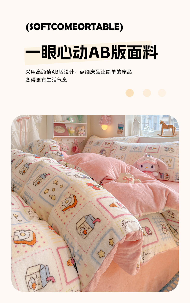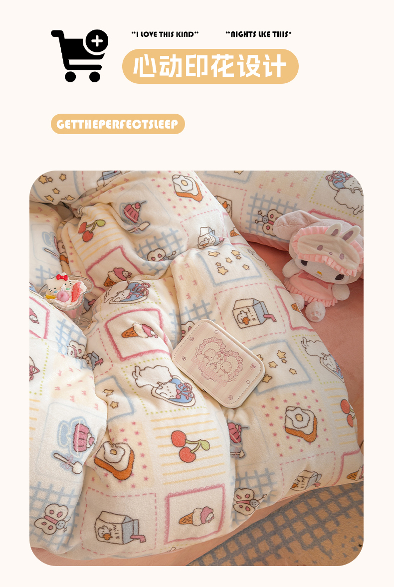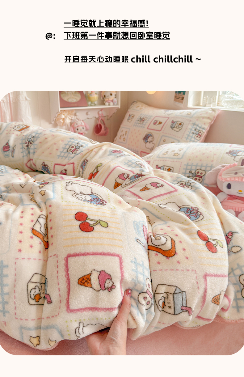 当前位置: 91家纺网 > 商品网购 > 床品套件 > 四件套 > 牛奶绒四件套 > 罗亿家纺 2025新款ins小清新少女奶油卡通可爱加厚200克牛奶绒四件套【3.6公斤】(小红书推荐) 甜品屋