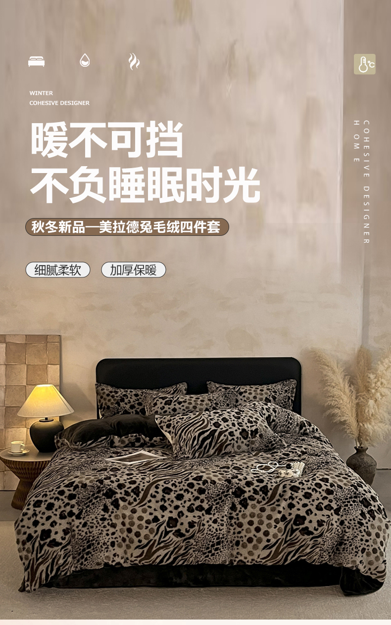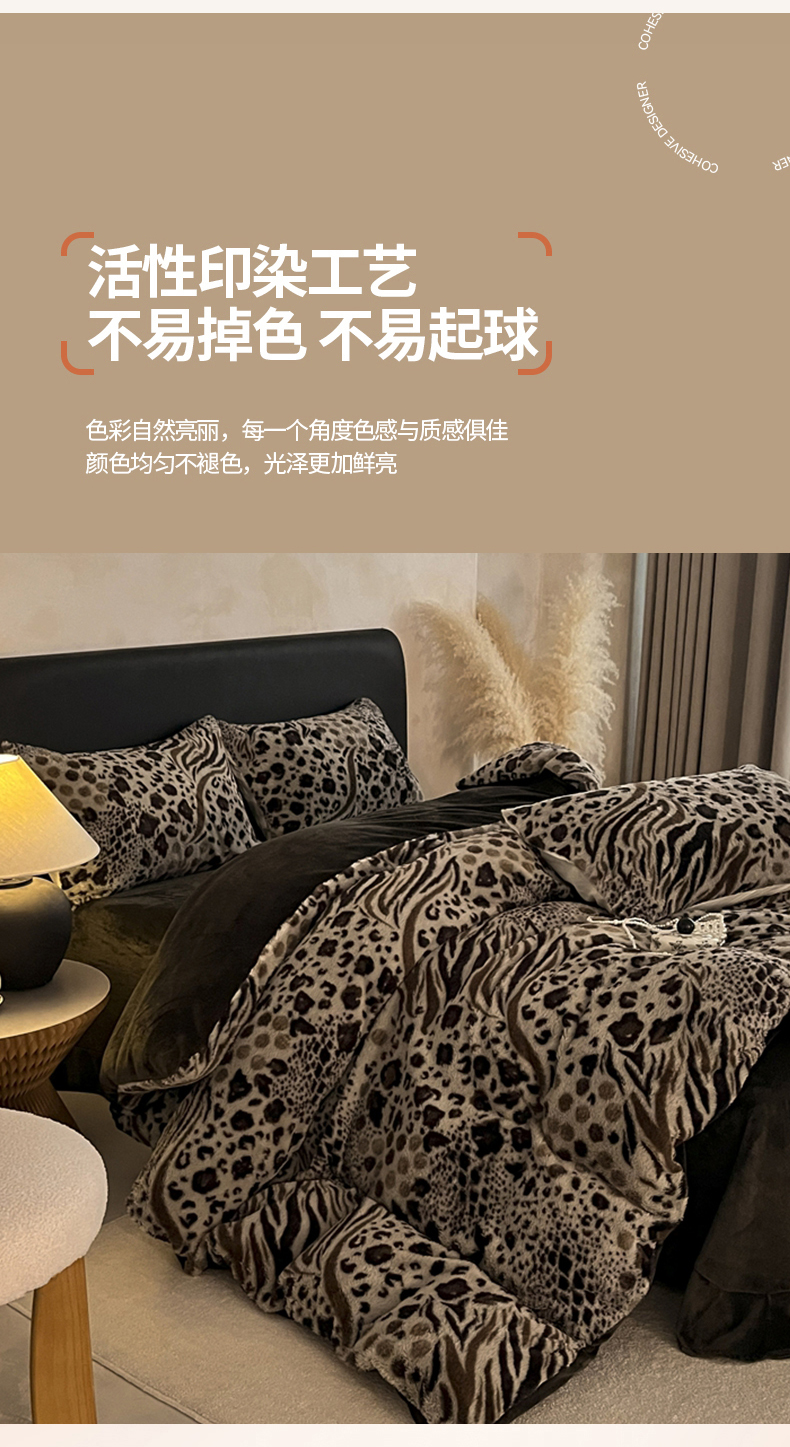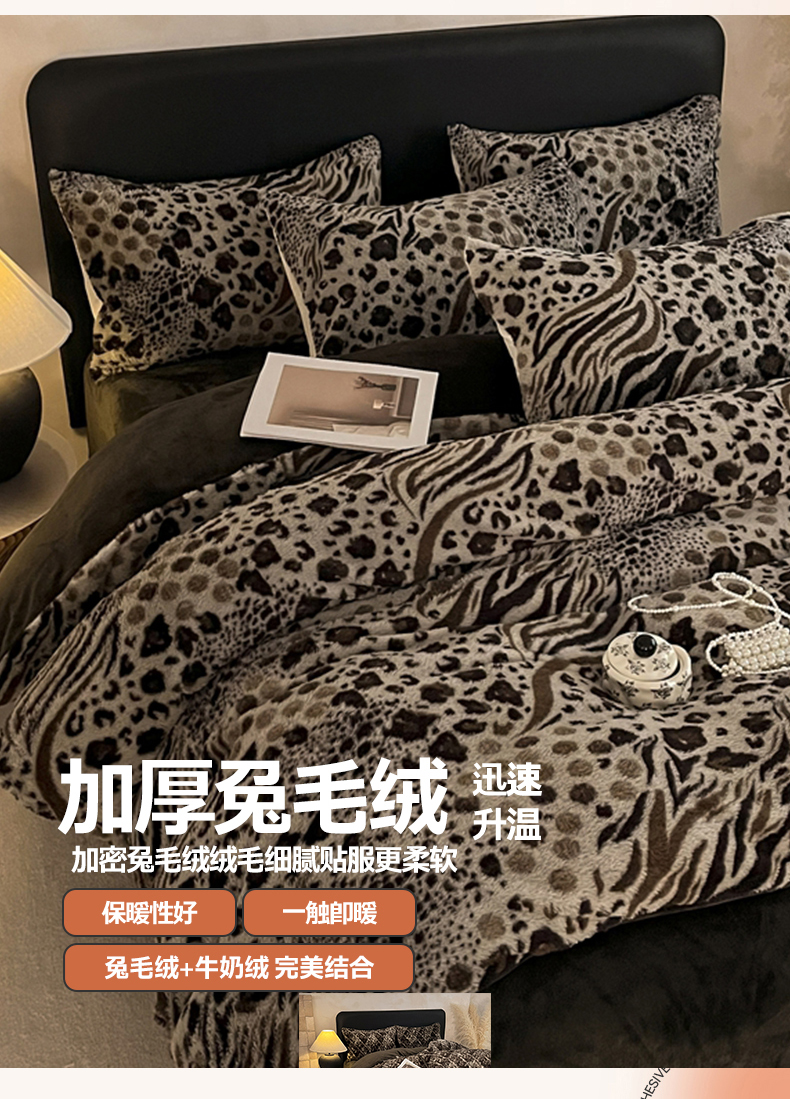 商品名称:铠畅家纺 2025新款美拉德风格兔毛绒床单四件套 美拉德-魅影豹纹
