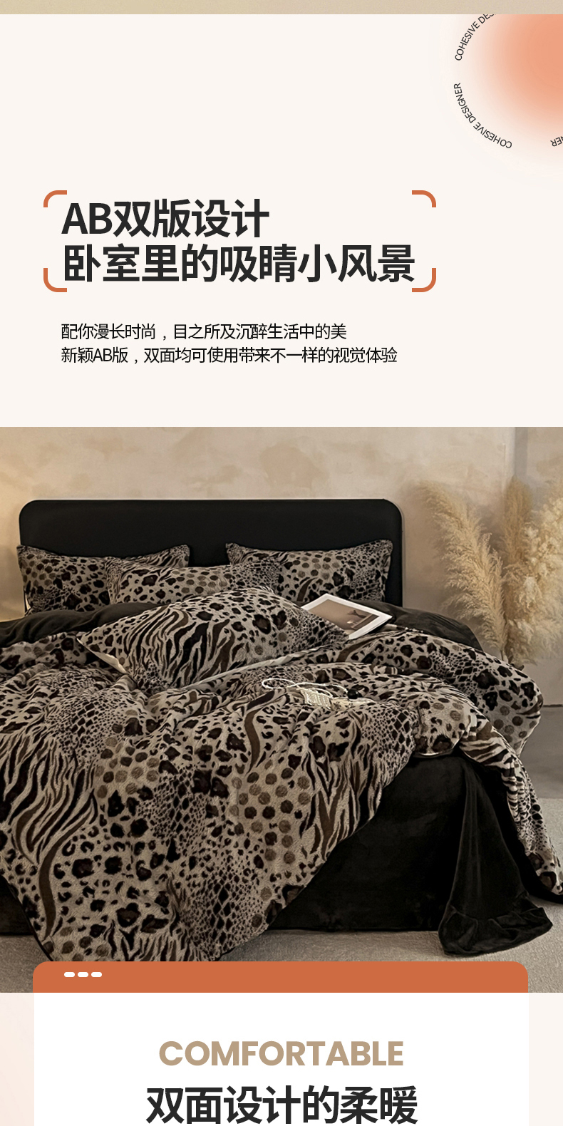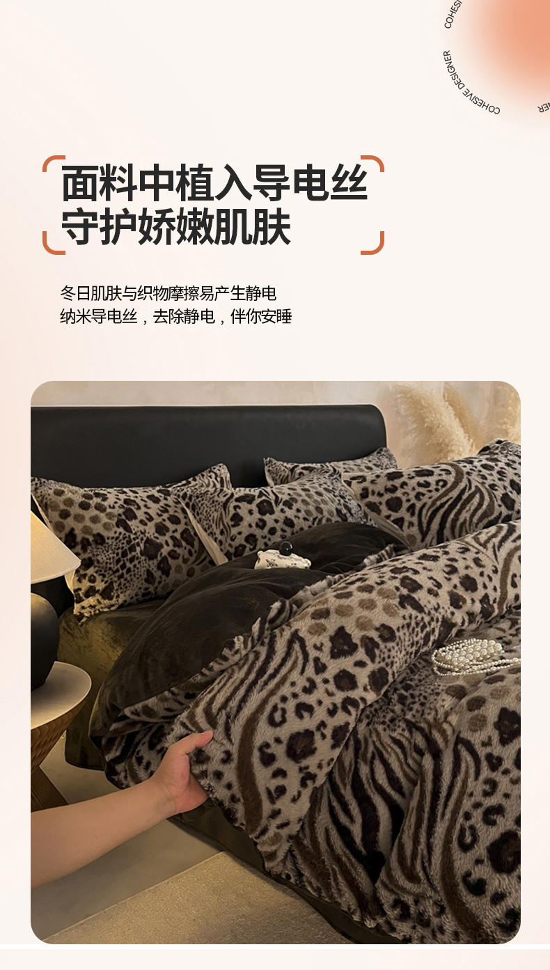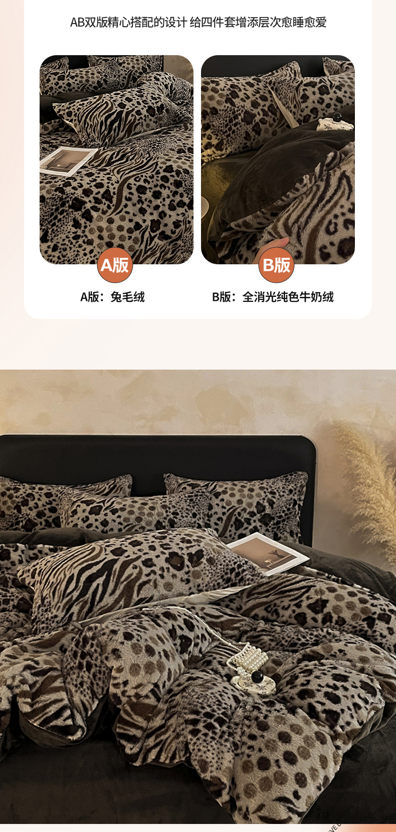 商品名称:铠畅家纺 2025新款美拉德风格兔毛绒床单四件套 美拉德-魅影豹纹