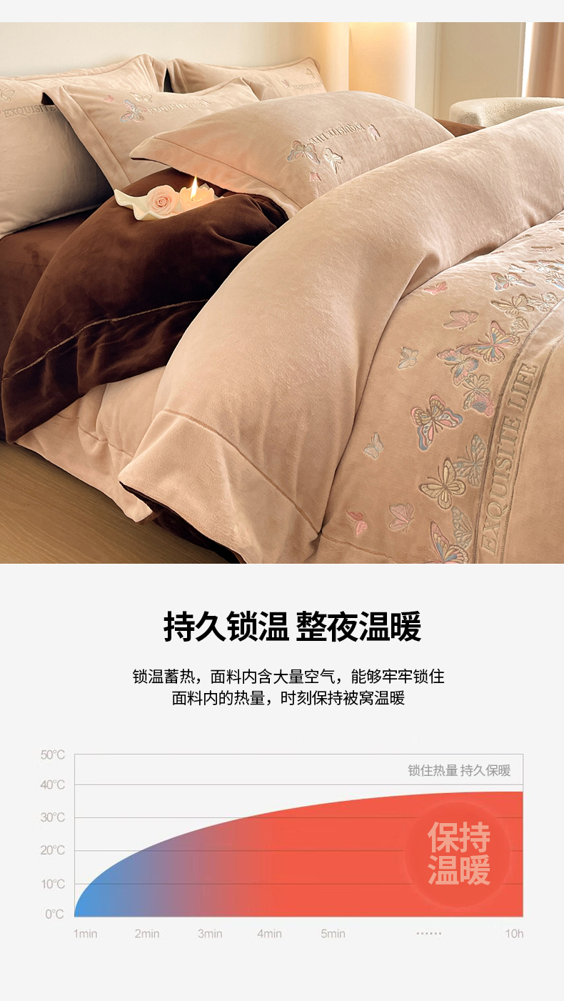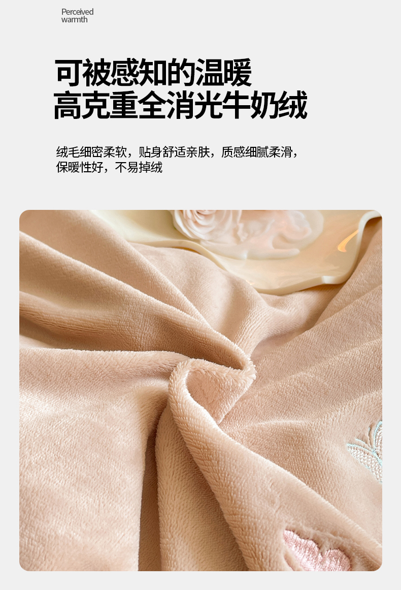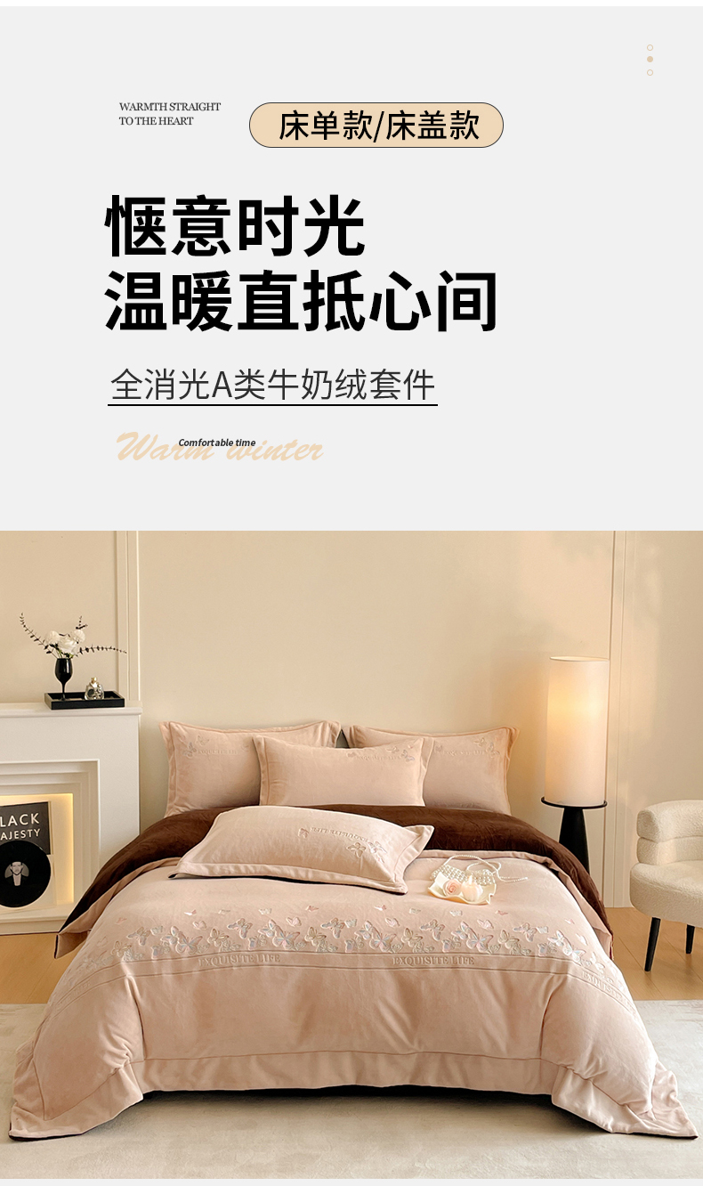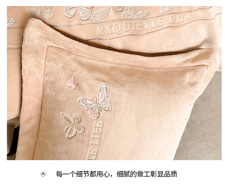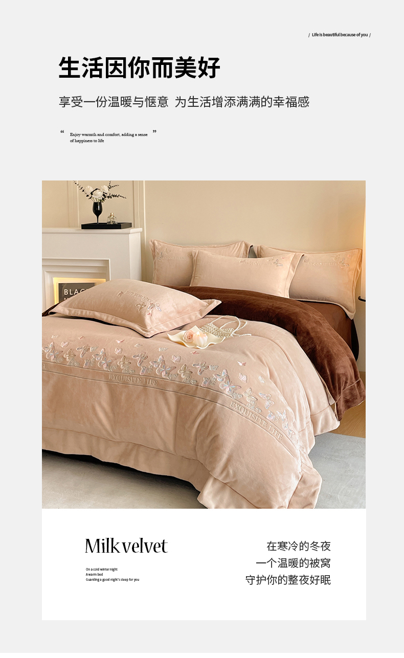当前位置: 91家纺网 > 商品网购 > 床品套件 > 四件套 > 牛奶绒四件套 > 新方向 2025新款高克重240克A类全消光刺绣牛奶绒四件套-蝶舞 蝶舞-香槟咖