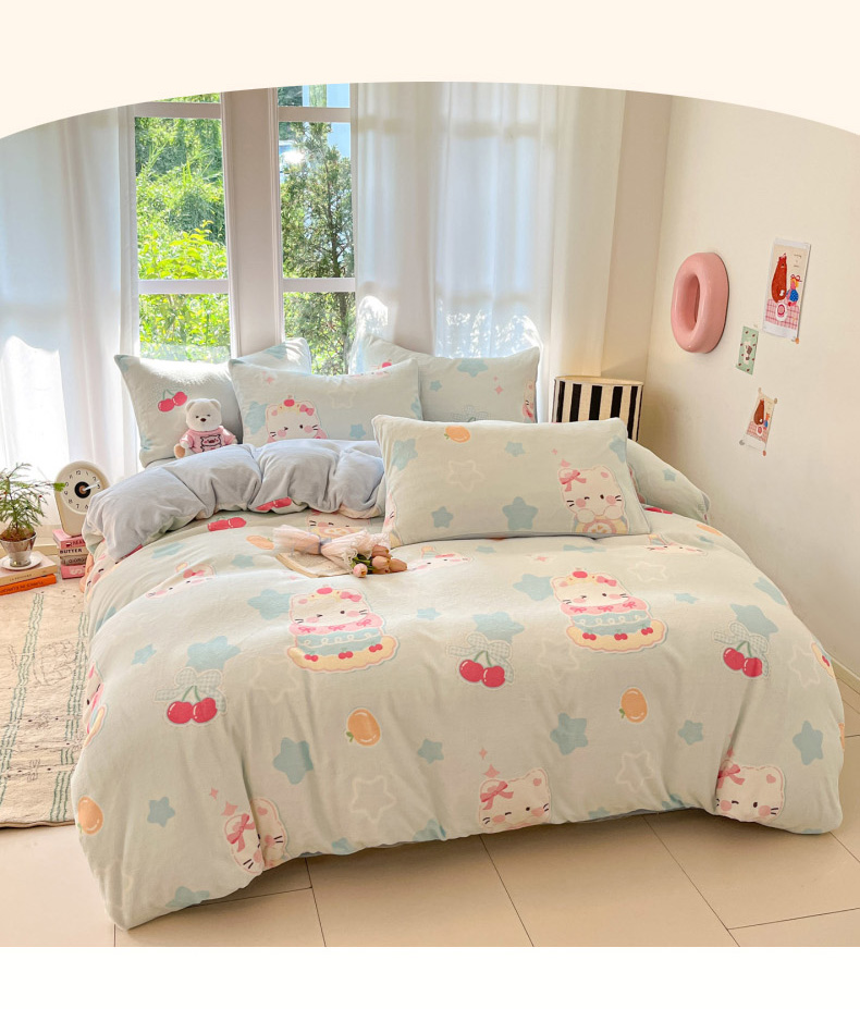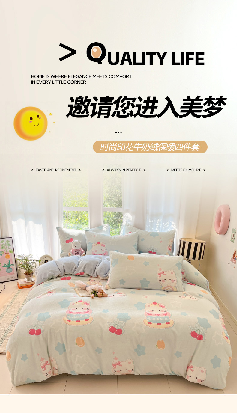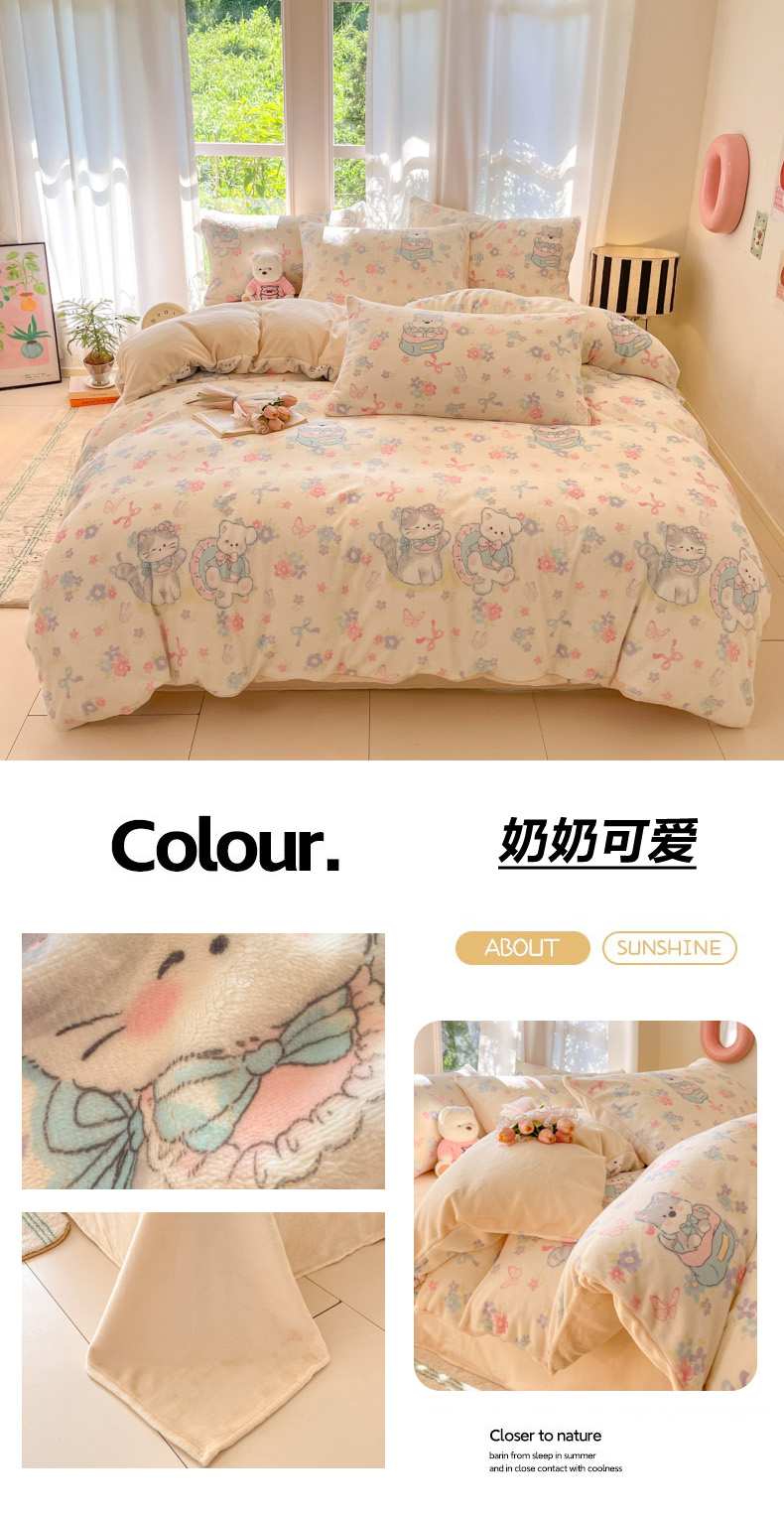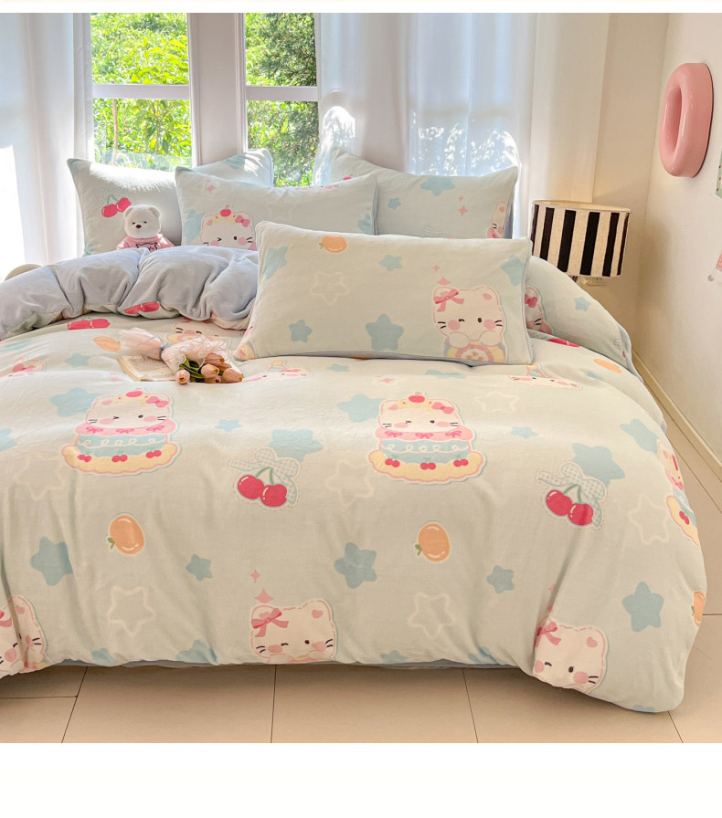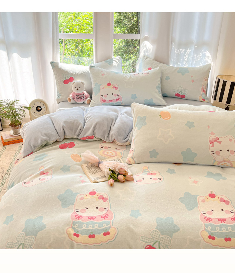 当前位置: 91家纺网 > 商品网购 > 床品套件 > 四件套 > 牛奶绒四件套 > 慕澄家纺 2025新款小清新牛奶绒印花四件套 蛋糕猫咪