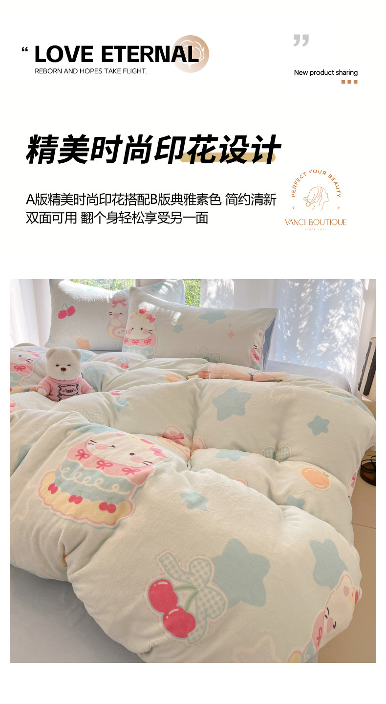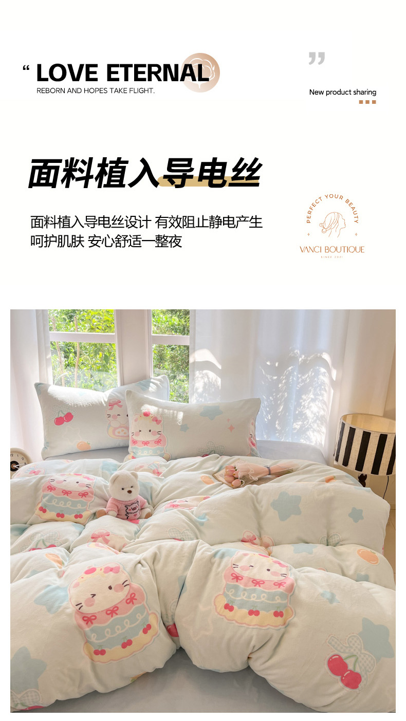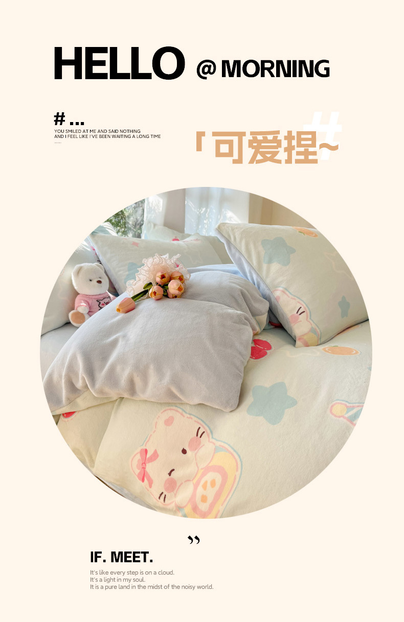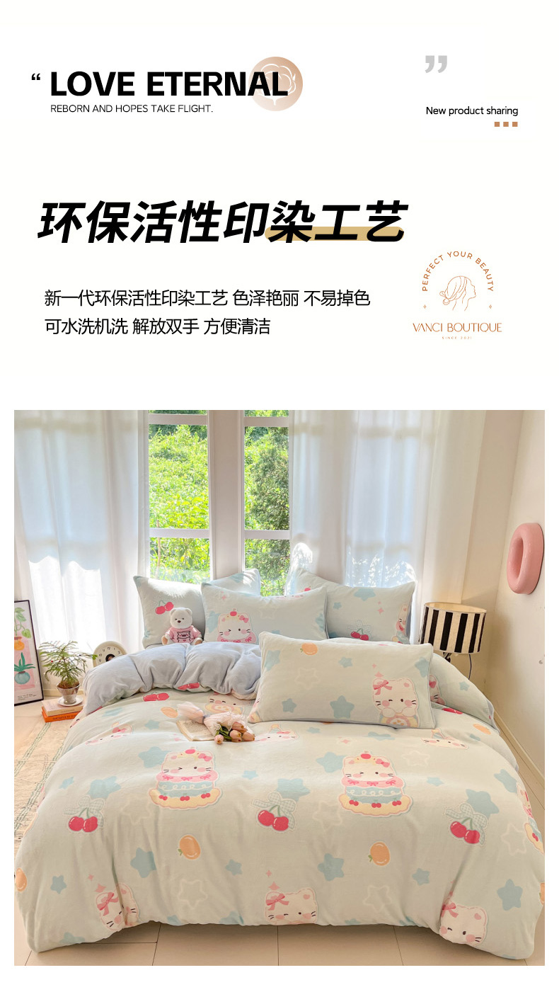 当前位置: 91家纺网 > 商品网购 > 床品套件 > 四件套 > 牛奶绒四件套 > 慕澄家纺 2025新款小清新牛奶绒印花四件套 蛋糕猫咪