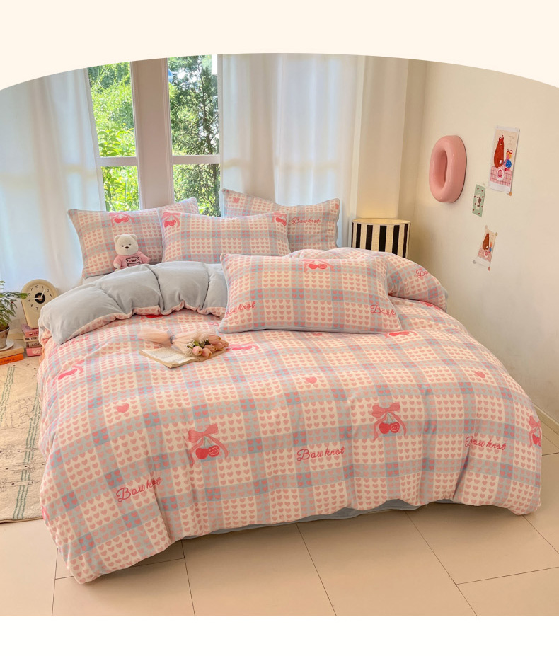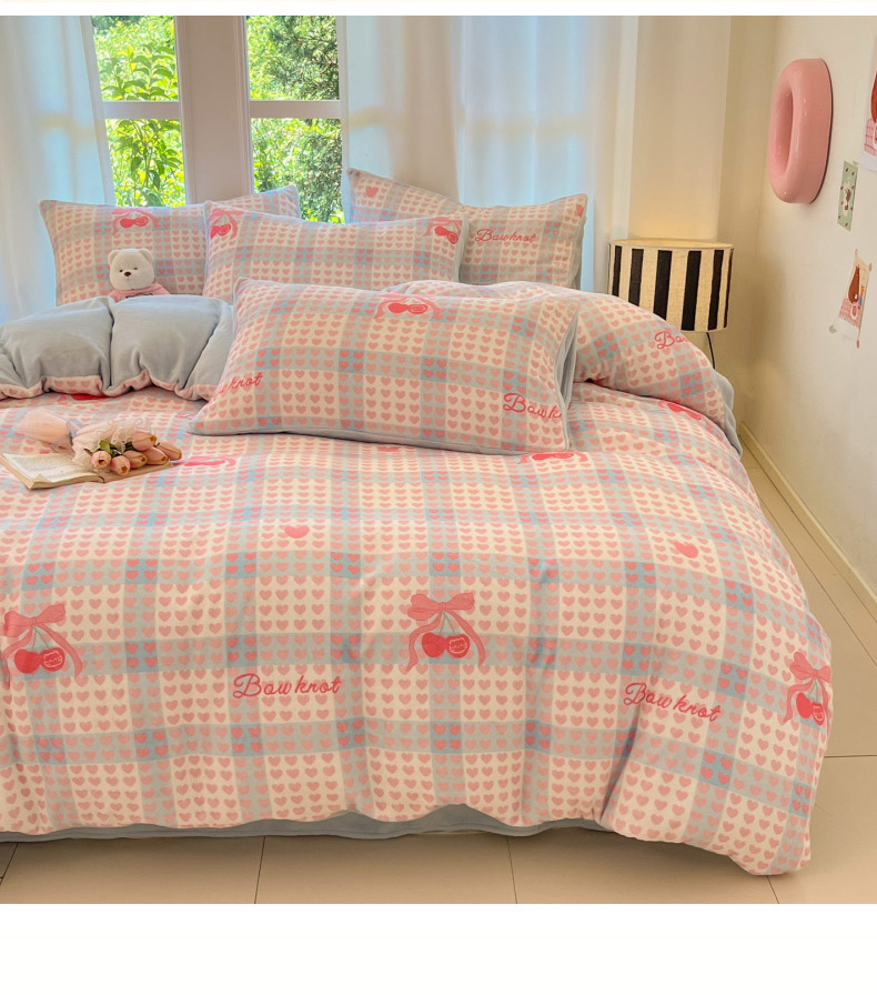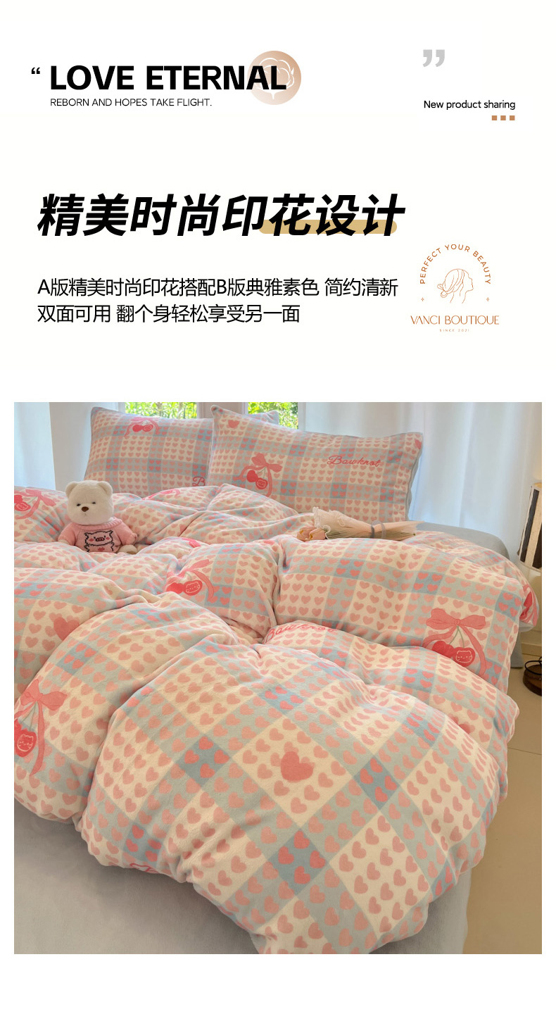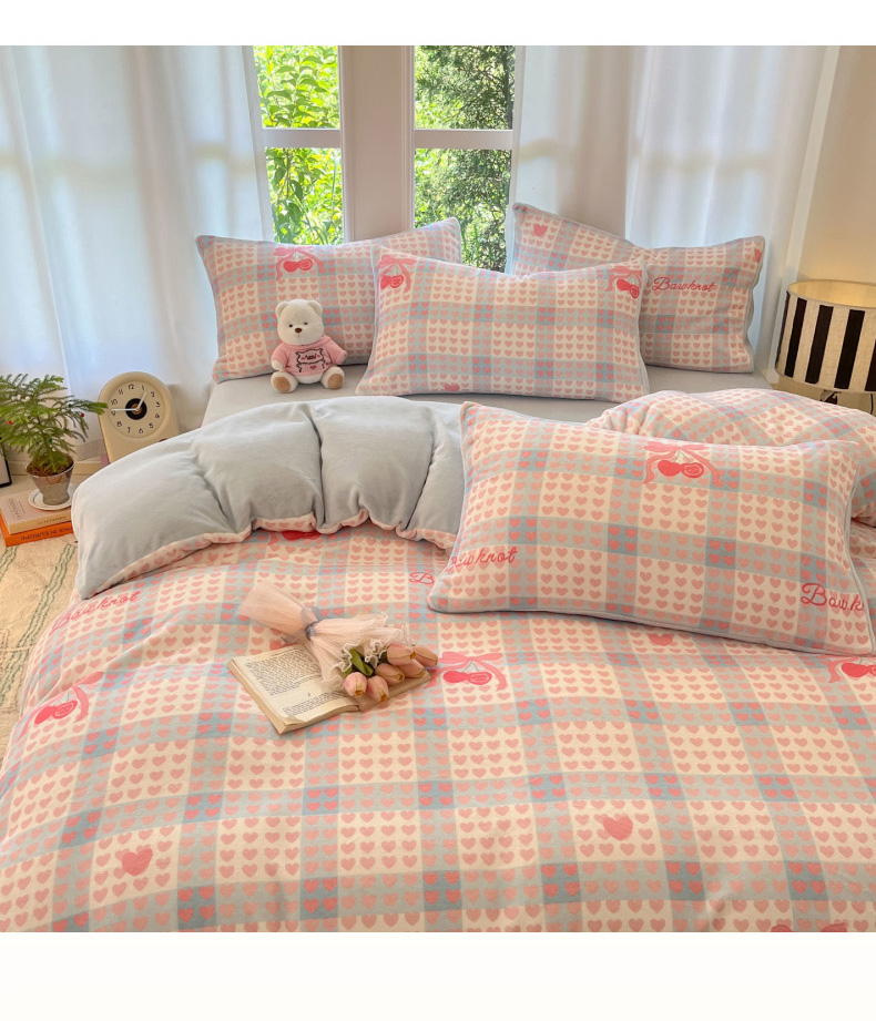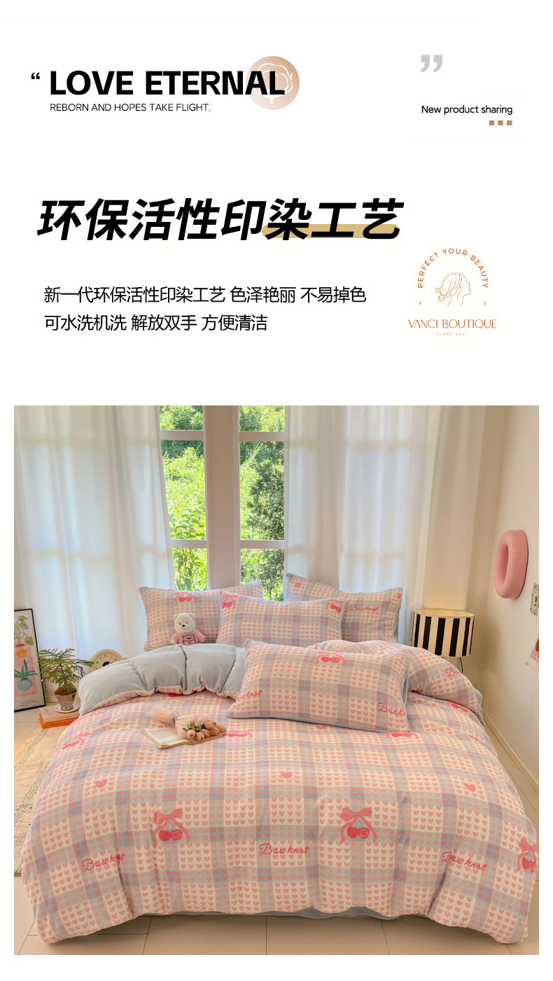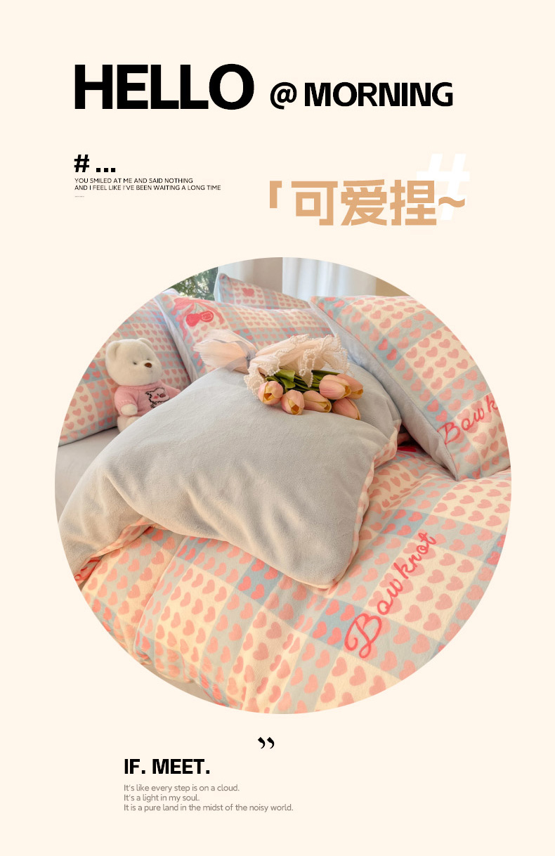 当前位置: 91家纺网 > 商品网购 > 床品套件 > 四件套 > 牛奶绒四件套 > 慕澄家纺 2025新款小清新牛奶绒印花四件套 心心相印