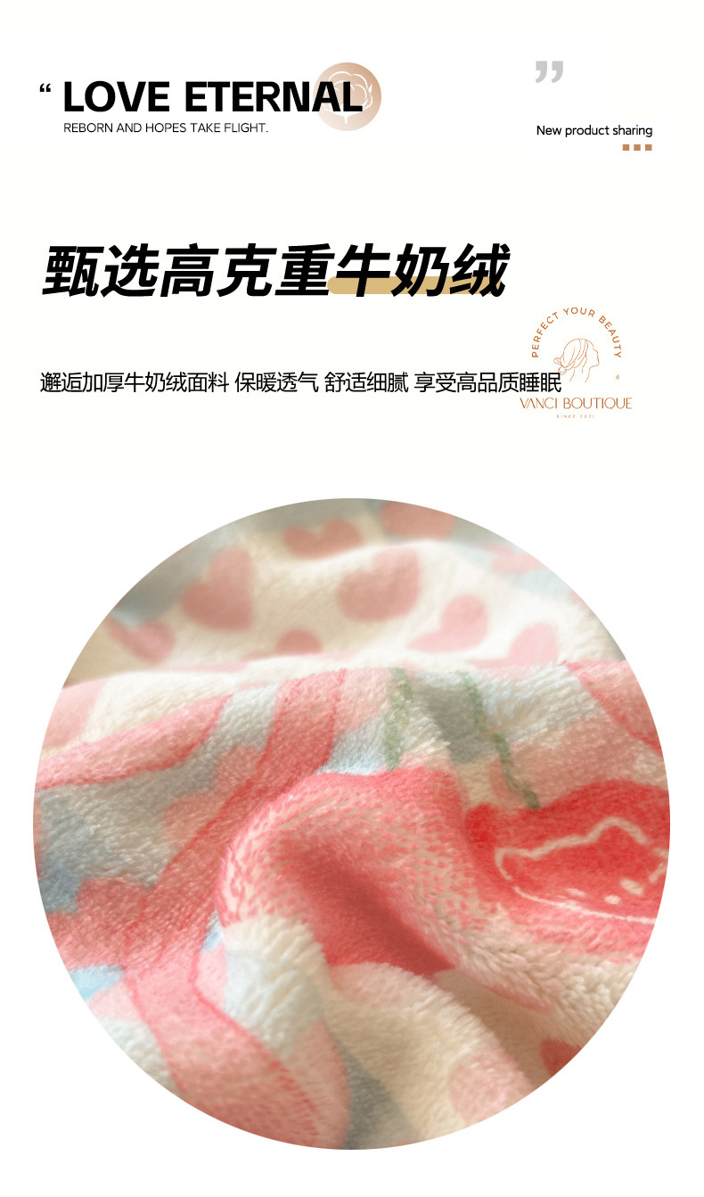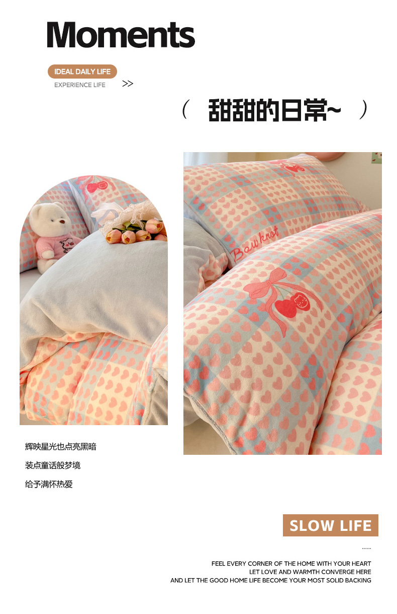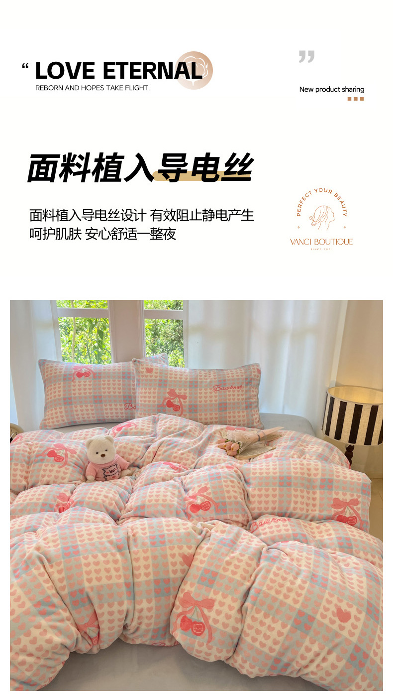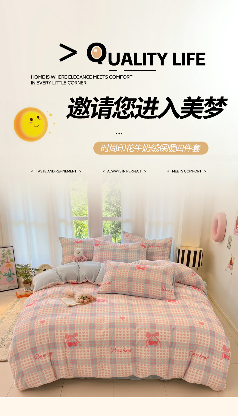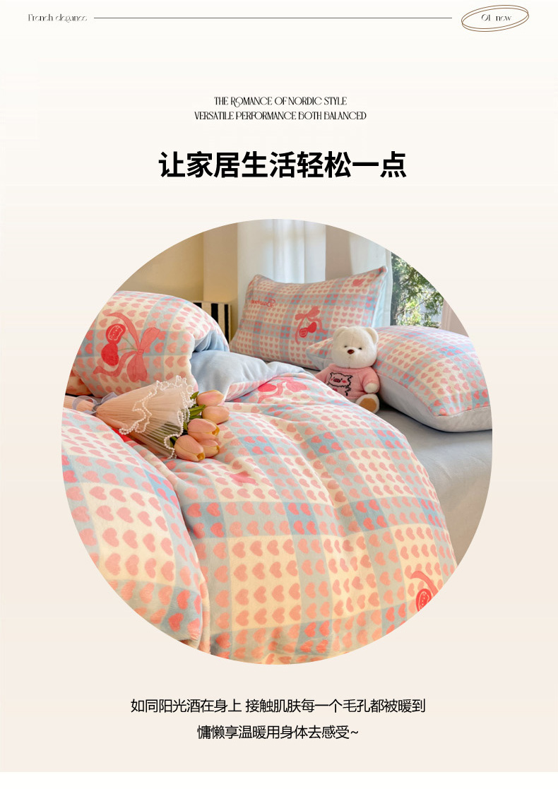 当前位置: 91家纺网 > 商品网购 > 床品套件 > 四件套 > 牛奶绒四件套 > 慕澄家纺 2025新款小清新牛奶绒印花四件套 心心相印