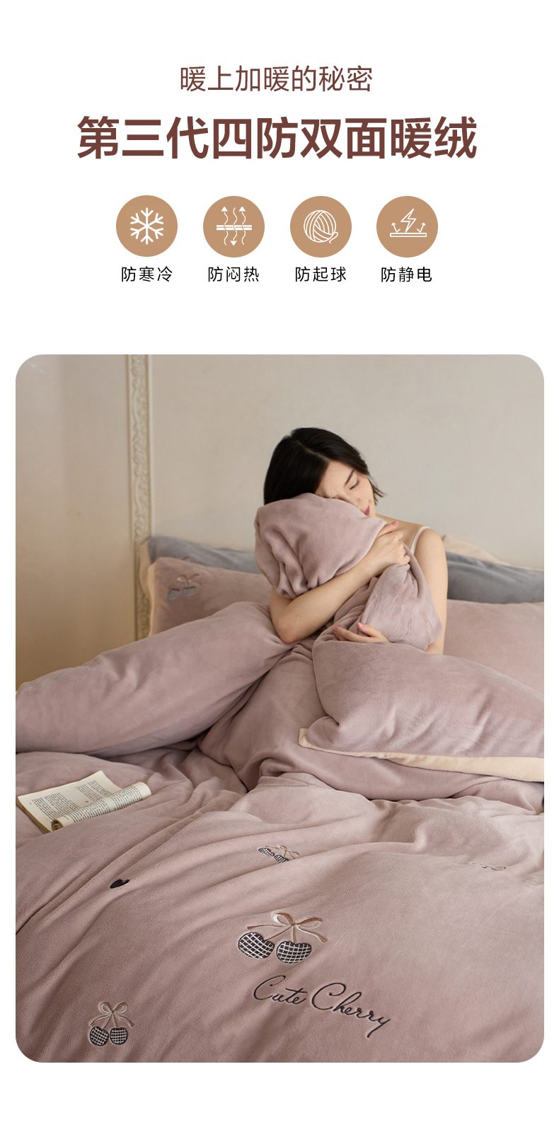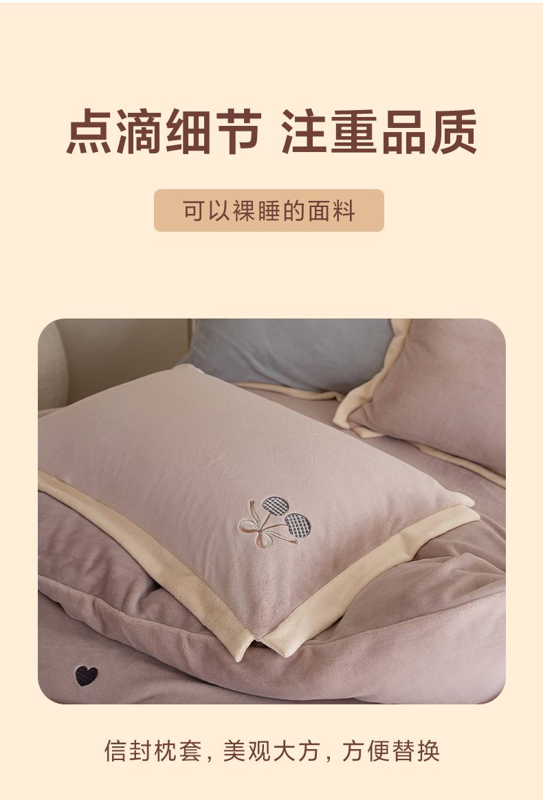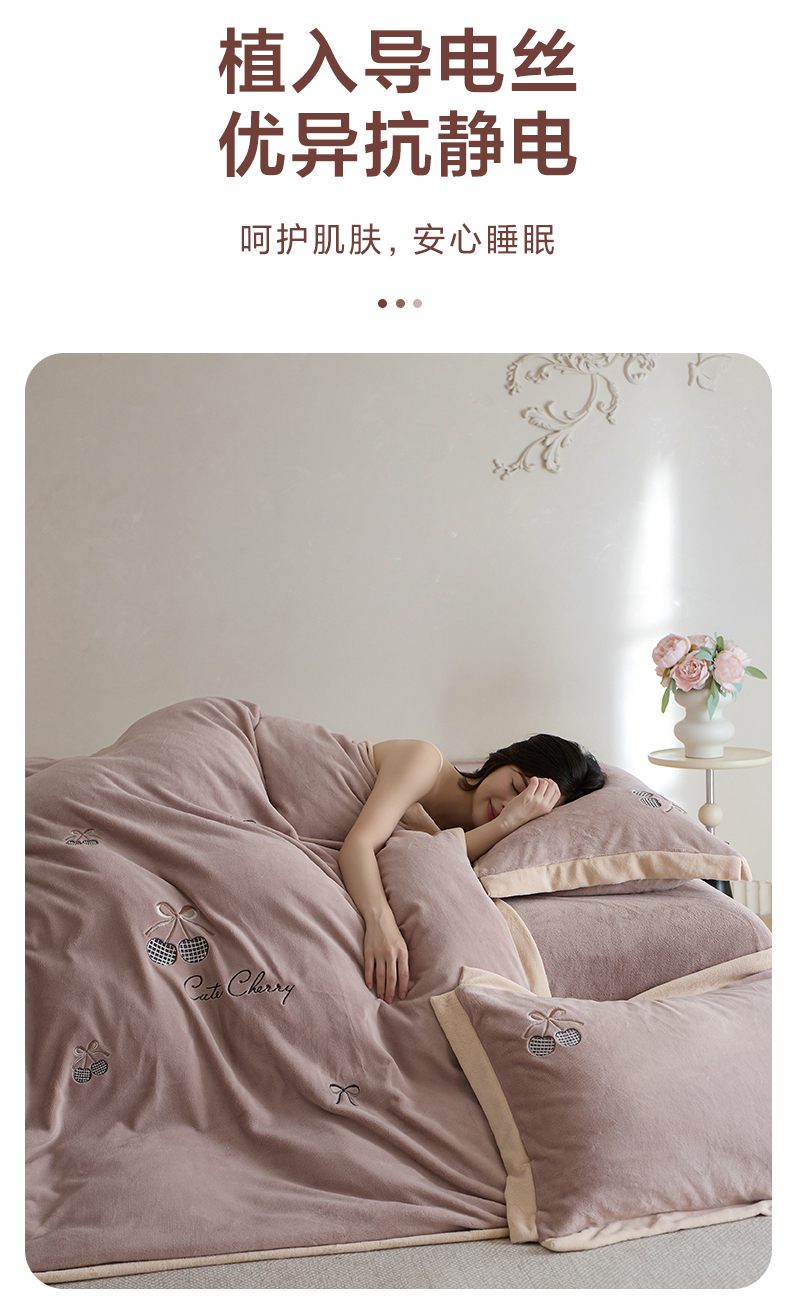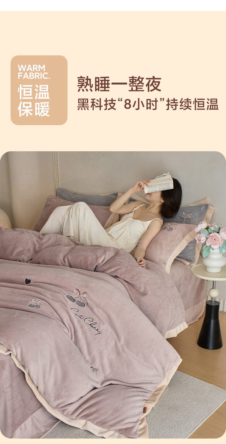商品名称:卡初家居(原微来) 2025新款秋冬全消光A类母婴标准亲肤牛奶绒绣花四件套 暖居-粉豆沙