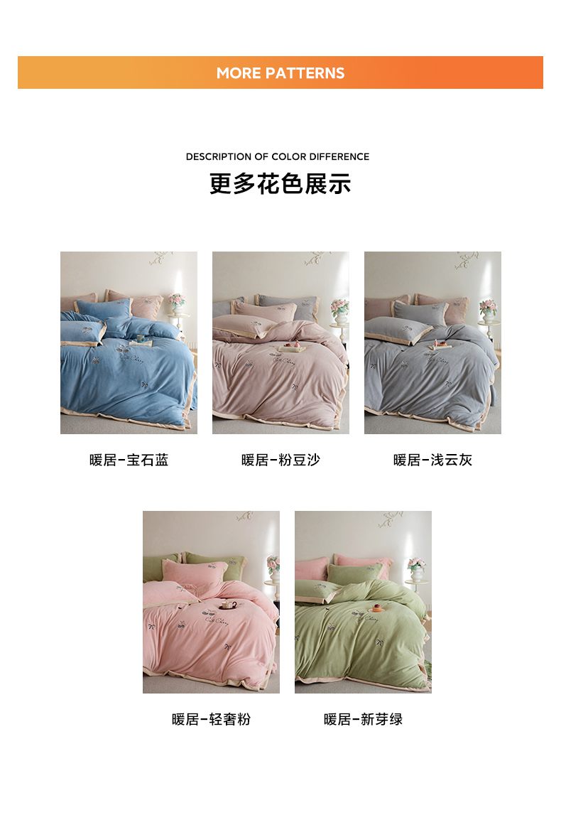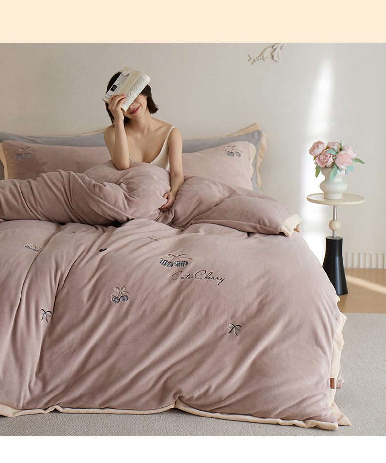(总)卡初家居(原微来) 2025新款秋冬亲肤牛奶绒绣花四件套-多喜系列,多喜-豆沙,多喜-果绿,多喜-米黄,多喜-浅紫,多喜-桃粉,多喜-天蓝