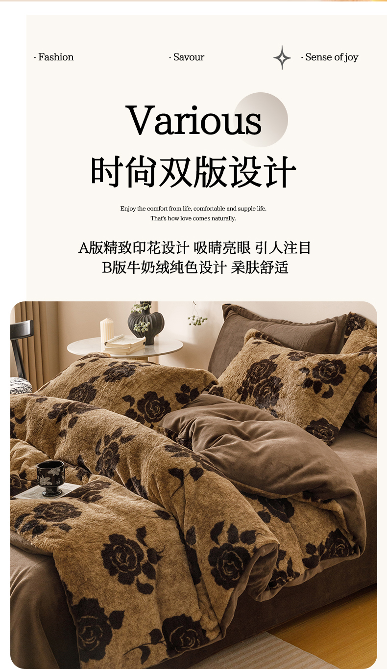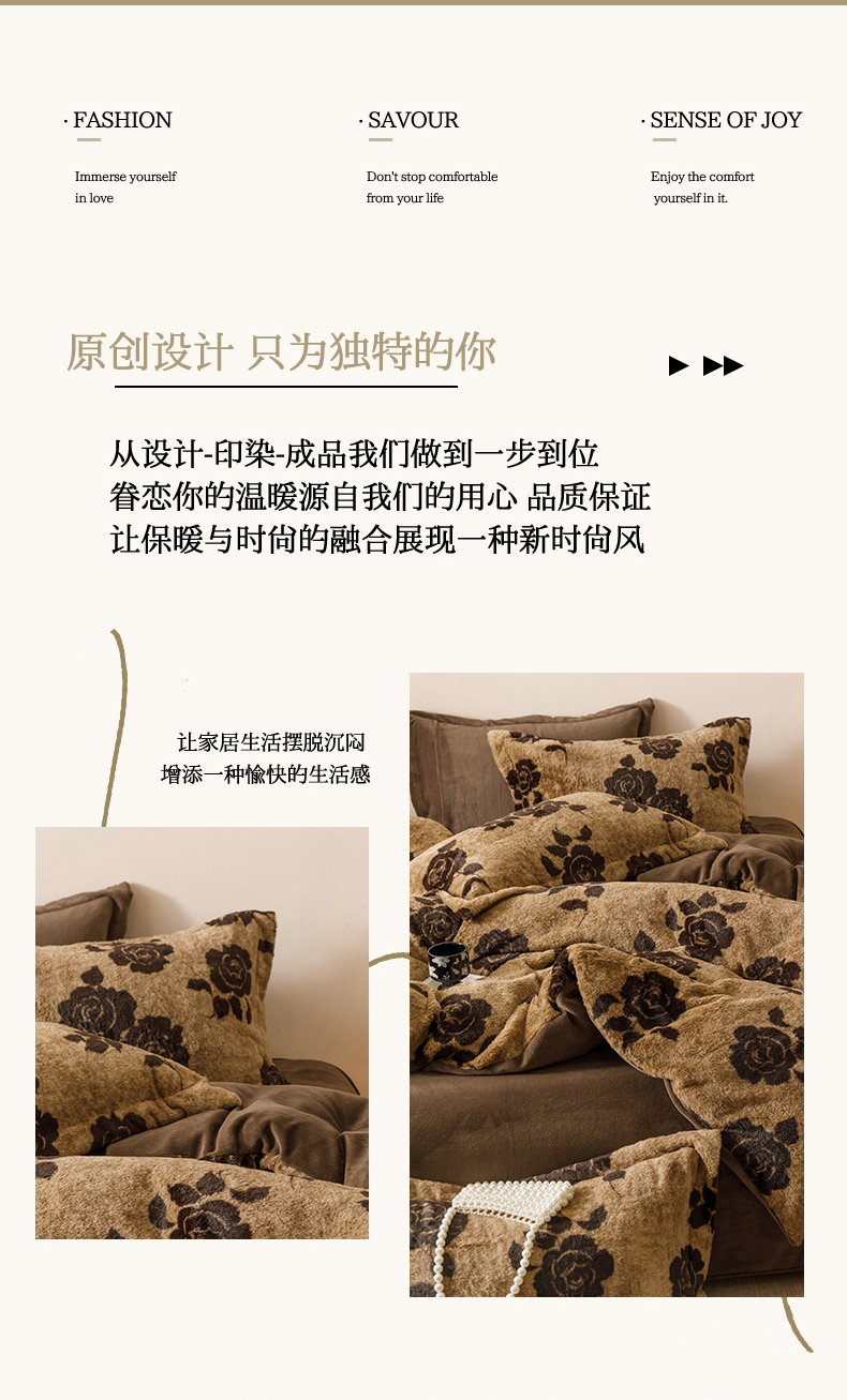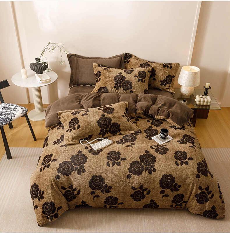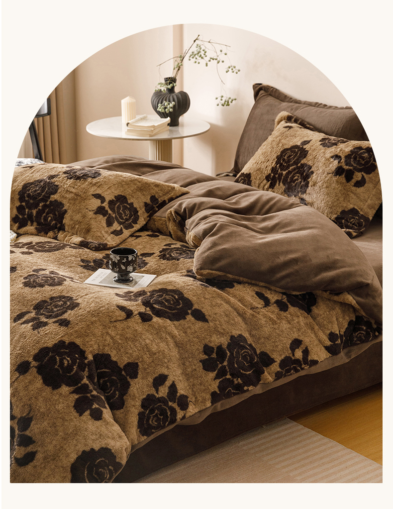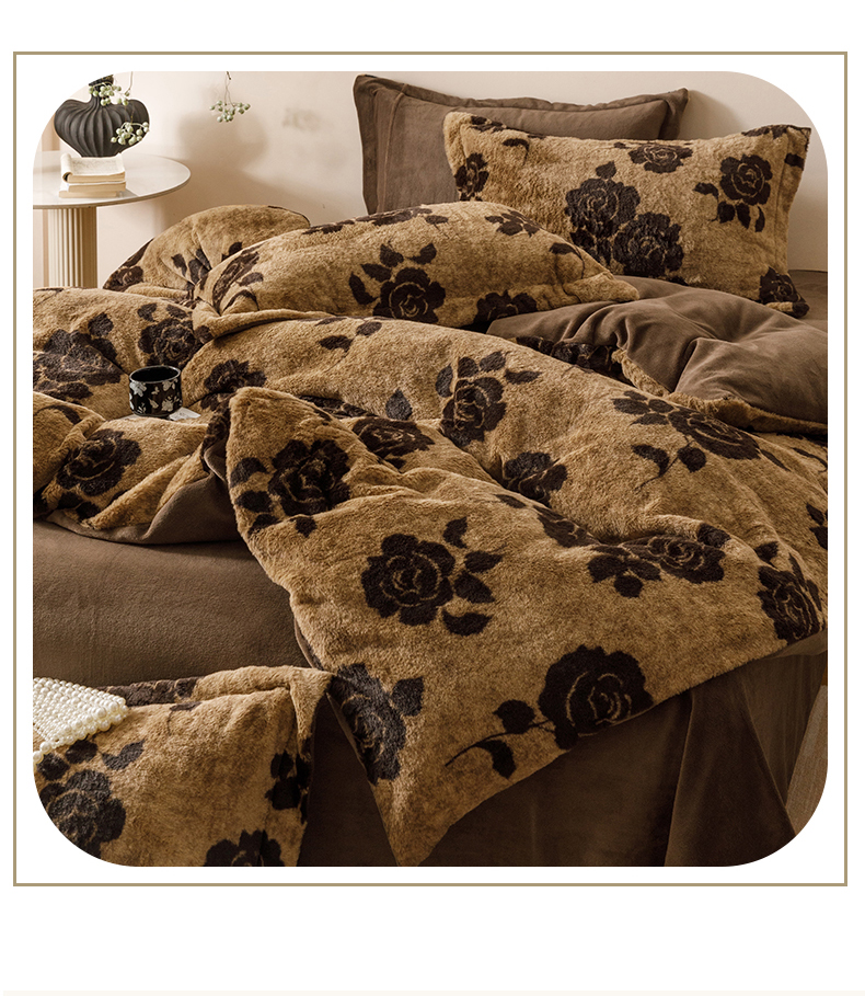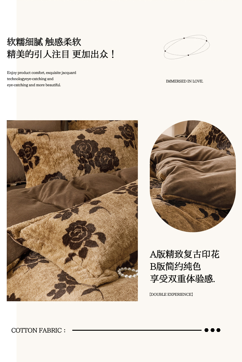 商品名称:艾莱家纺 2025新款A类美拉德系兔绒超柔保暖四件套 盛放-咖