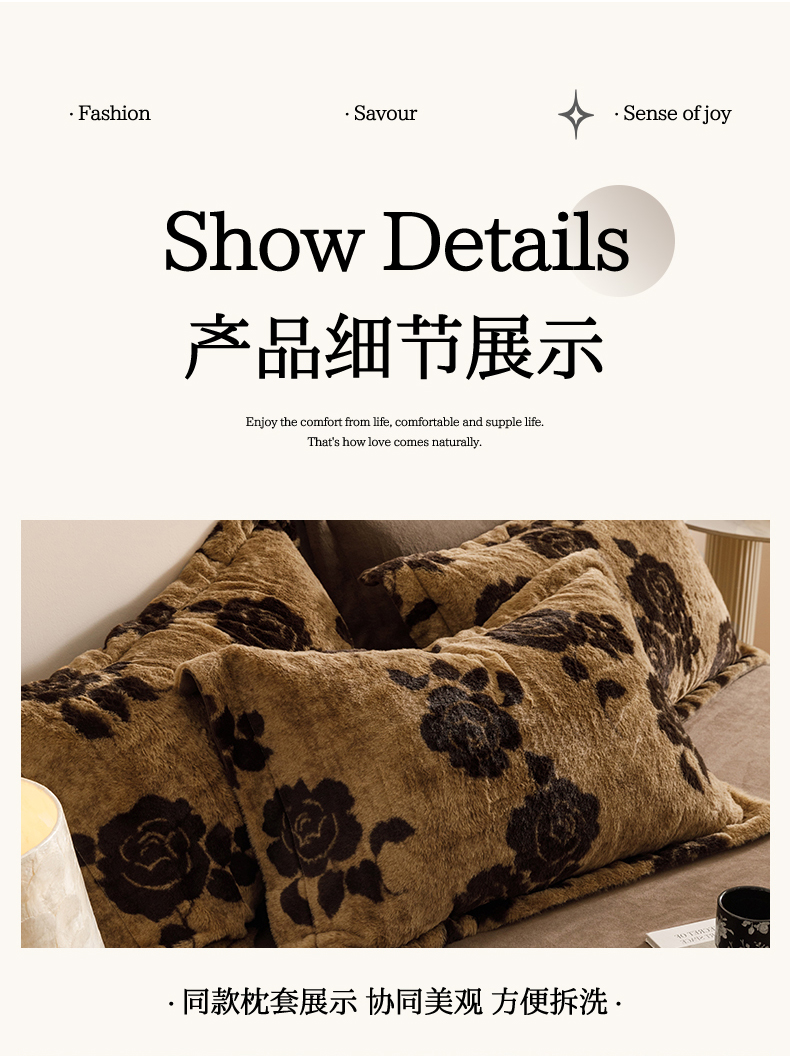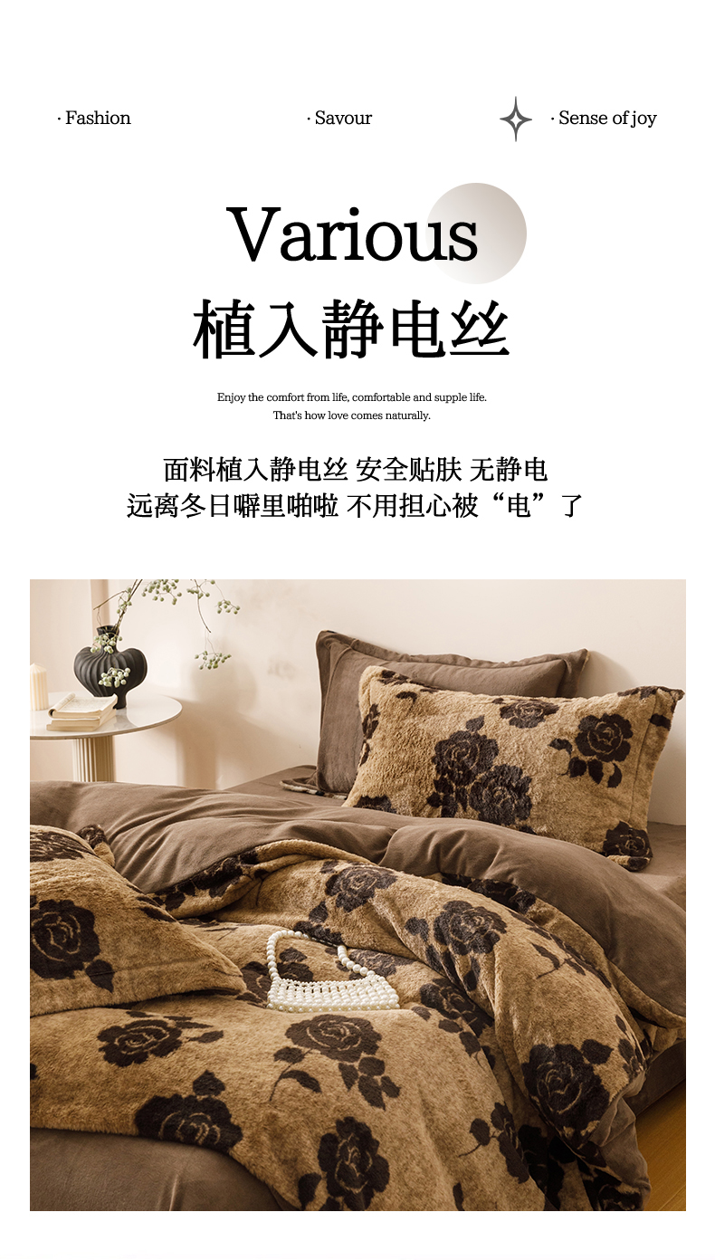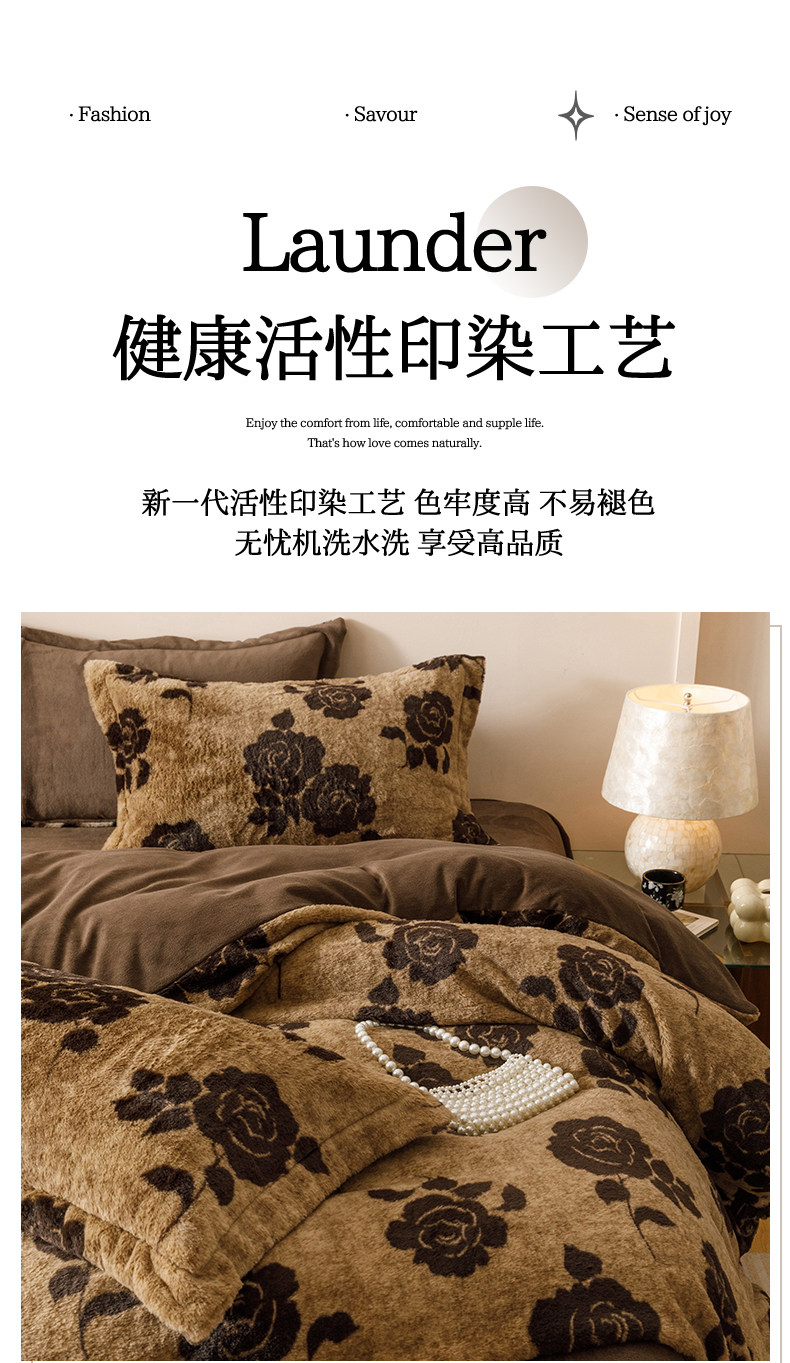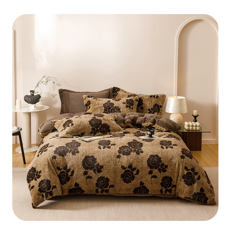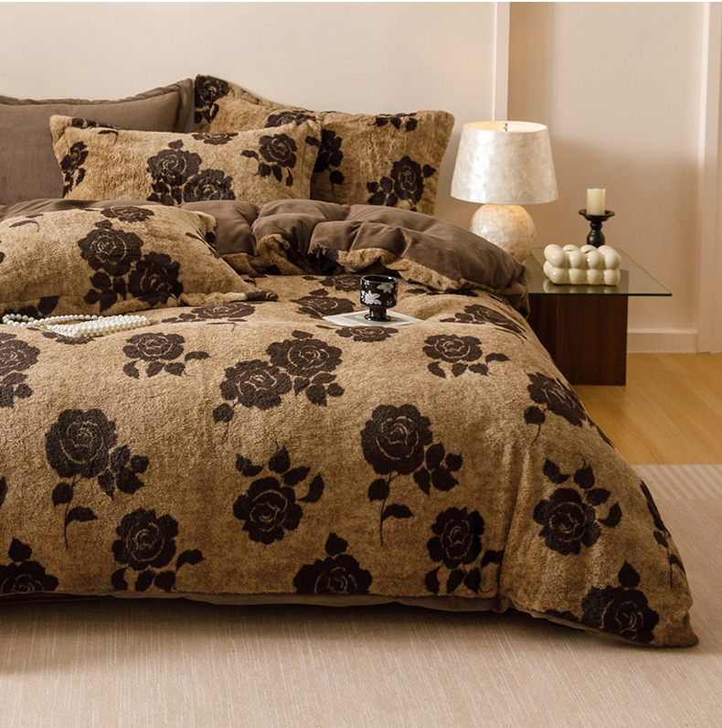 商品名称:艾莱家纺 2025新款A类美拉德系兔绒超柔保暖四件套 盛放-咖