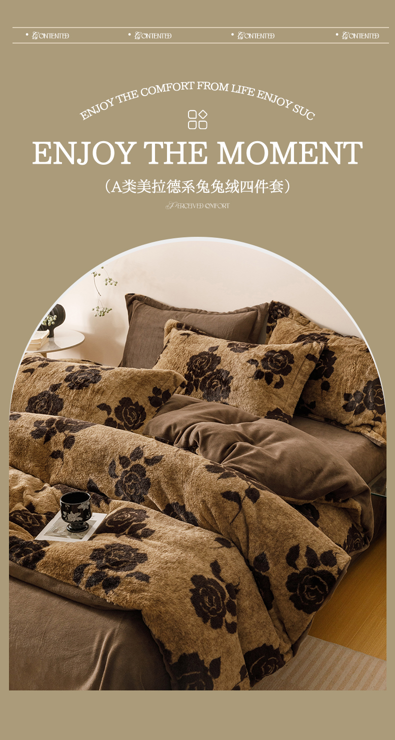 艾莱家纺 2025新款A类美拉德系兔绒超柔保暖四件套 盛放-咖