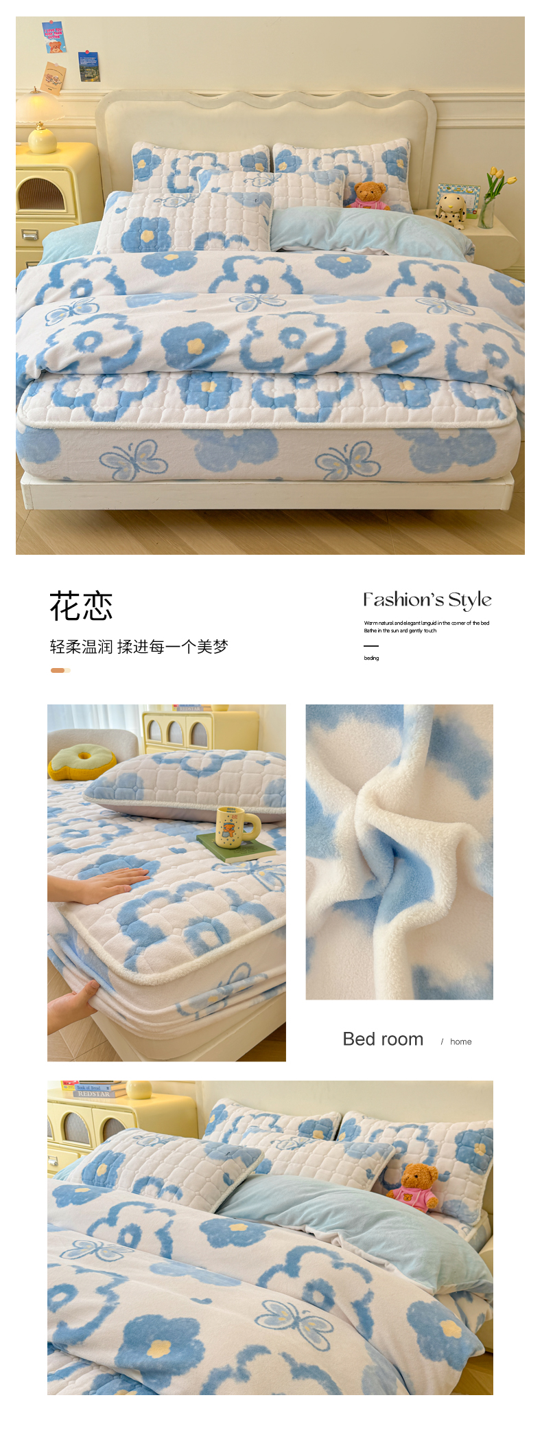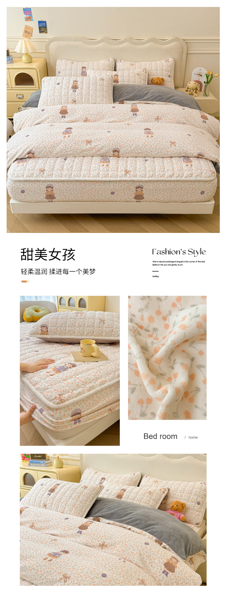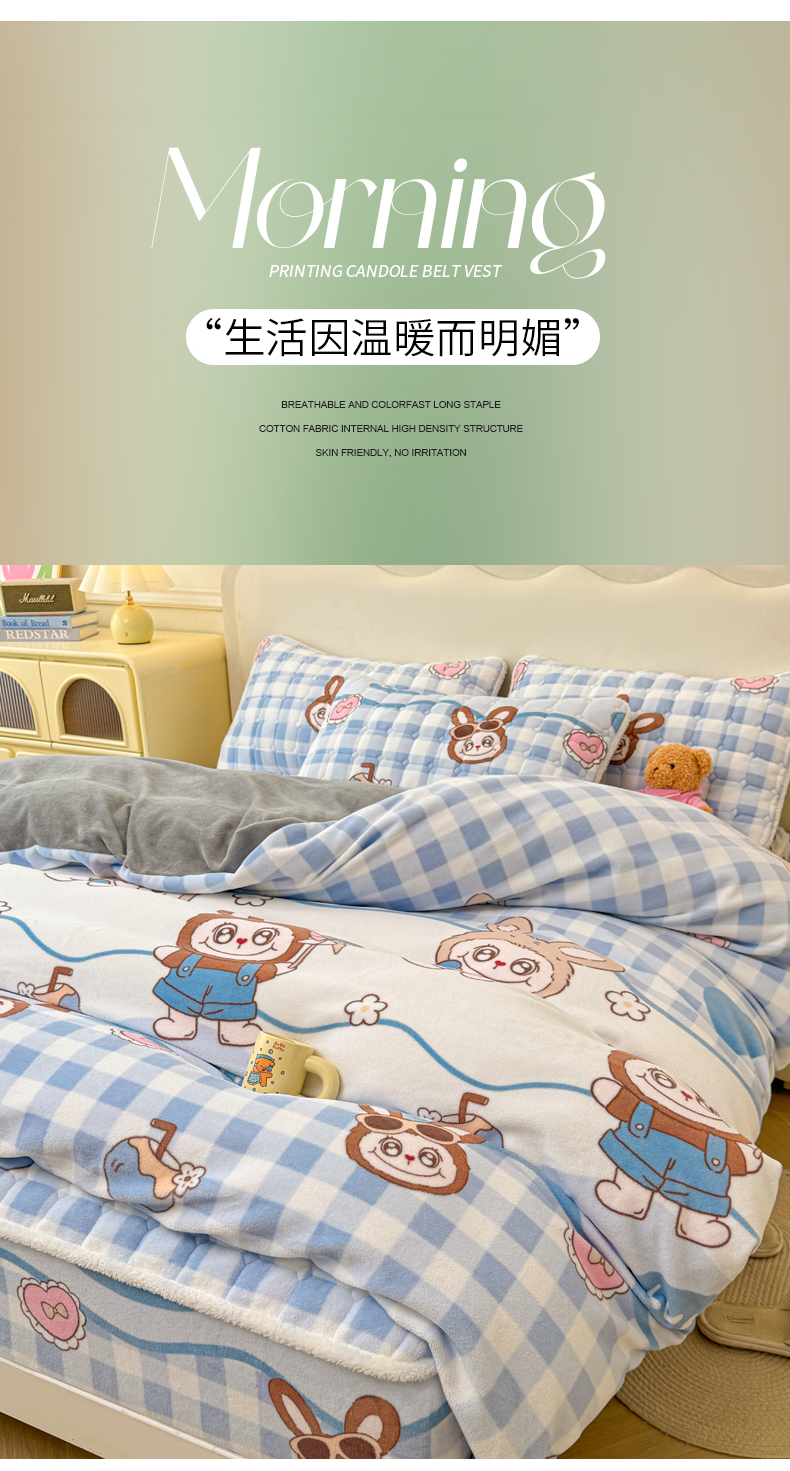 商品名称:LIFE.丽芙 2025秋冬新款A类牛奶绒加厚夹棉床笠+被套组合四件套 布布乐园