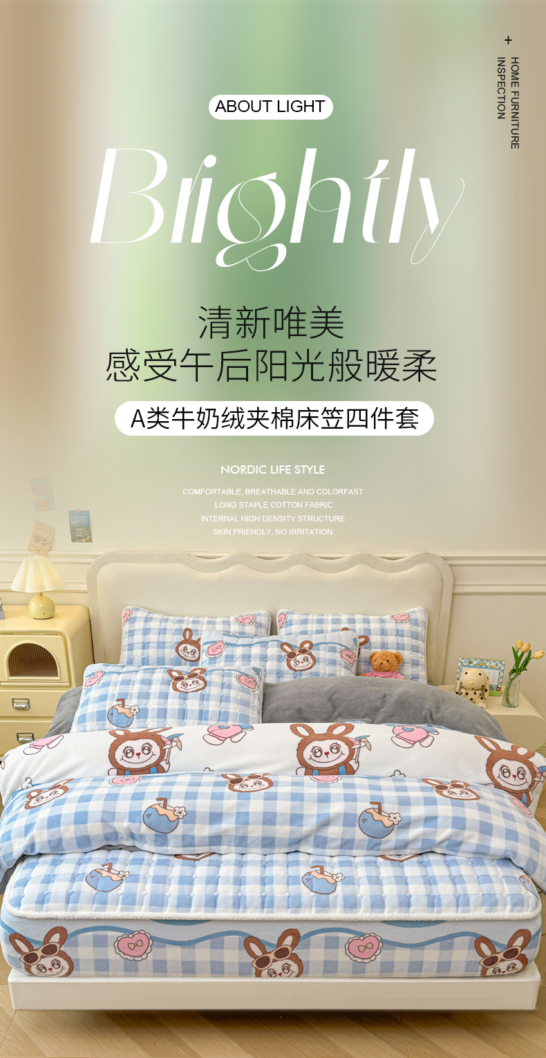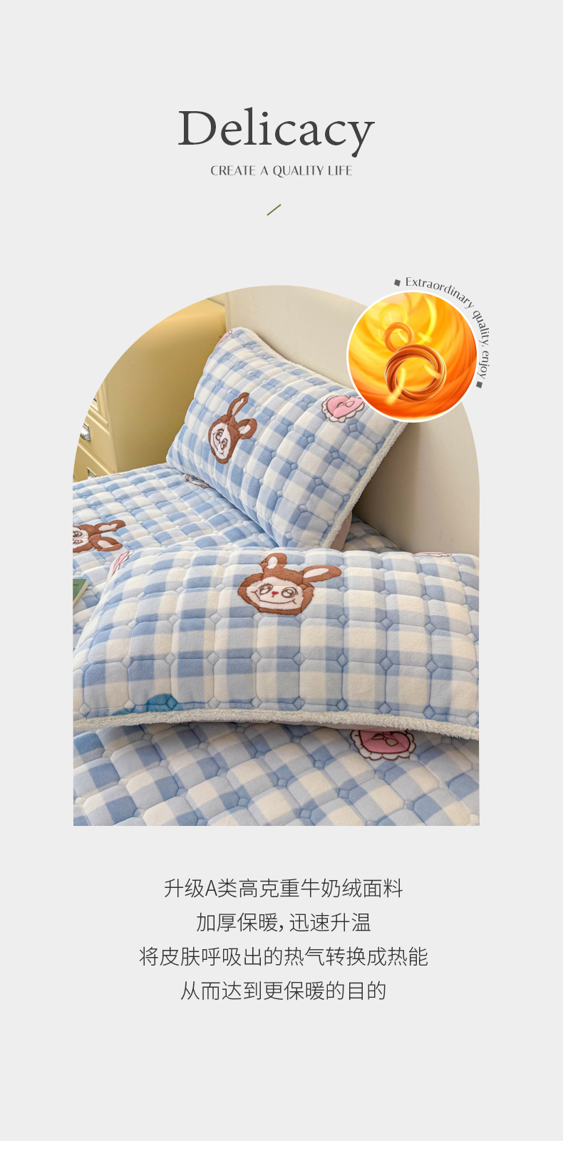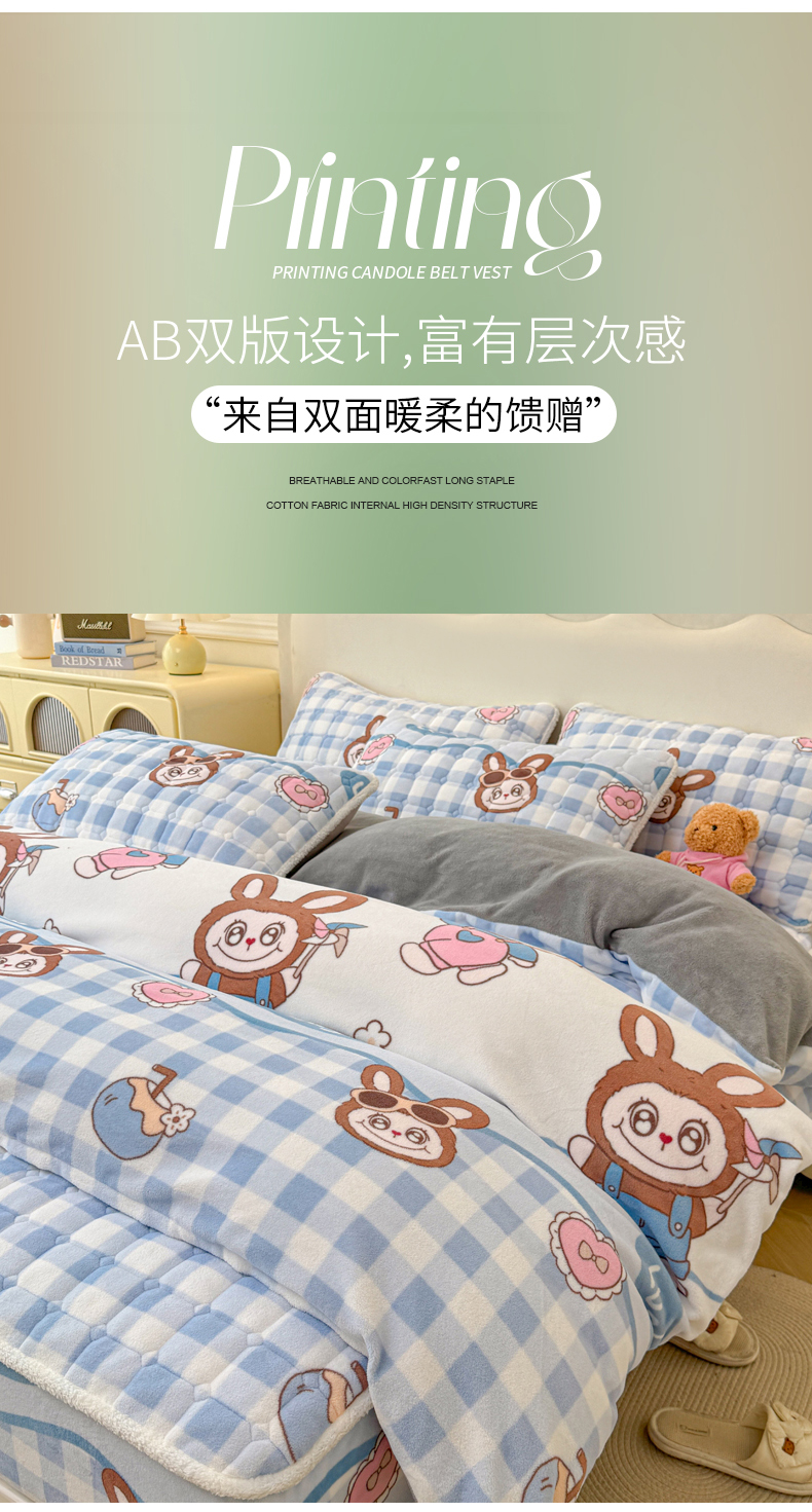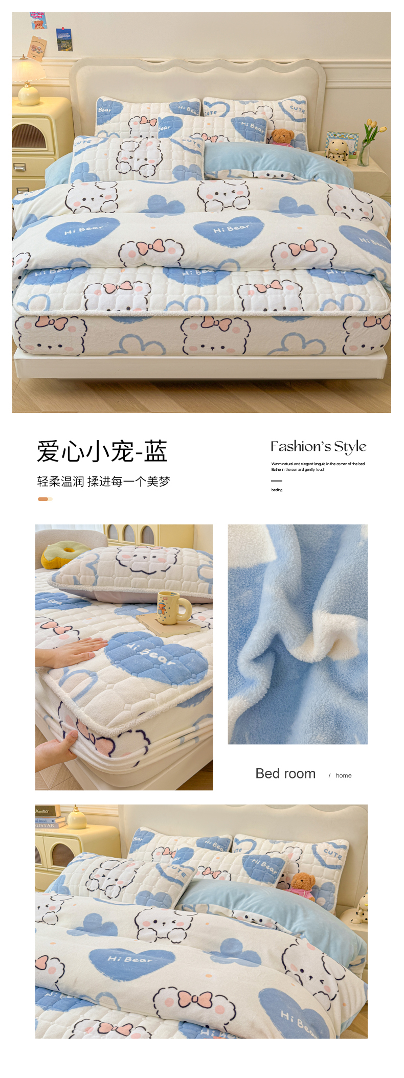 商品名称:LIFE.丽芙 2025秋冬新款A类牛奶绒加厚夹棉床笠+被套组合四件套 布布乐园