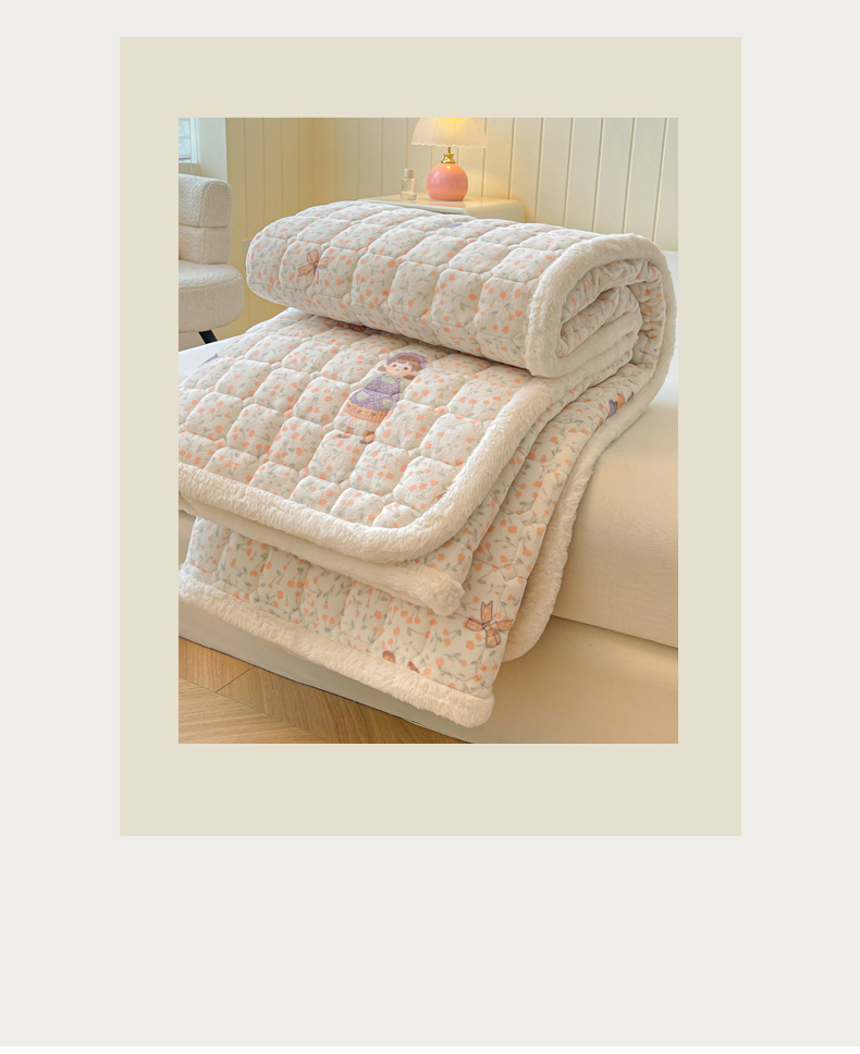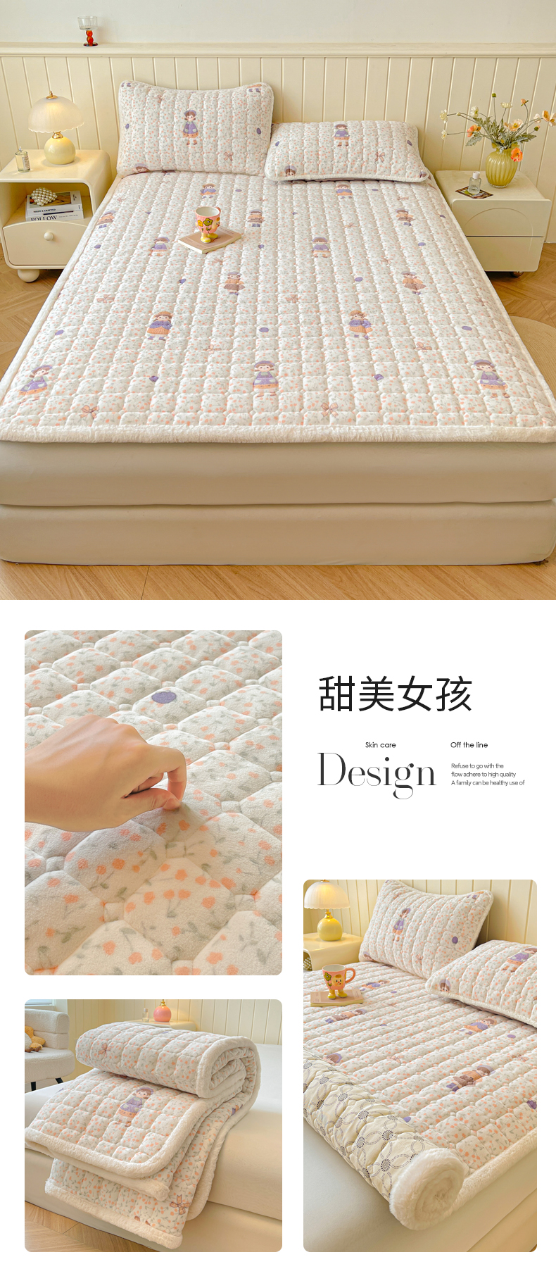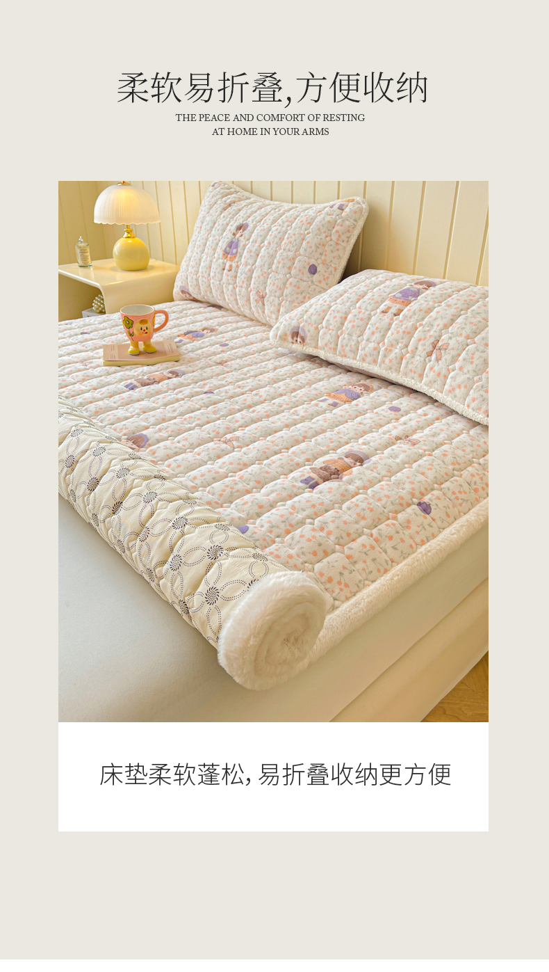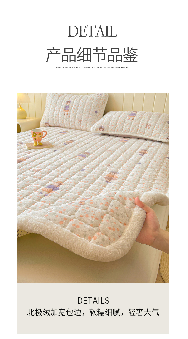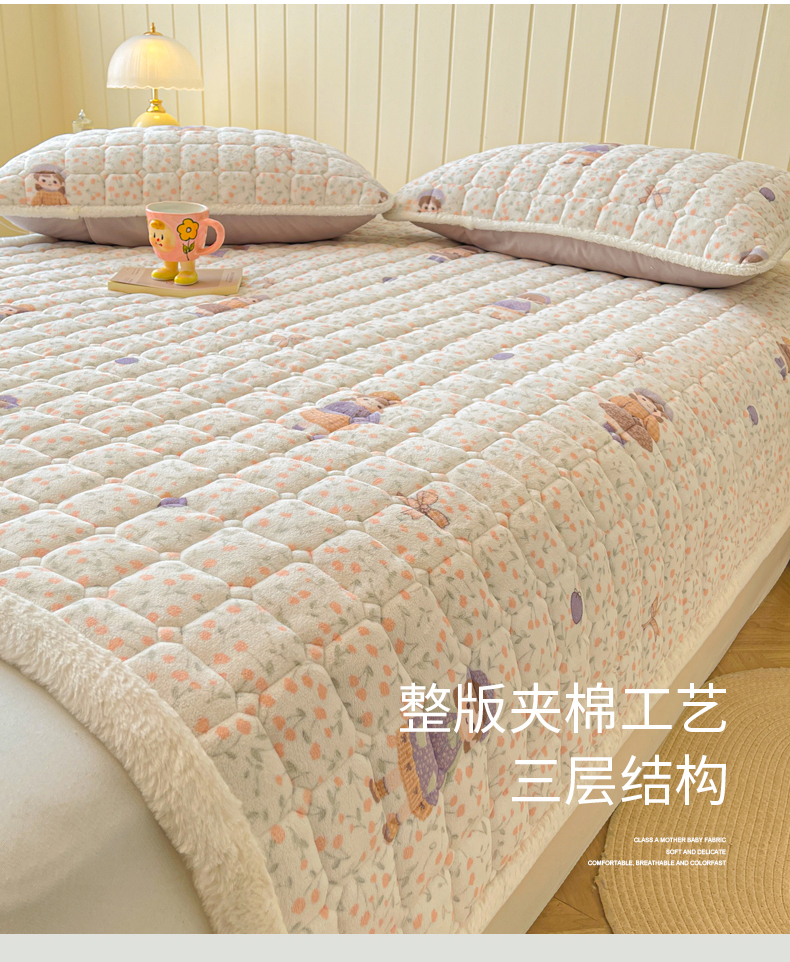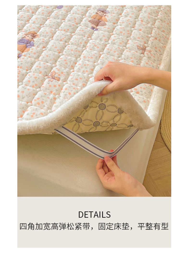 • 91家纺网 家纺一手货源 找家纺 LIFE.丽芙 2025秋冬新款牛奶绒加厚夹棉床垫床护垫单件印花卡通小清新床褥床垫子三件套 甜美女孩