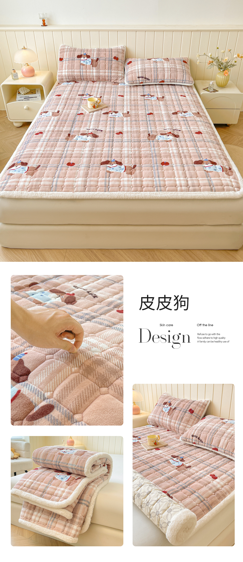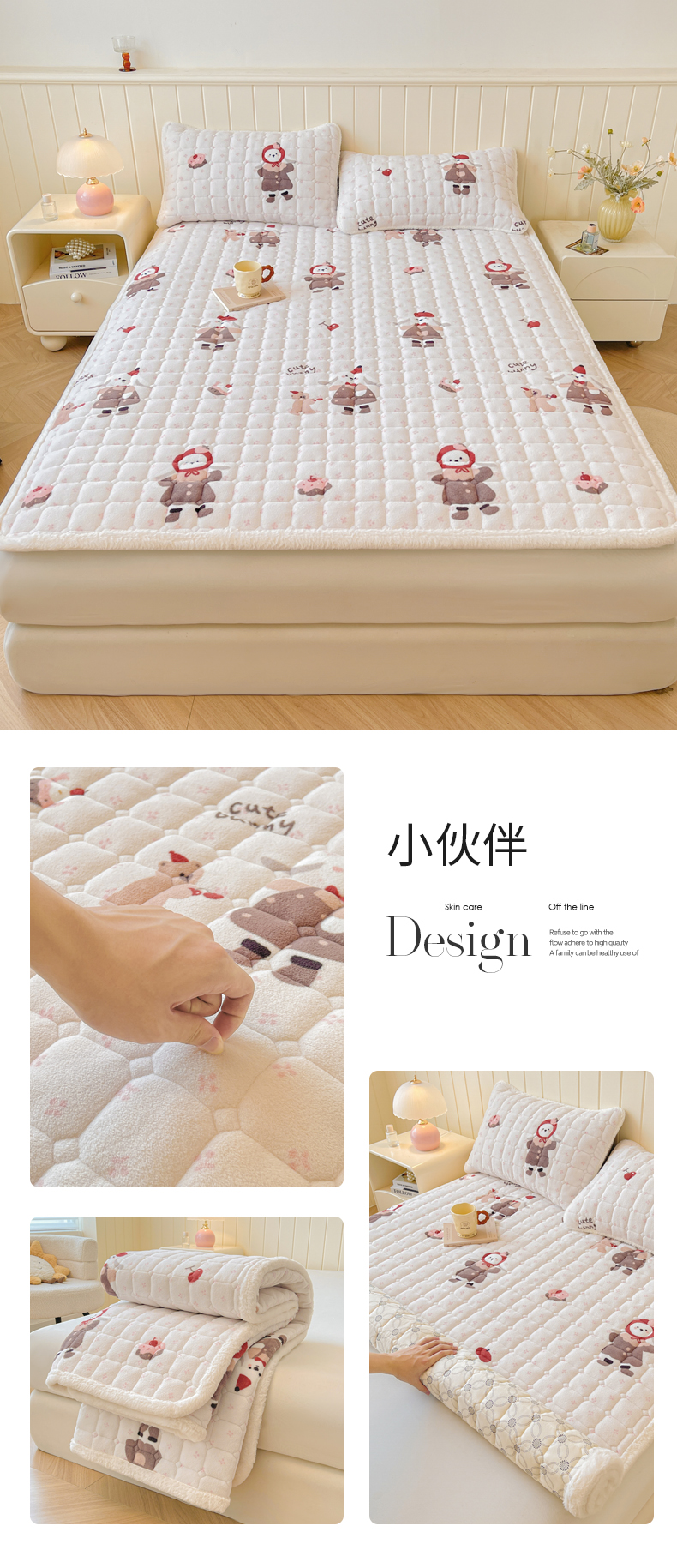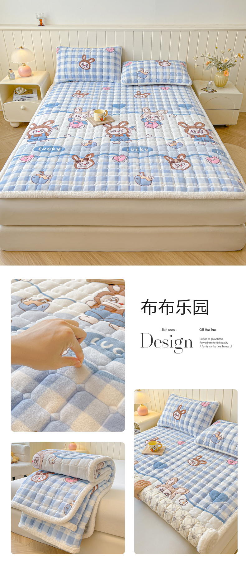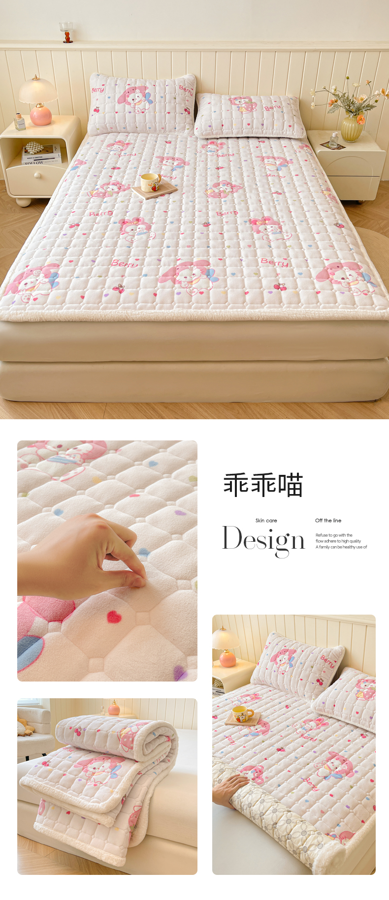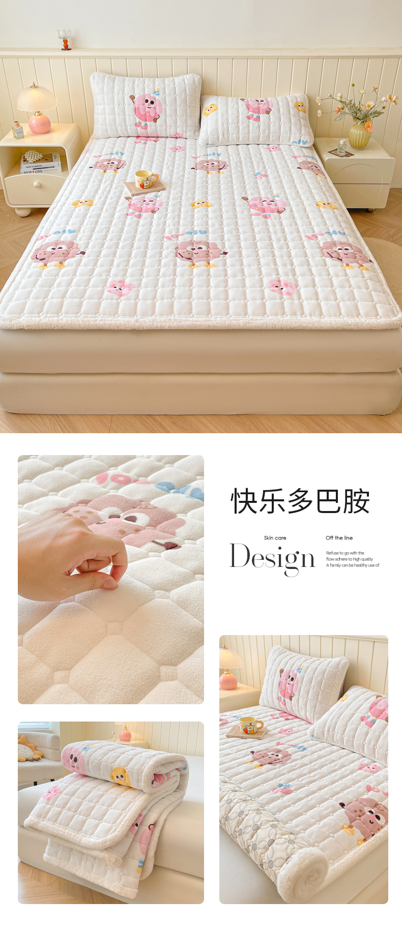 • 91家纺网 家纺一手货源 找家纺 LIFE.丽芙 2025秋冬新款牛奶绒加厚夹棉床垫床护垫单件印花卡通小清新床褥床垫子三件套 甜美女孩