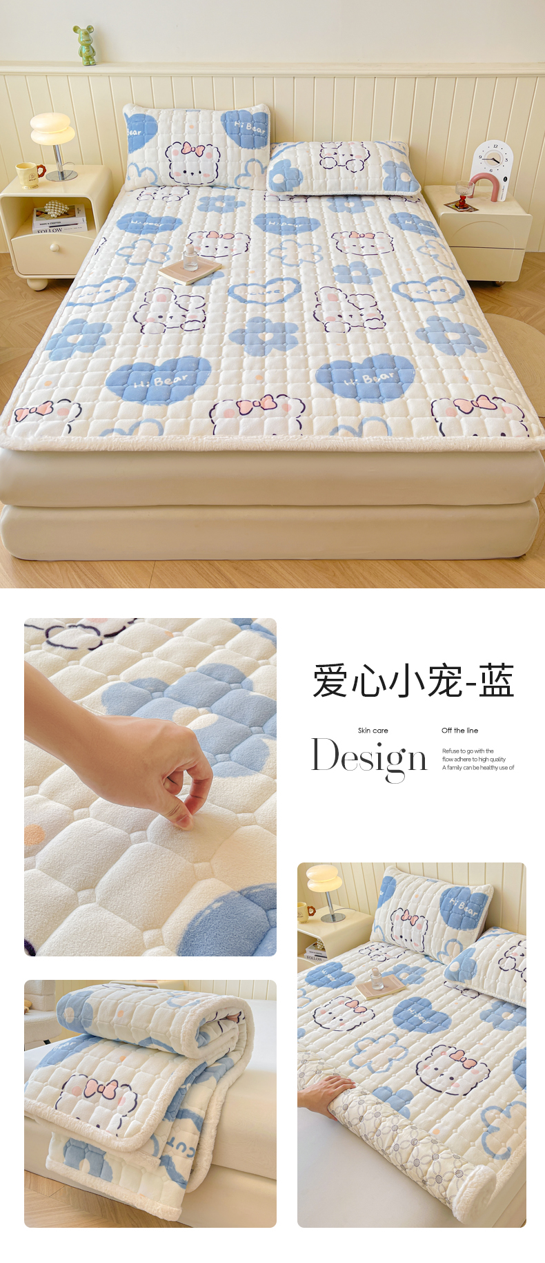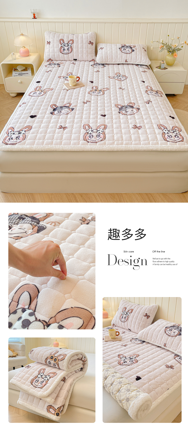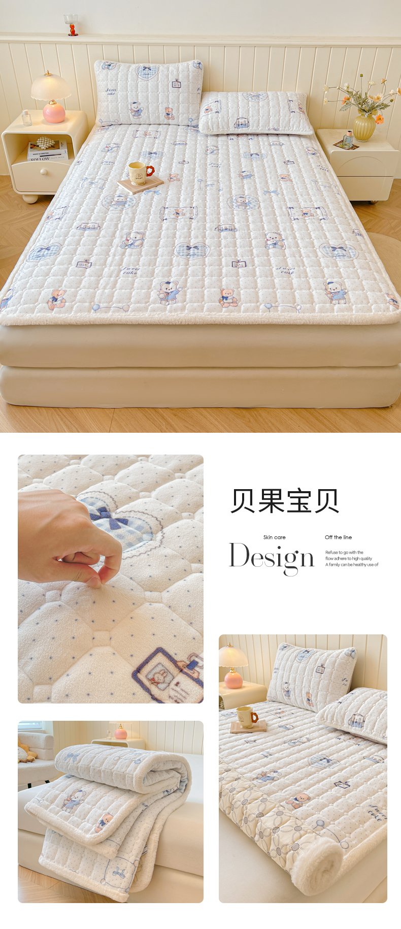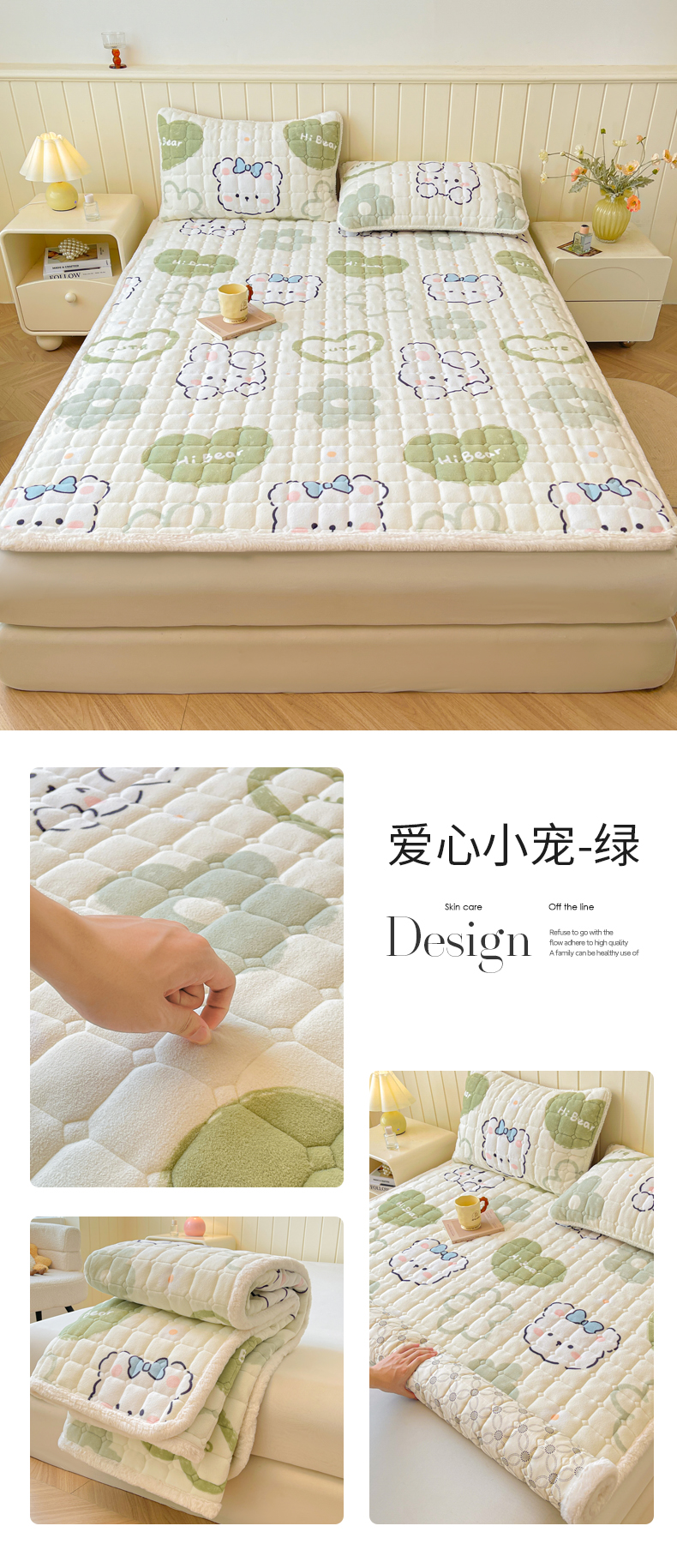 • 91家纺网 家纺一手货源 找家纺 LIFE.丽芙 2025秋冬新款牛奶绒加厚夹棉床垫床护垫单件印花卡通小清新床褥床垫子三件套 甜美女孩