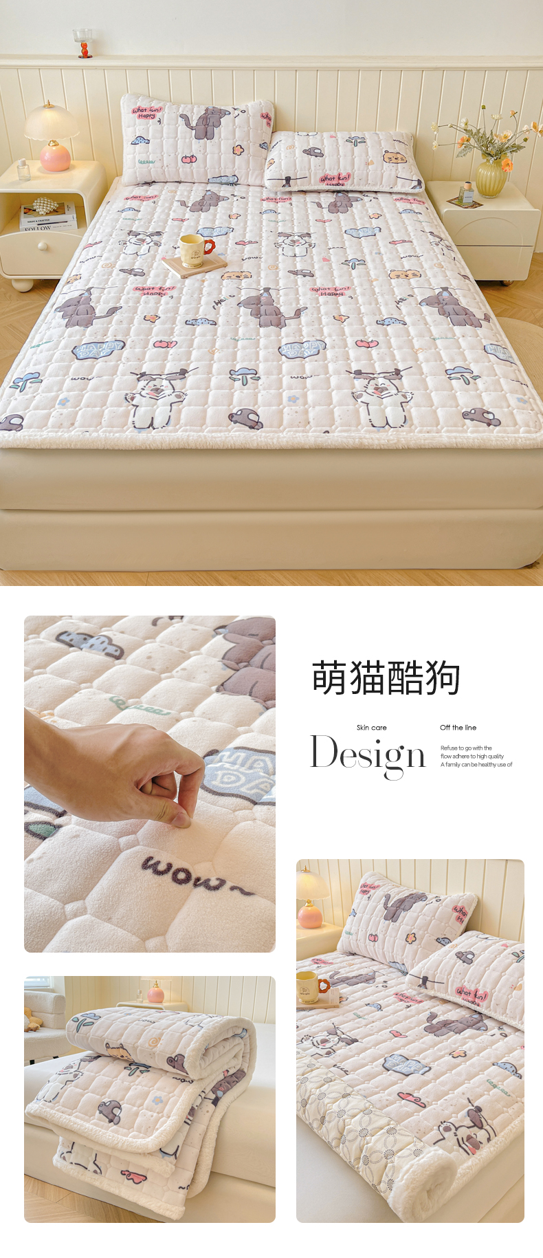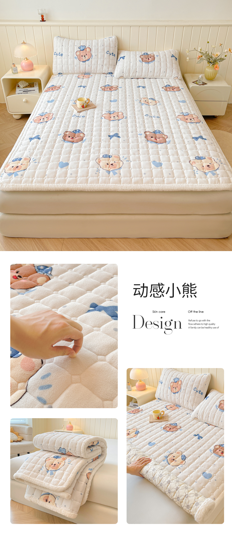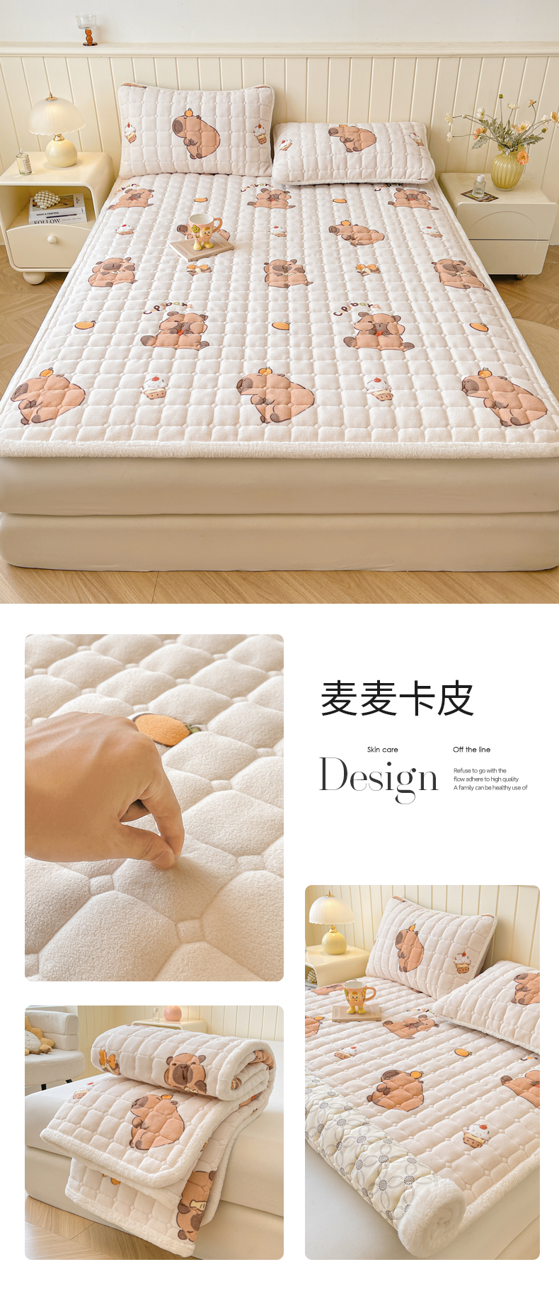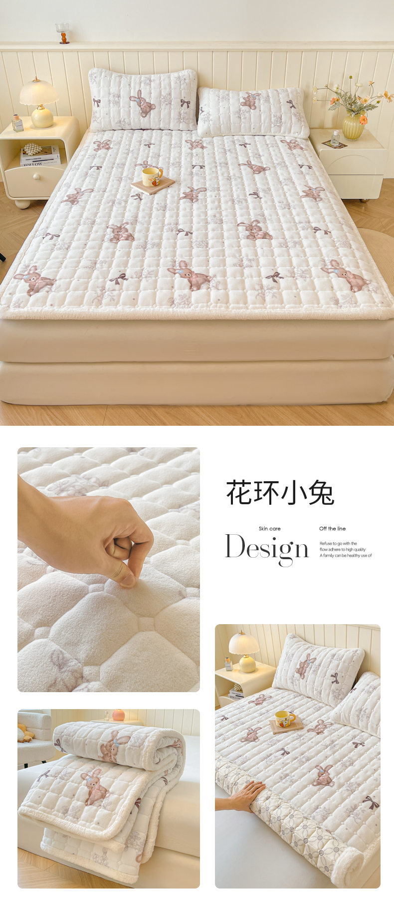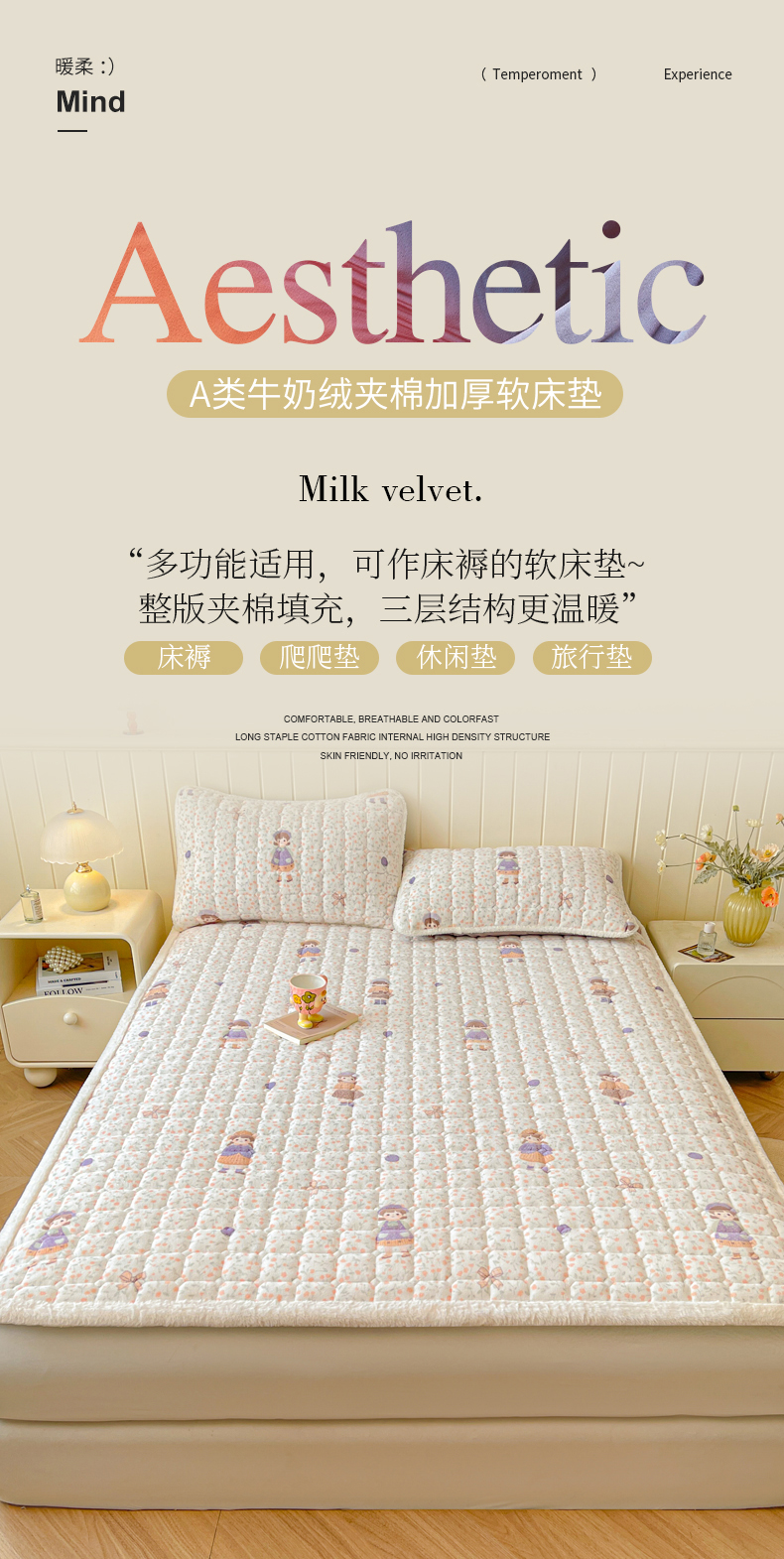 • 91家纺网 家纺一手货源 找家纺 LIFE.丽芙 2025秋冬新款牛奶绒加厚夹棉床垫床护垫单件印花卡通小清新床褥床垫子三件套 甜美女孩