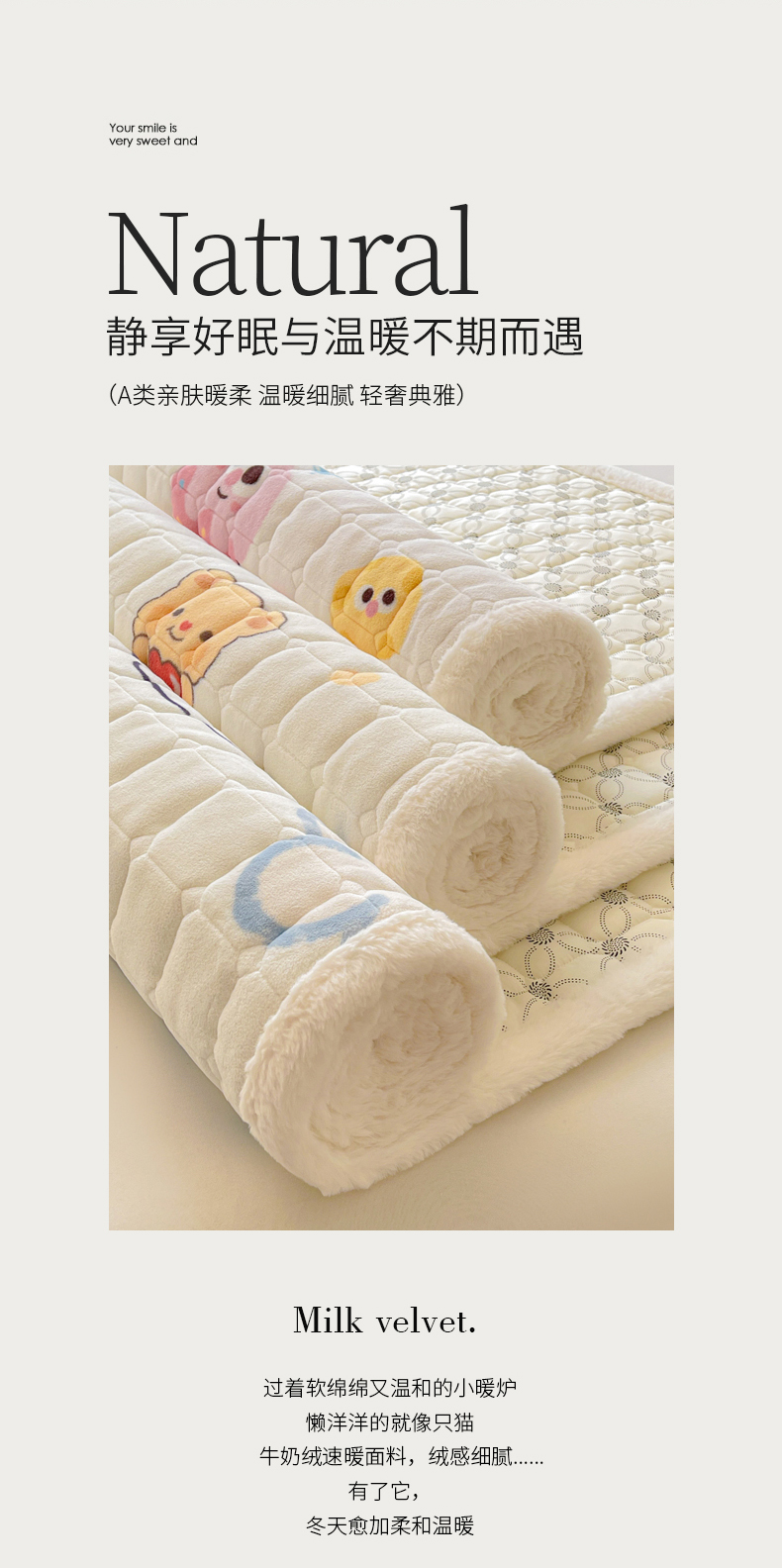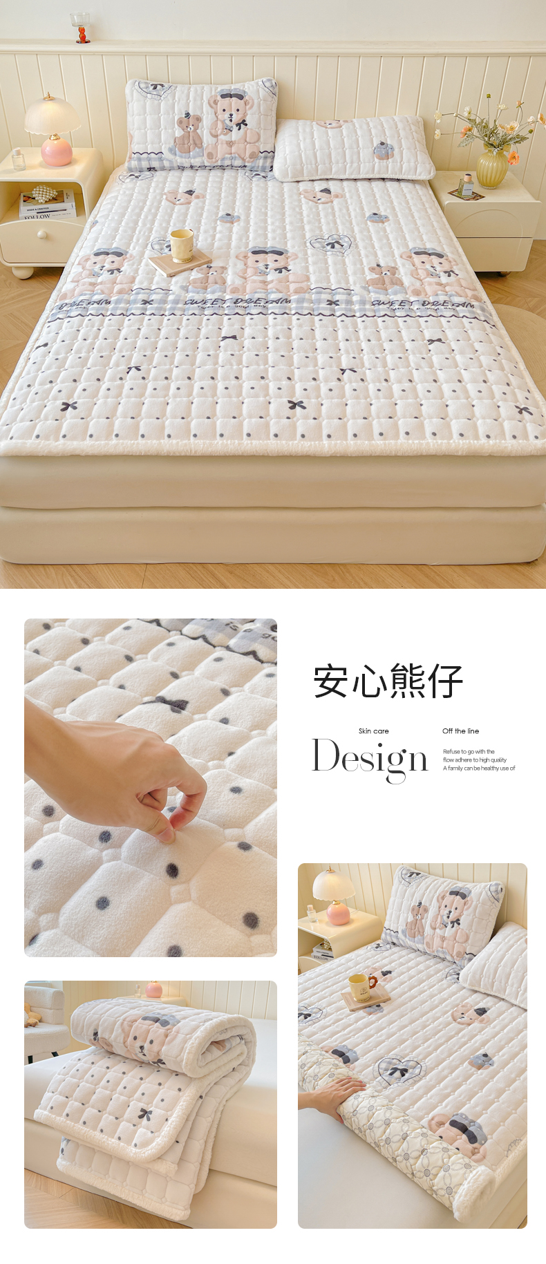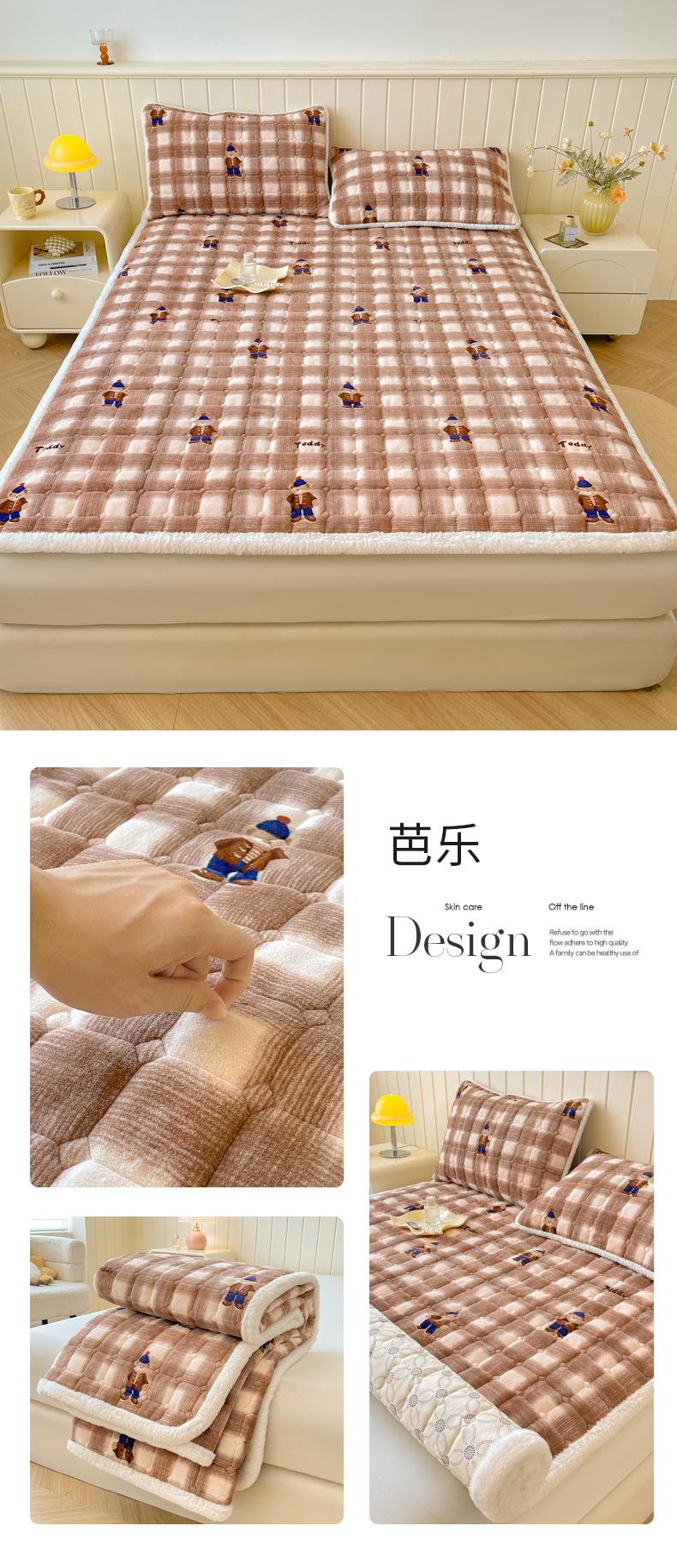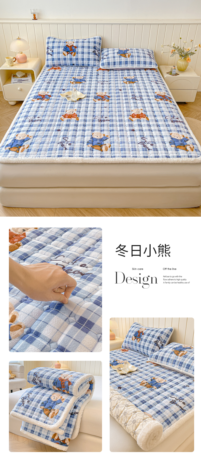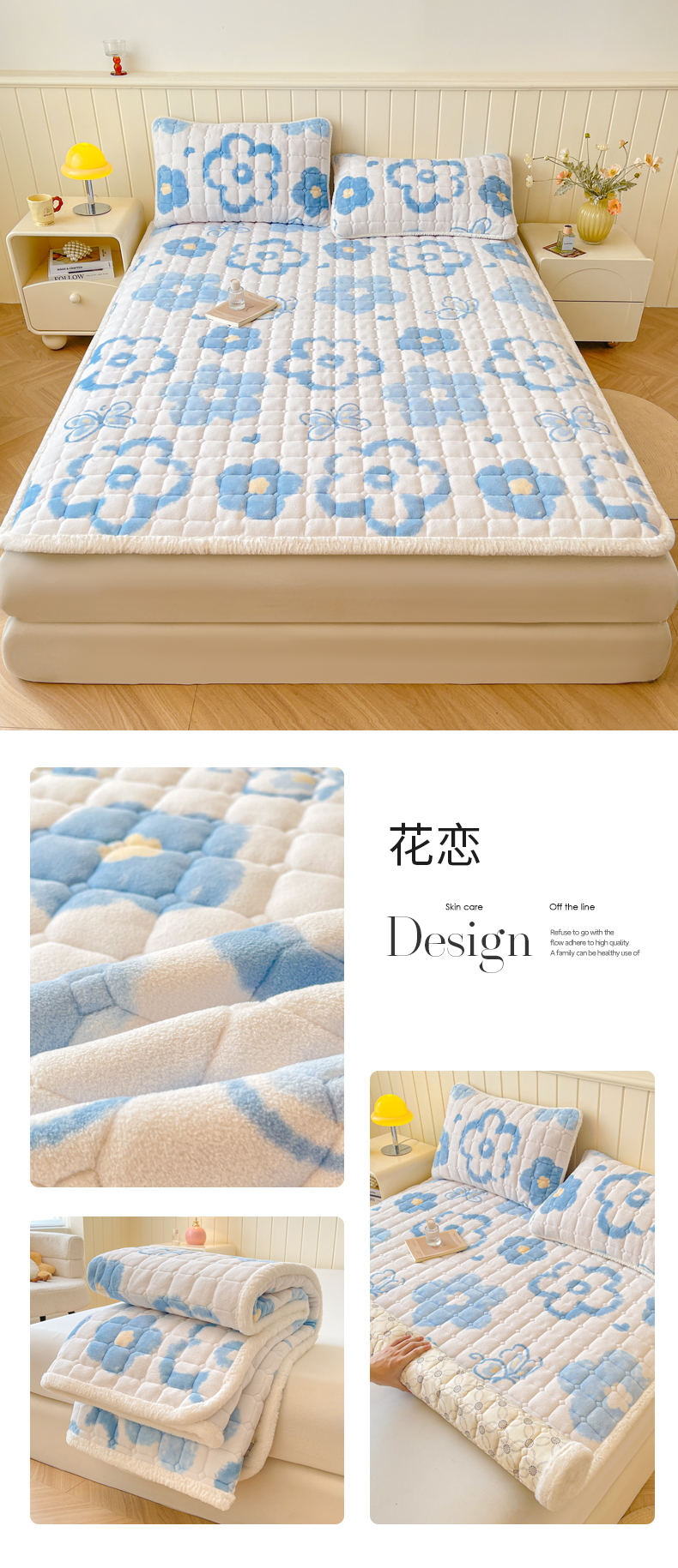 • 91家纺网 家纺一手货源 找家纺 LIFE.丽芙 2025秋冬新款牛奶绒加厚夹棉床垫床护垫单件印花卡通小清新床褥床垫子三件套 甜美女孩