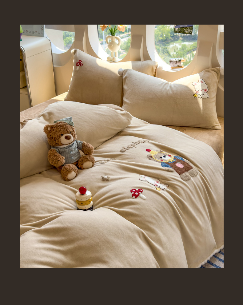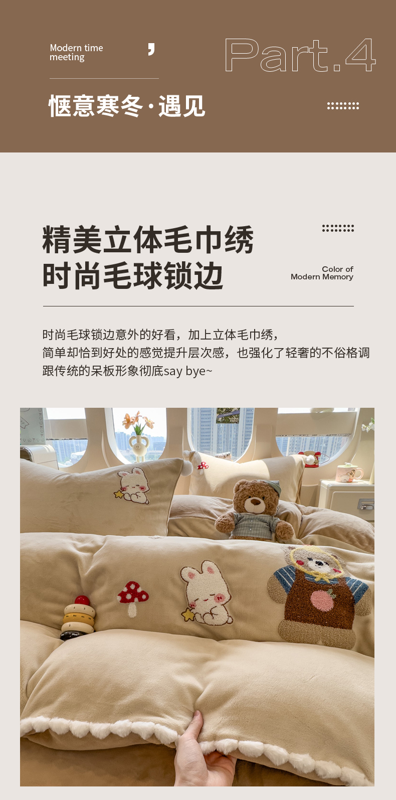 (总)席世家 2025新款婴儿绒贴布绣四件套,蛋糕熊,泡芙小羊,小女孩