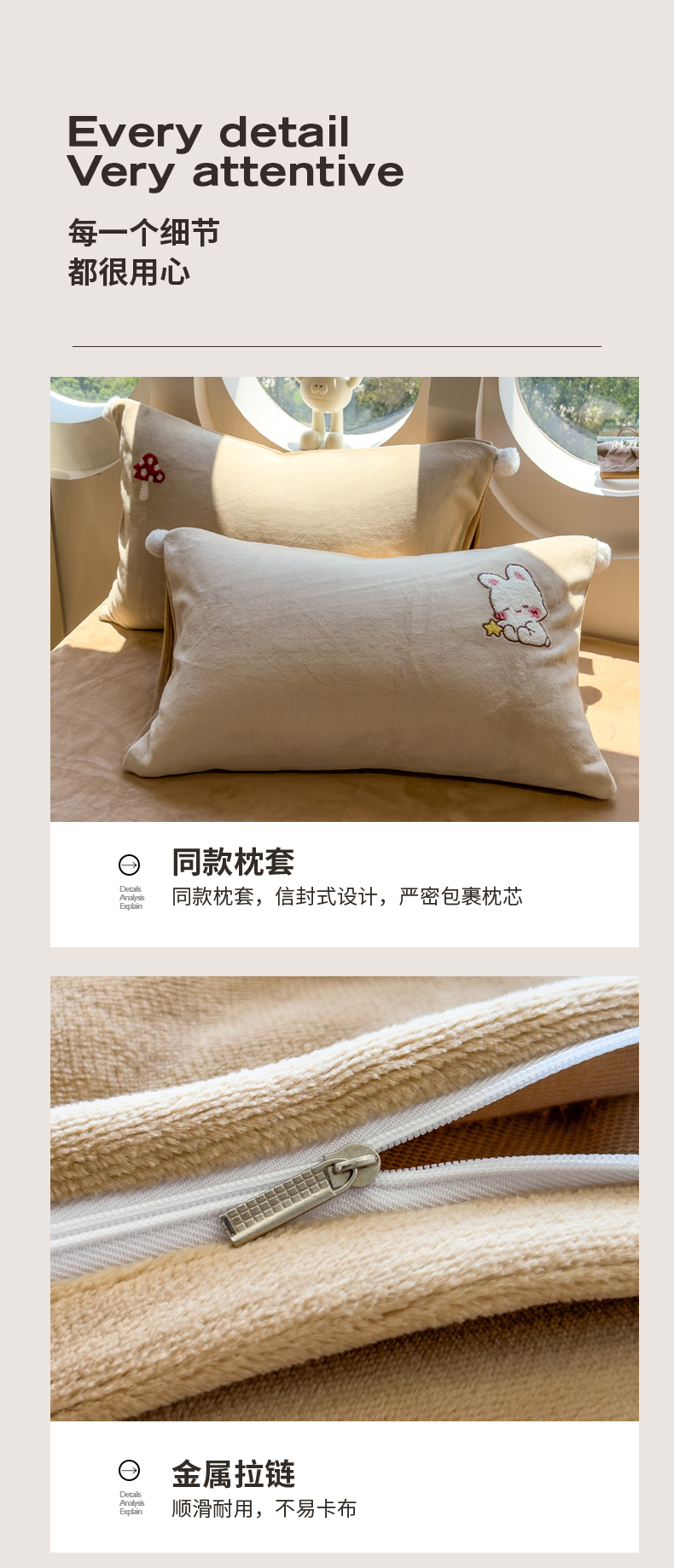 (总)席世家 2025新款婴儿绒简约款四件套,豆粉拼香槟,可可棕,奶油白拼粉,星光蓝,幽山紫