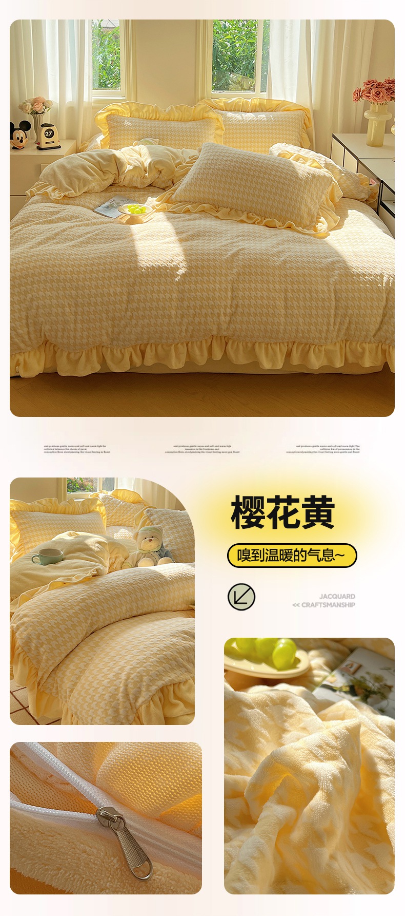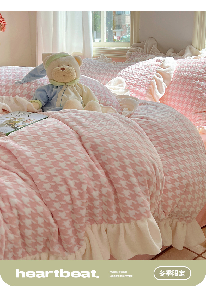 当前位置: 91家纺网 > 商品网购 > 床品套件 > 四件套 > 牛奶绒四件套 > 轻奢坊 2025新款牛奶绒千鸟格烂花花边款四件套-场景一 花边千鸟格奶酪粉数据图