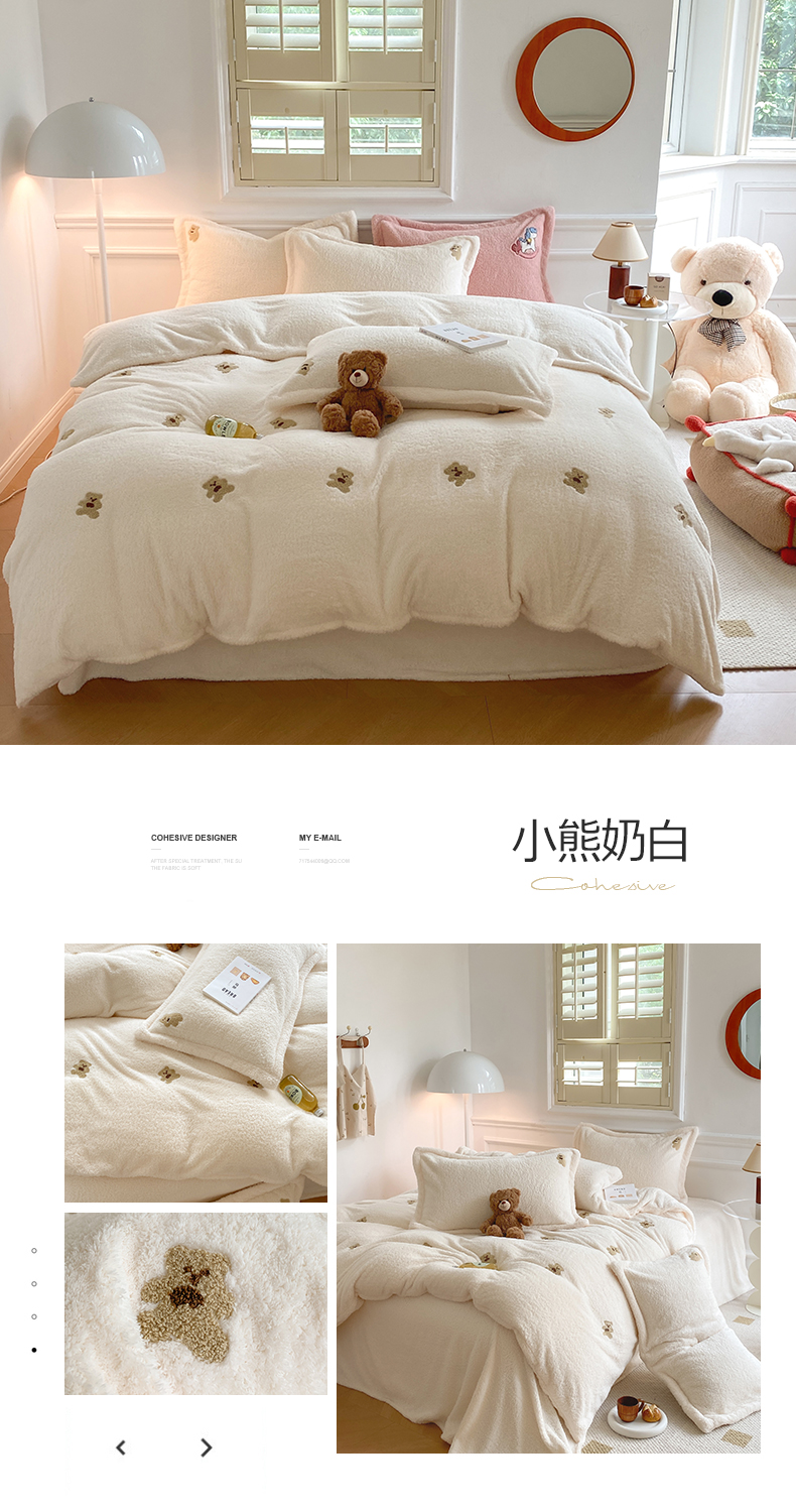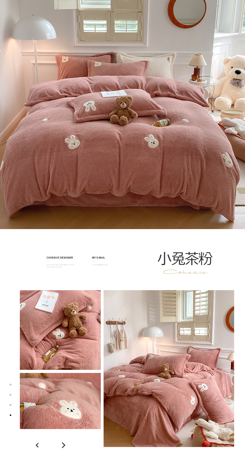 (总)萝莉家纺 2023新款230克高克重软绵绵的泰迪绒四件套,小免蓝,小木马少女粉,小木马水兰,小兔茶粉,小熊奶白,熊豆绿