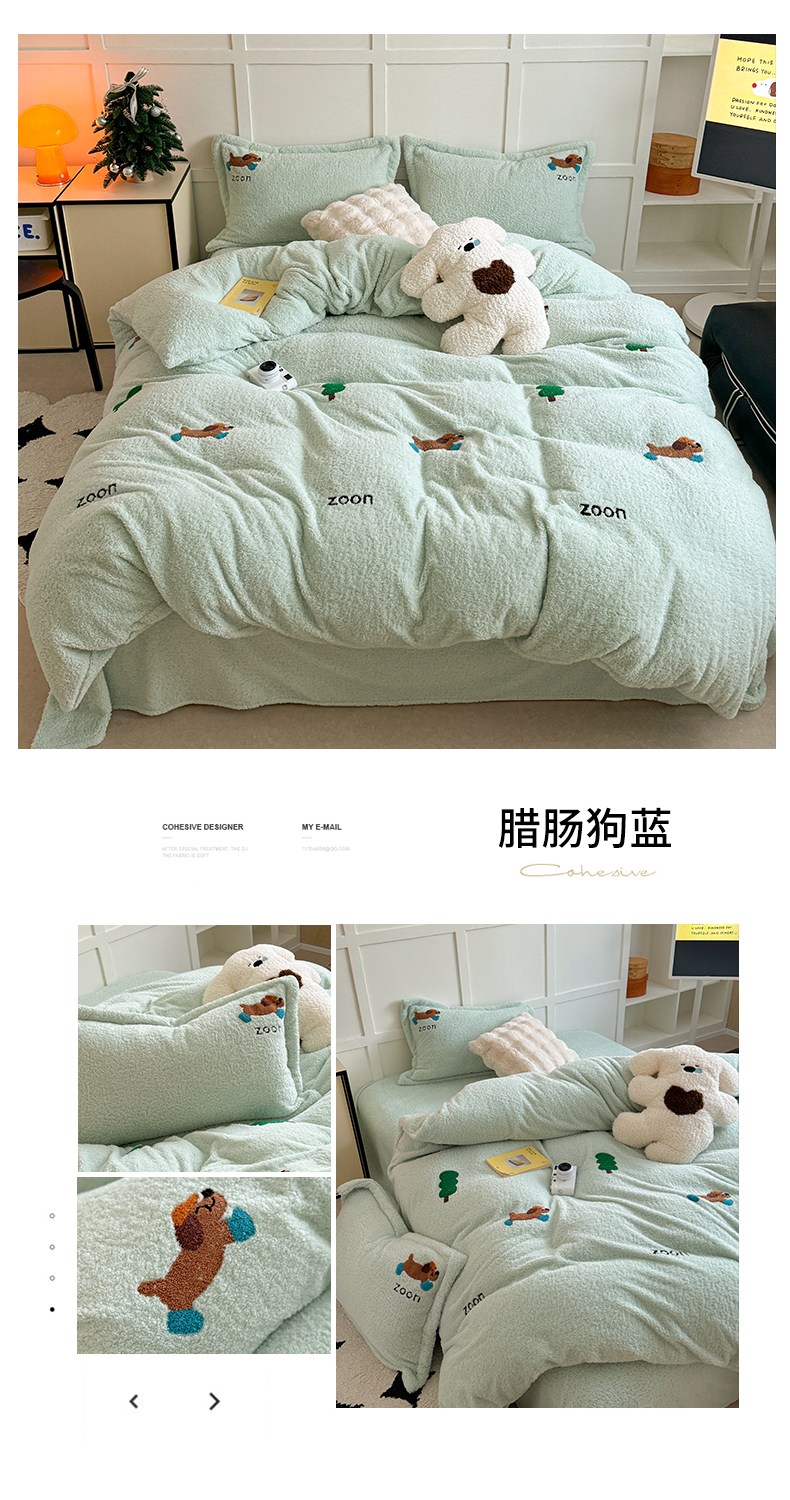 (总)萝莉家纺 2025新款加厚泰迪绒毛巾绣四件套,腊肠狗蓝,可爱狗米白,可爱狗深米,礼帽狗,圣诞树黄,小免蓝,小木马少女粉,小木马水兰,小企鹅豆沙粉,小企鹅米白,小兔茶粉,小熊奶白,熊豆绿,熊猫白,熊猫紫