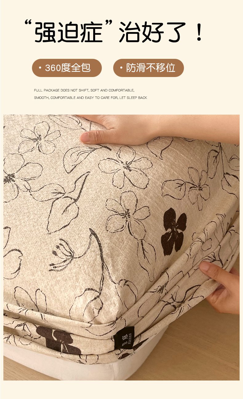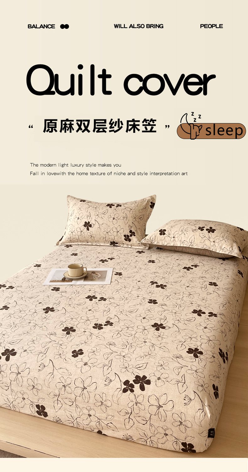 梵克保罗 2025秋冬新款10A抗菌原麻床笠套件跨境外贸 水墨江南