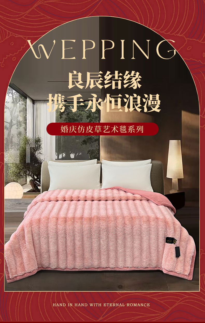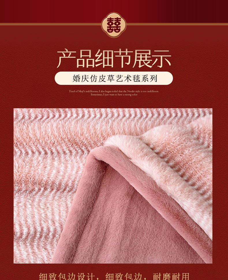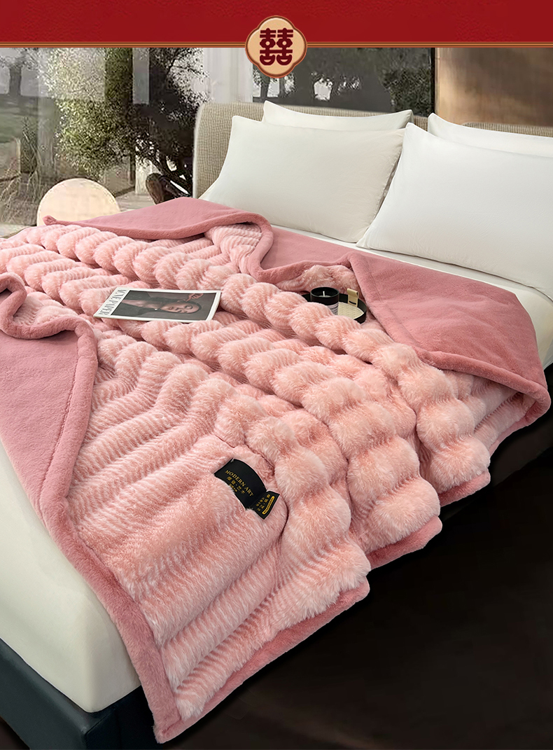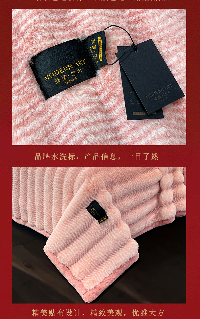 商品名称:凯轩毛毯网销专供 2025新款婚庆仿皮草彩波纹艺术毯毛毯毯子-彩波纹 彩波纹-蜜桃粉