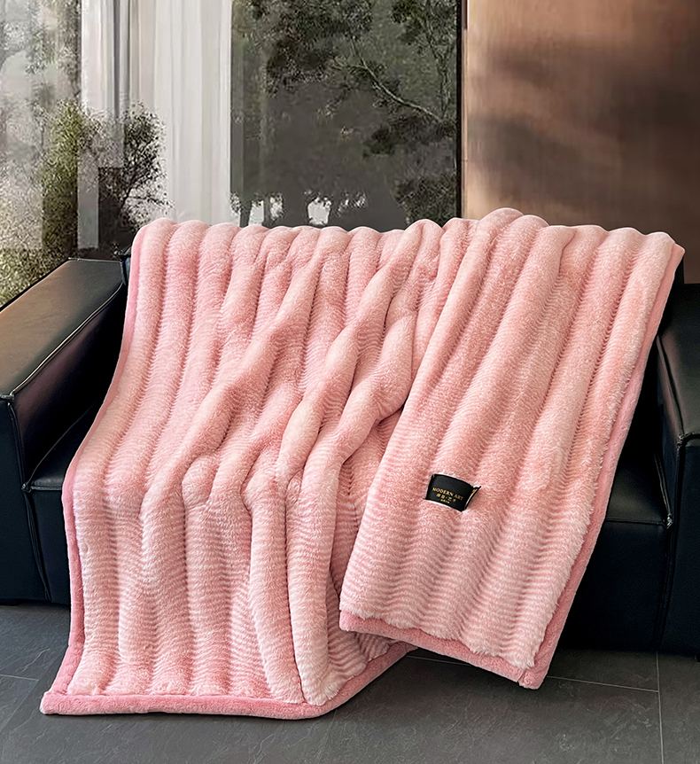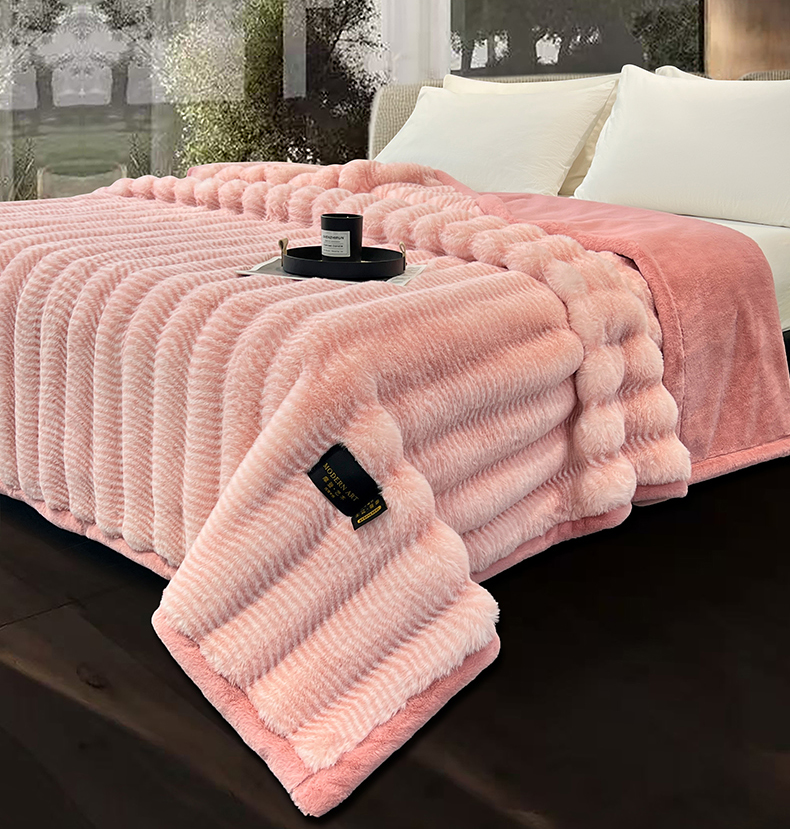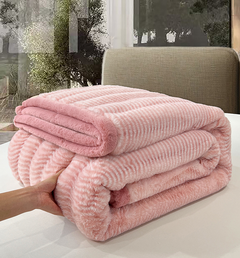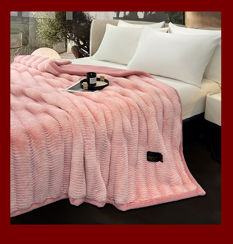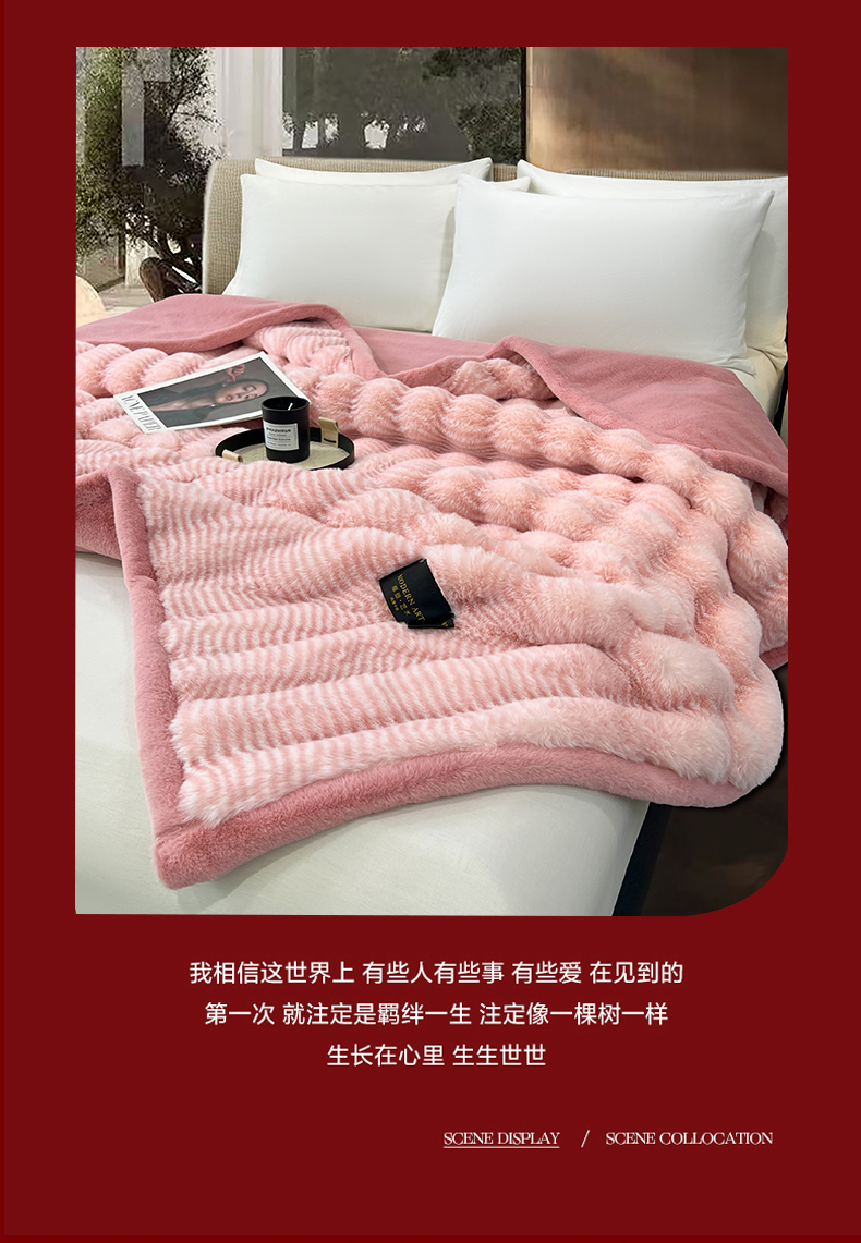 商品名称:凯轩毛毯网销专供 2025新款婚庆仿皮草彩波纹艺术毯毛毯毯子-彩波纹 彩波纹-蜜桃粉