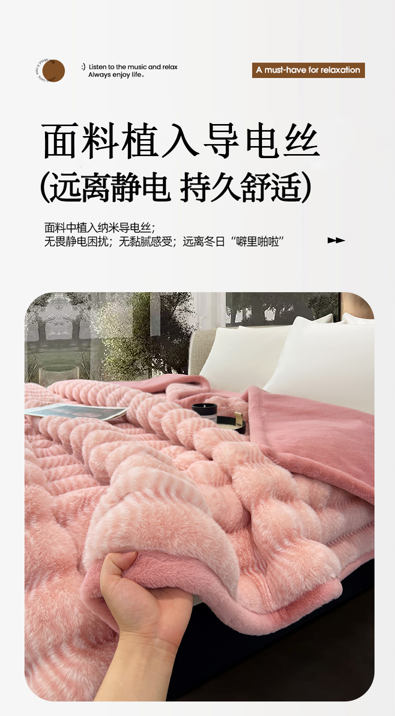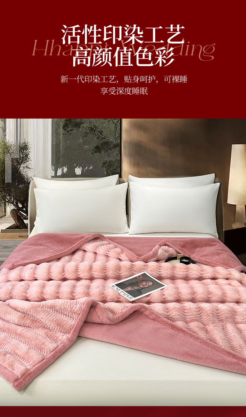 (总)凯轩毛毯网销专供 2026新款仿刺绣双层加厚压花云毯,豆沙红,绛紫色,孔雀绿,奶油咖,珊瑚粉,深灰色
