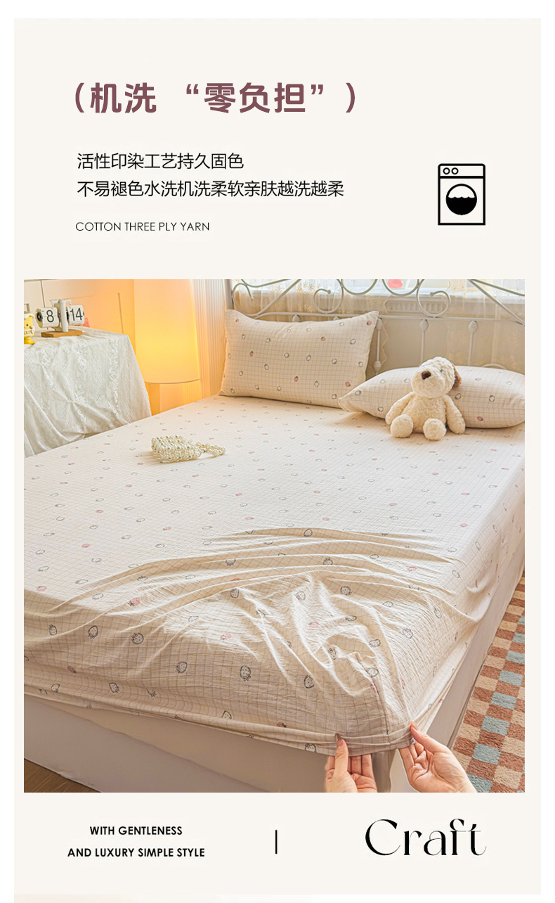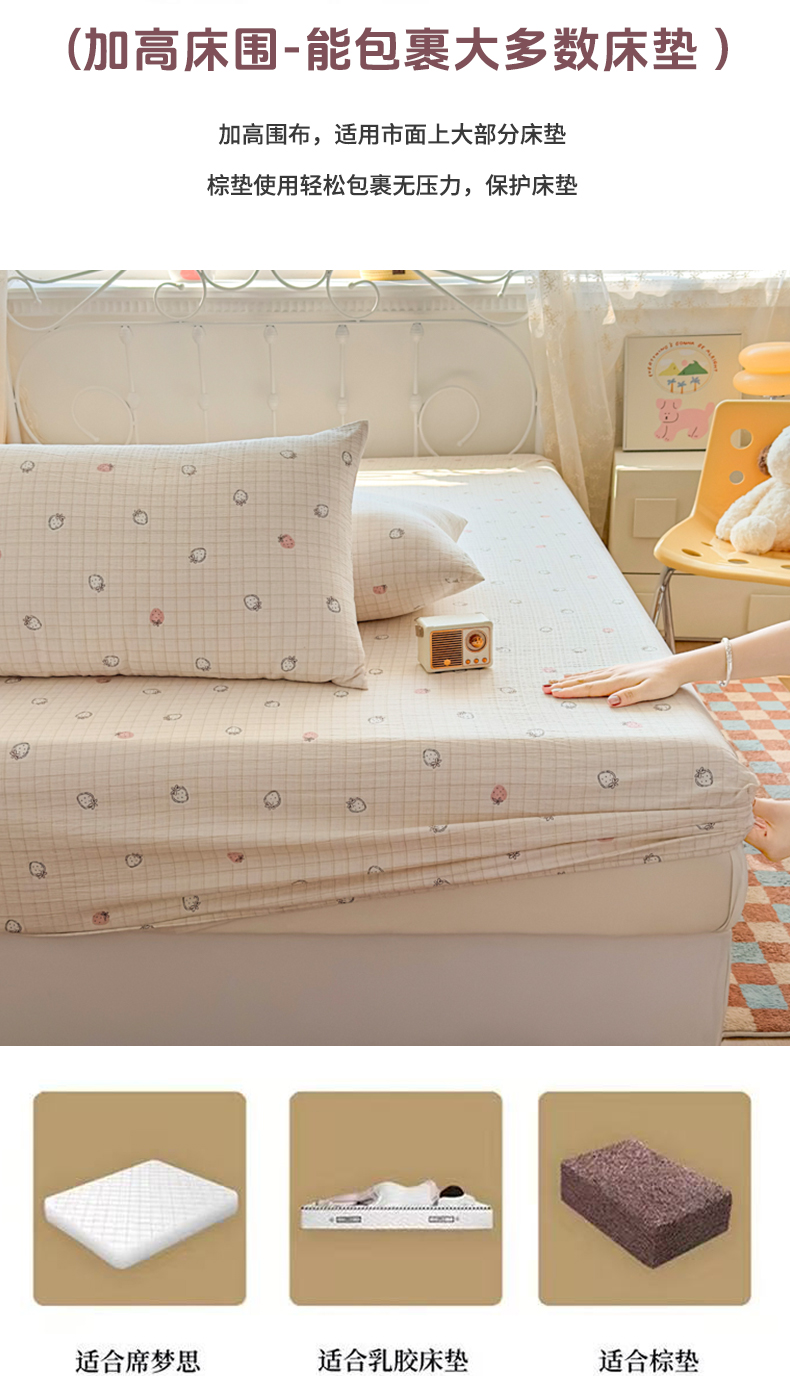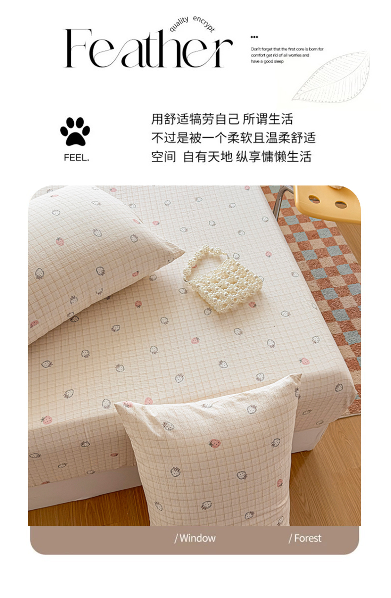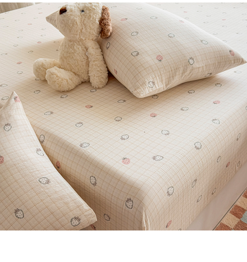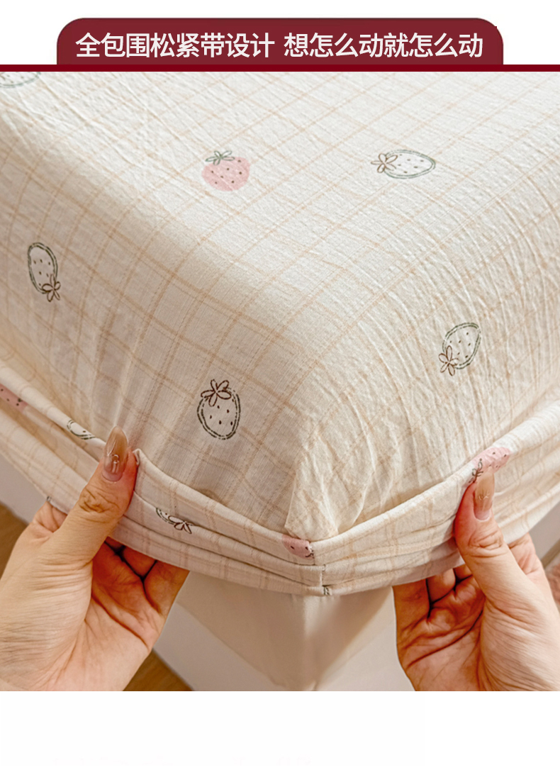 爱彼家纺 2025新款水洗水洗棉印花床笠单品床笠床笠三件套风格二 格文草莓