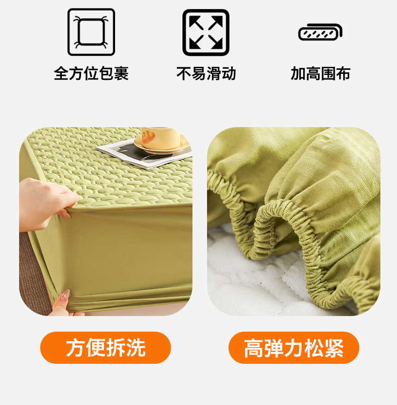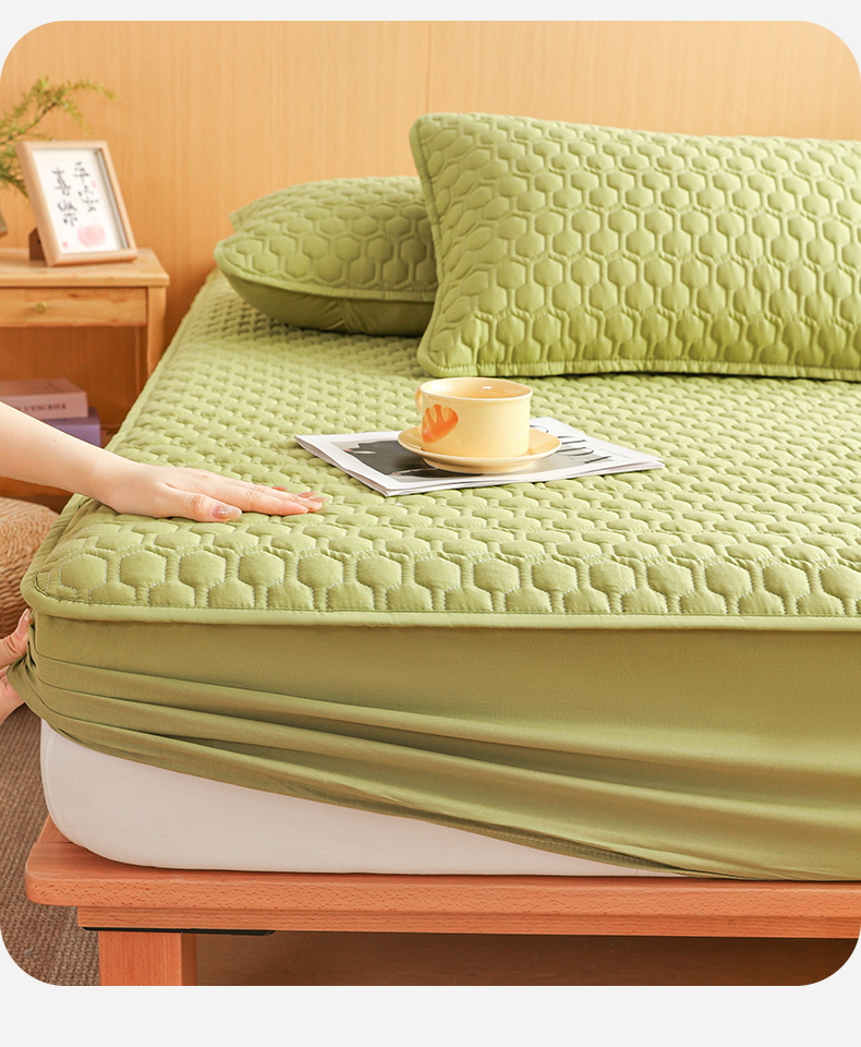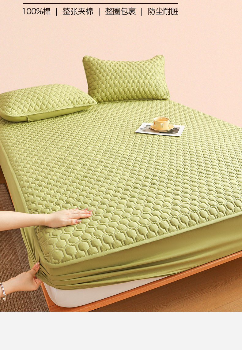 恒爱家纺 2025新款全棉绗绣单品床笠 牛油果绿