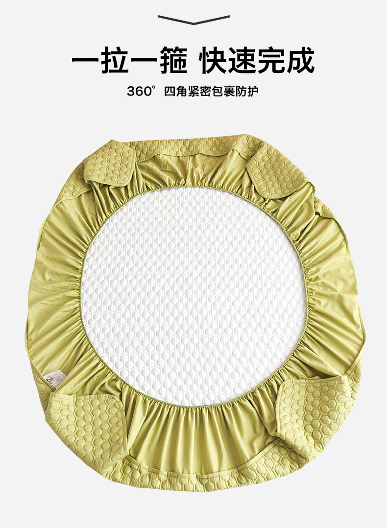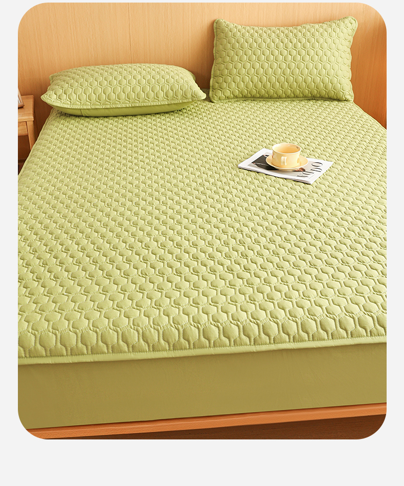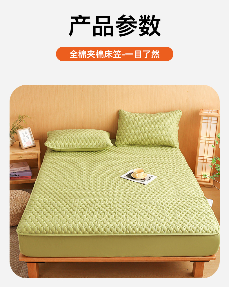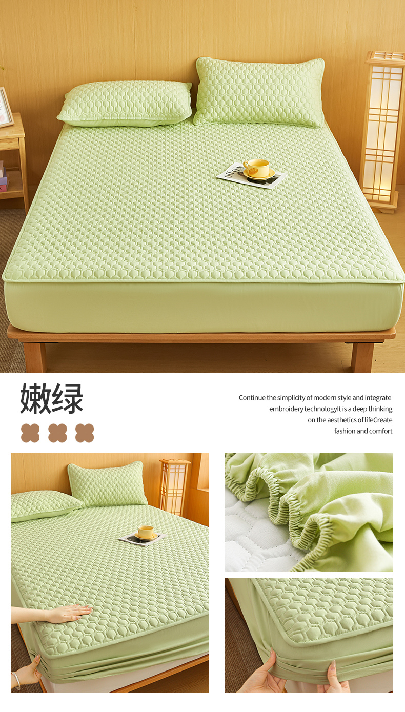 • 91家纺网 家纺一手货源 找家纺 恒爱家纺 2025新款全棉绗绣单品床笠 牛油果绿