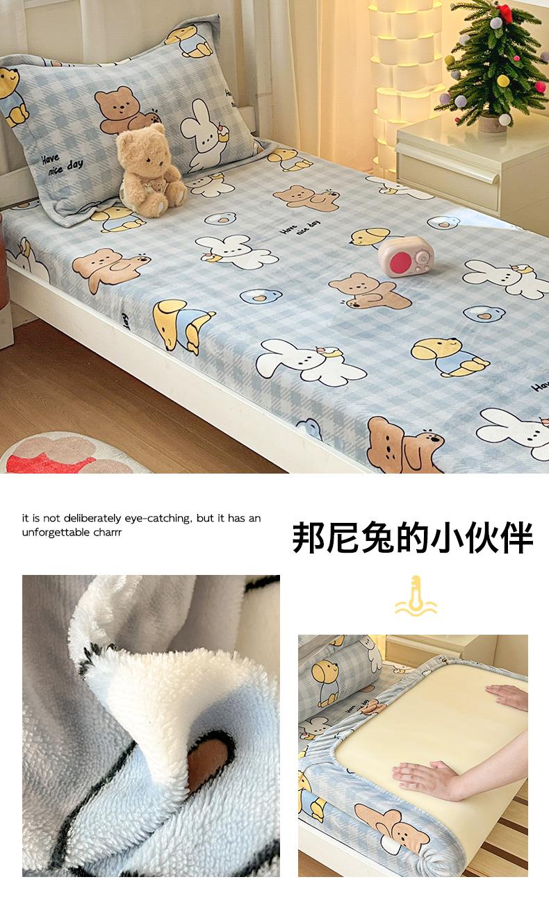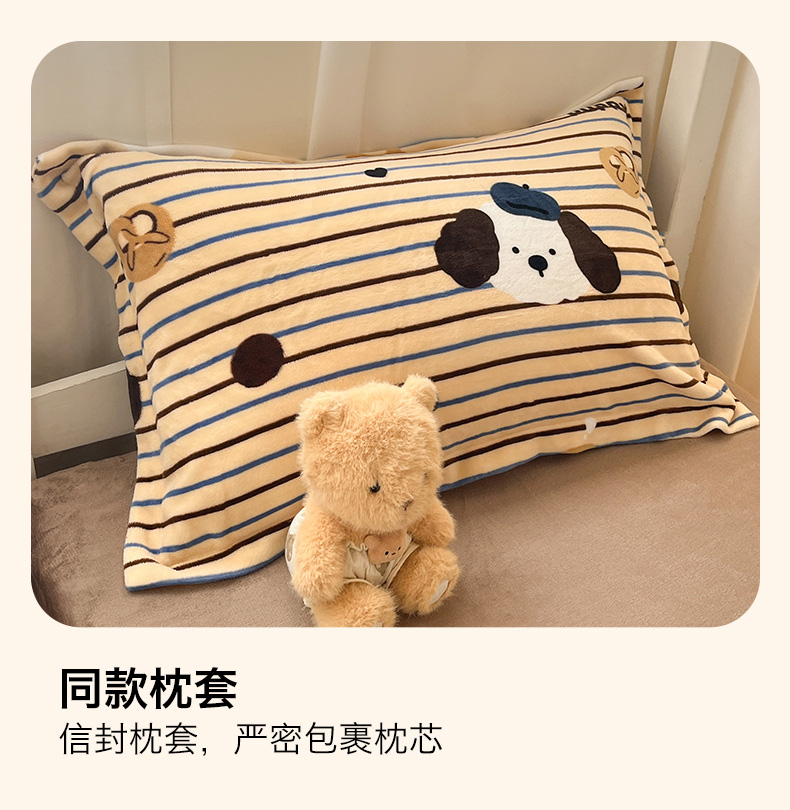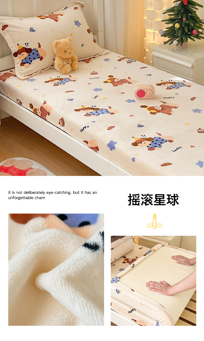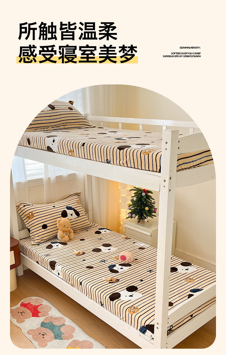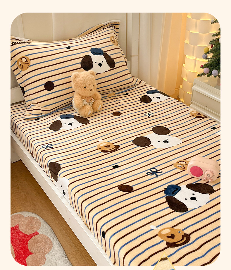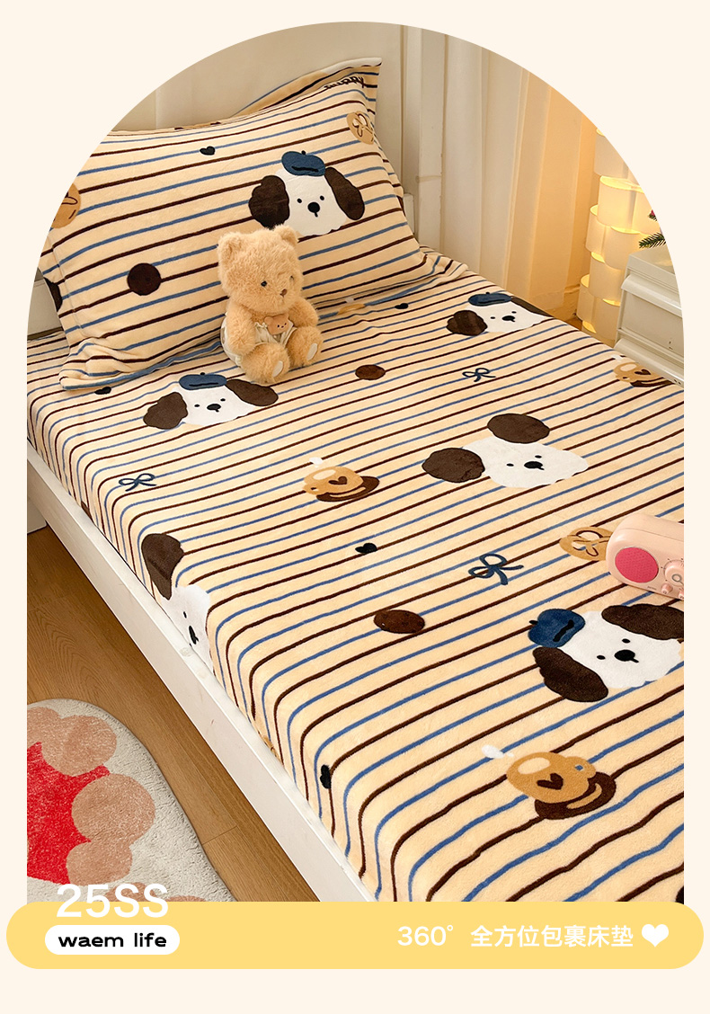 寻米 2025新款高克重加厚保暖牛奶绒床笠-宿舍图 海德堡小狗