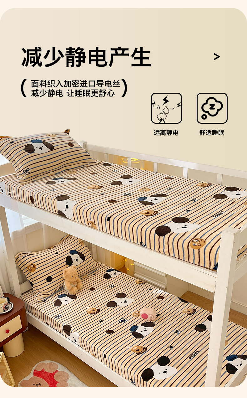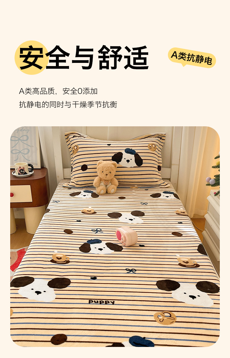 • 91家纺网 家纺一手货源 找家纺 寻米 2025新款高克重加厚保暖牛奶绒床笠-宿舍图 海德堡小狗