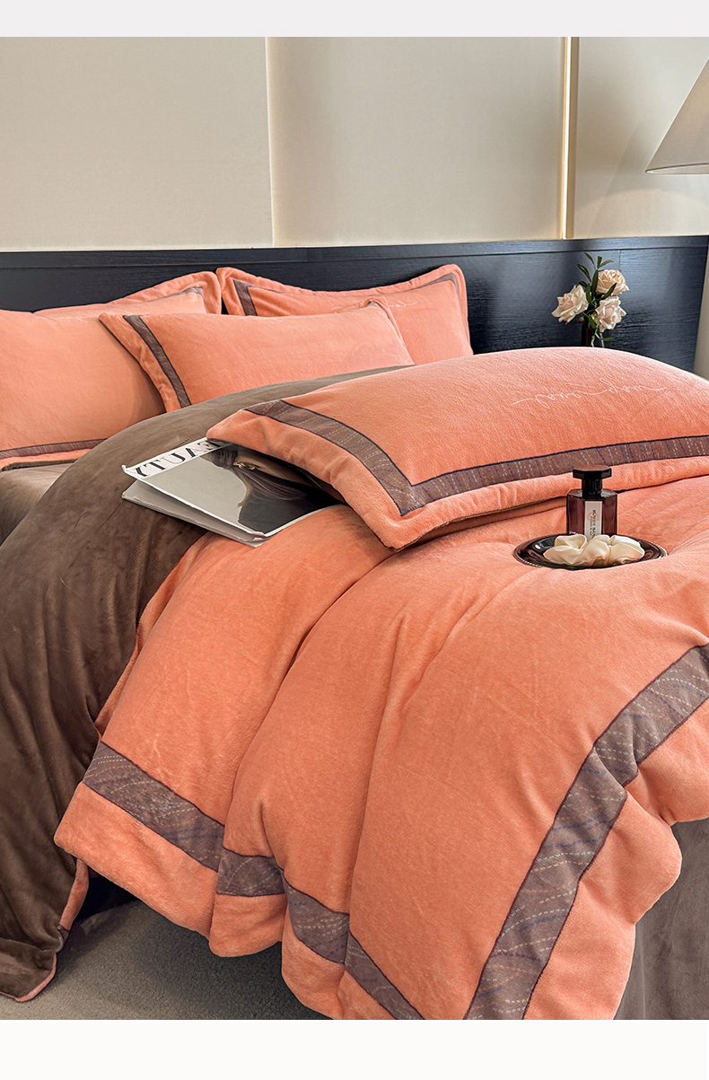 (总)星座家纺 2025新款轻奢牛奶绒四件套-极简系列,爱玛橙,冰雾蓝,蜜桃粉,绅士灰,朱砂红