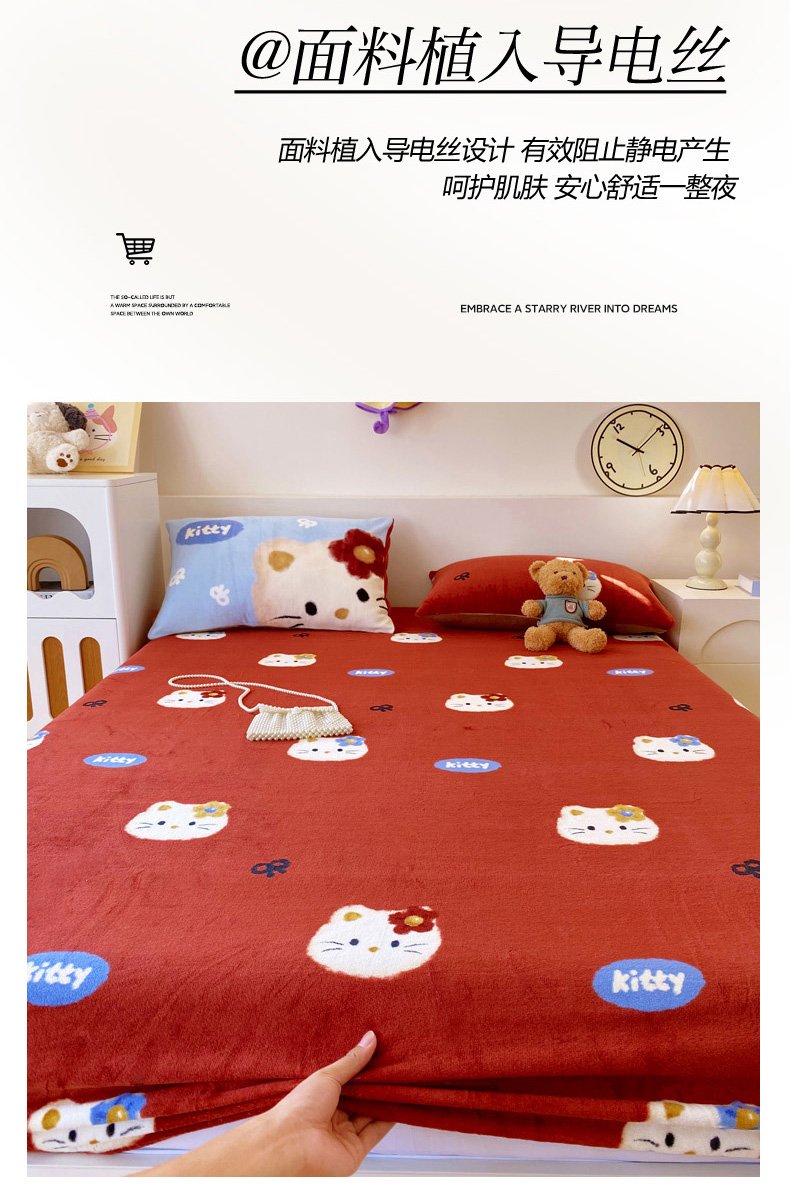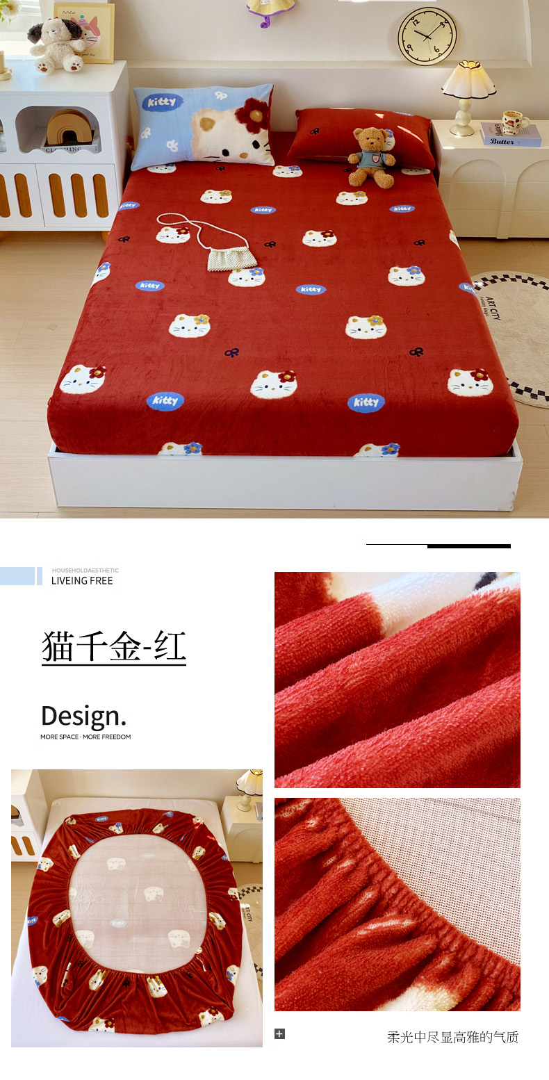 当前位置: 91家纺网 > 商品网购 > 床上用品 > 床笠 > 葡萄家 2025年新款牛奶绒印花单床笠萌系卡通床笠款 猫千金红