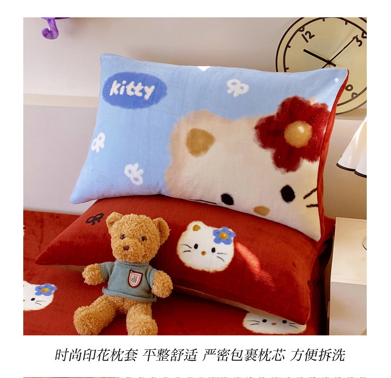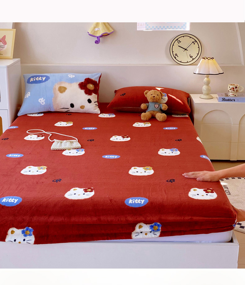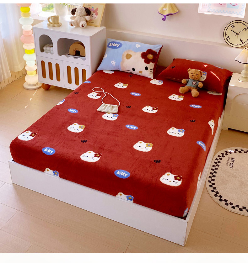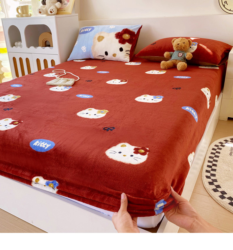 葡萄家 2025年新款牛奶绒印花单床笠萌系卡通床笠款 猫千金红