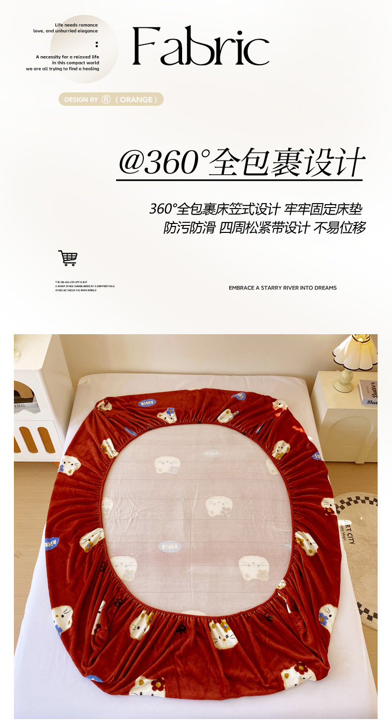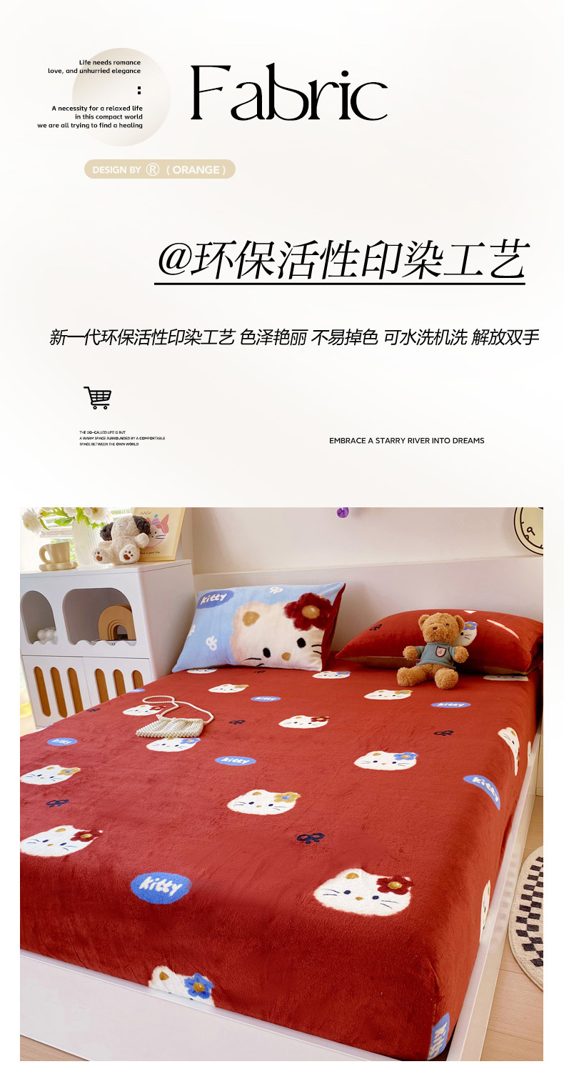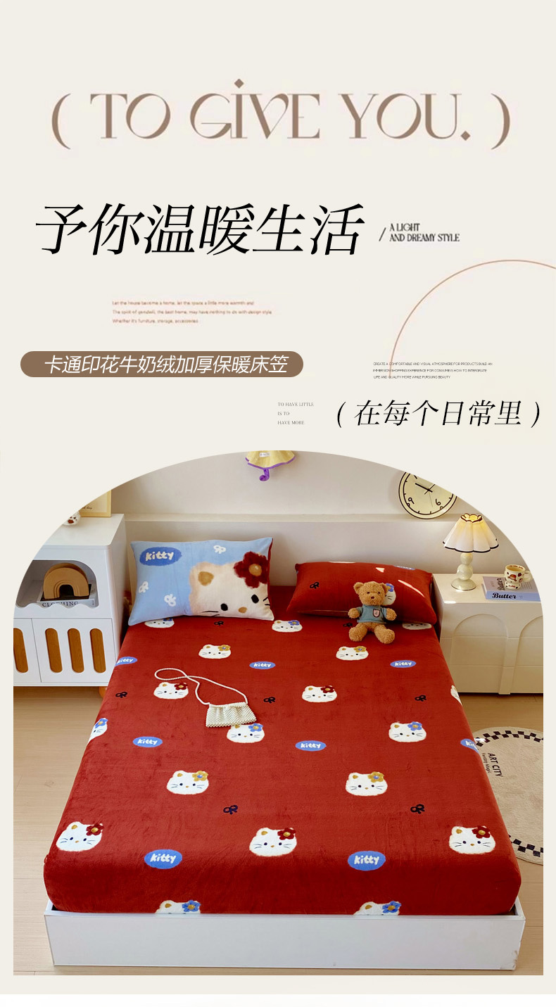 • 91家纺网 家纺一手货源 找家纺 葡萄家 2025年新款牛奶绒印花单床笠萌系卡通床笠款 猫千金红