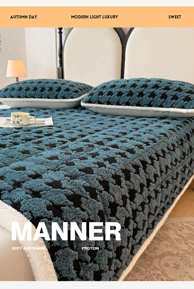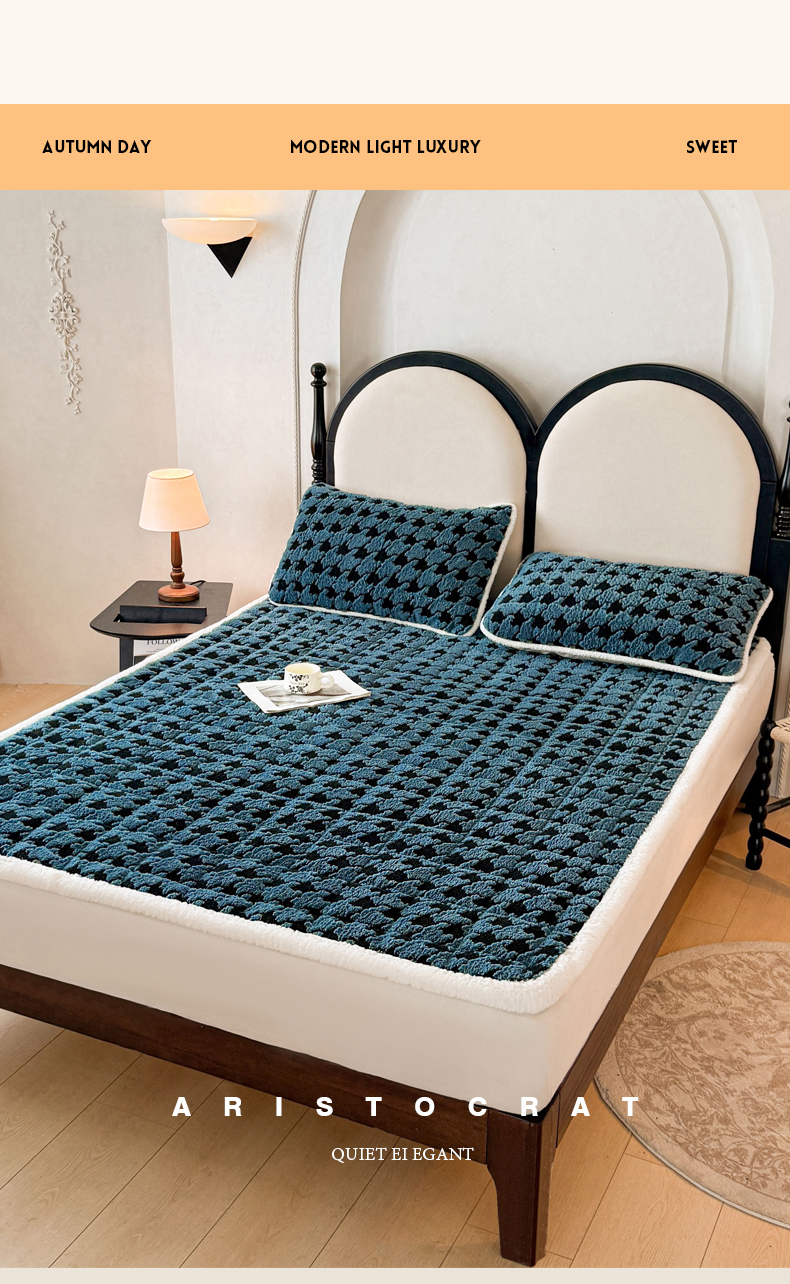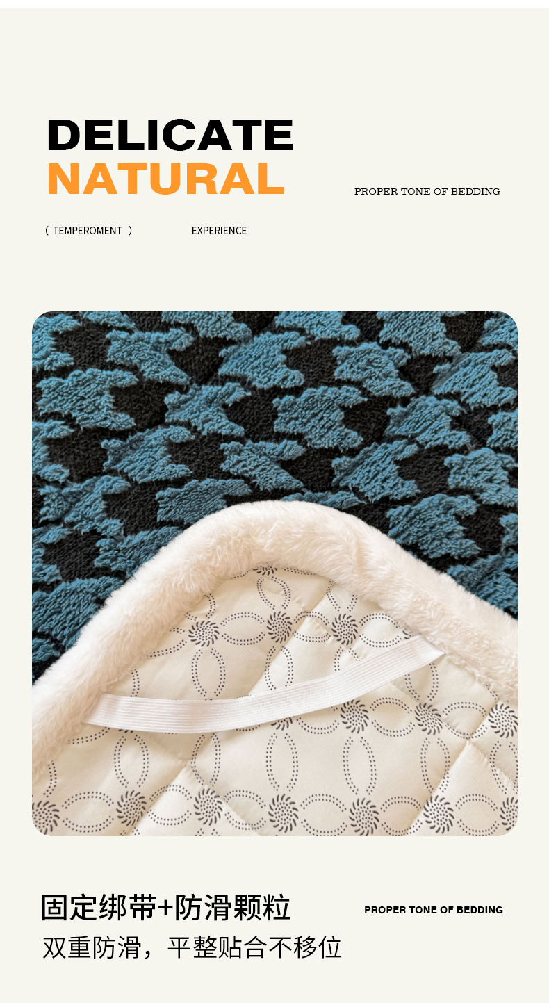 • 91家纺网 家纺一手货源 找家纺 LIFE.丽芙 2025秋冬新款色纱提花舒棉绒加厚夹棉床垫床护垫单件简约床褥床垫子三件套 千鸟格-蓝灰