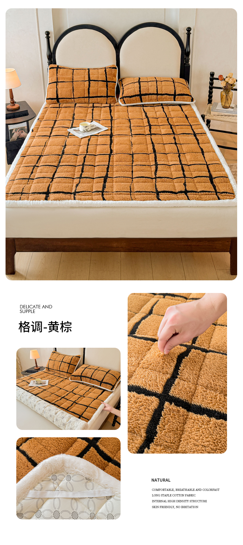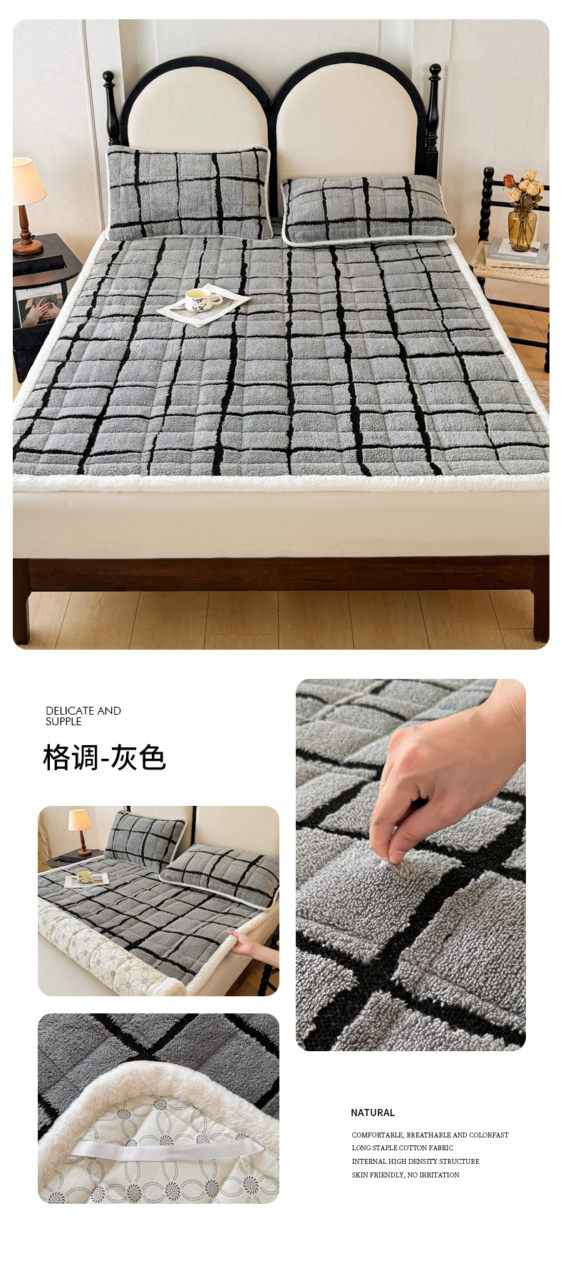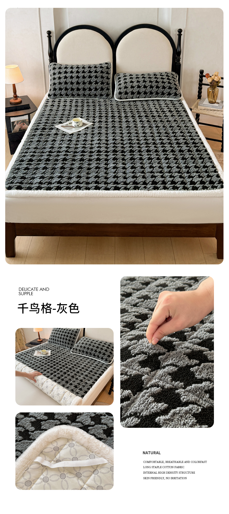• 91家纺网 家纺一手货源 找家纺 LIFE.丽芙 2025秋冬新款色纱提花舒棉绒加厚夹棉床垫床护垫单件简约床褥床垫子三件套 千鸟格-蓝灰