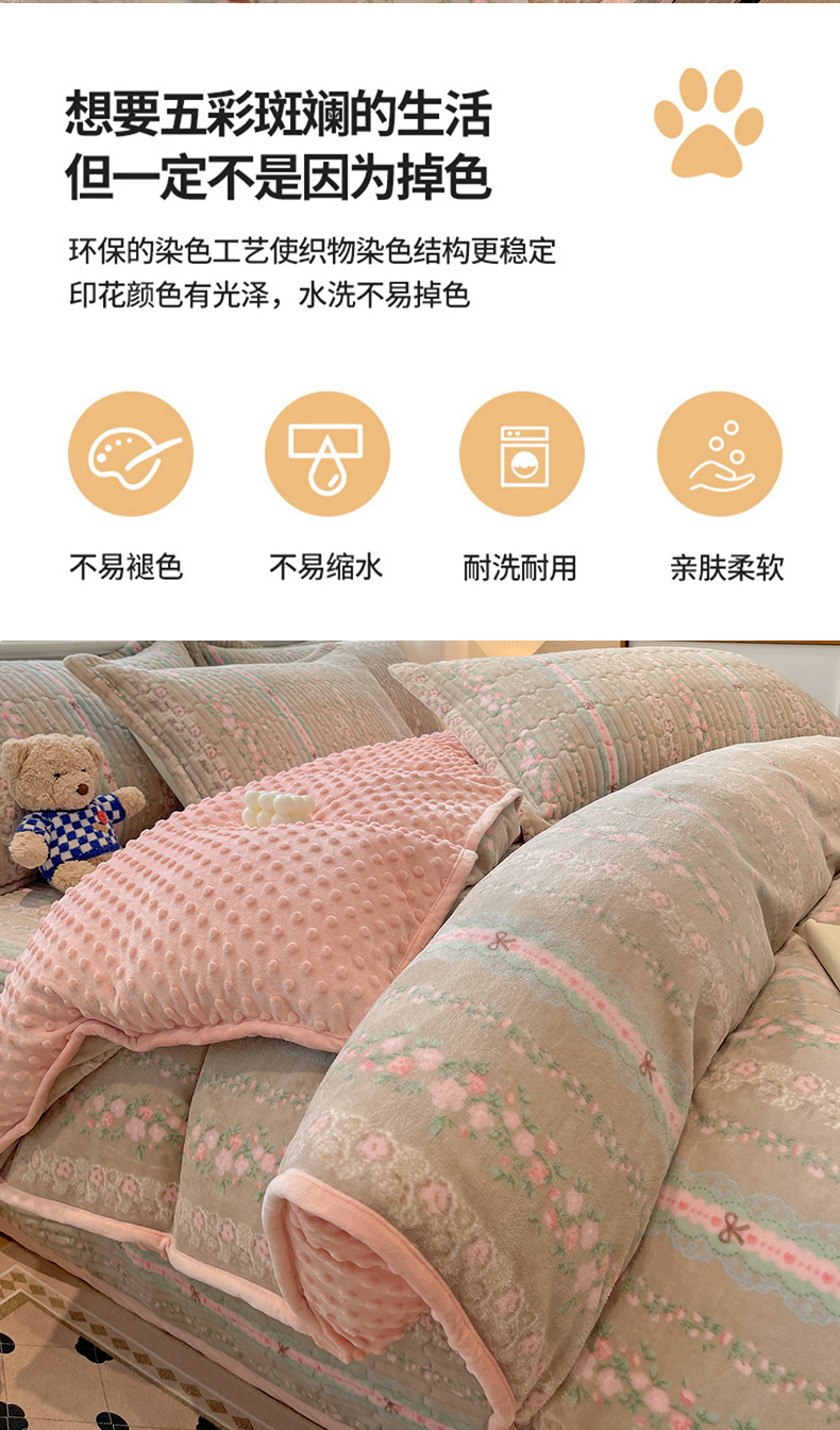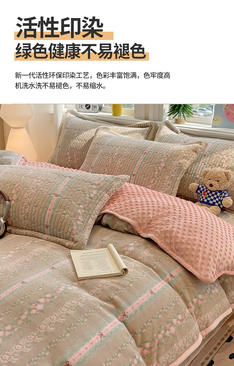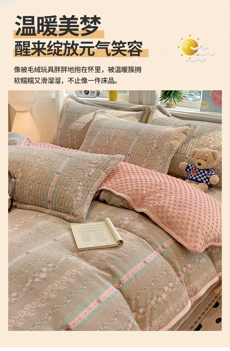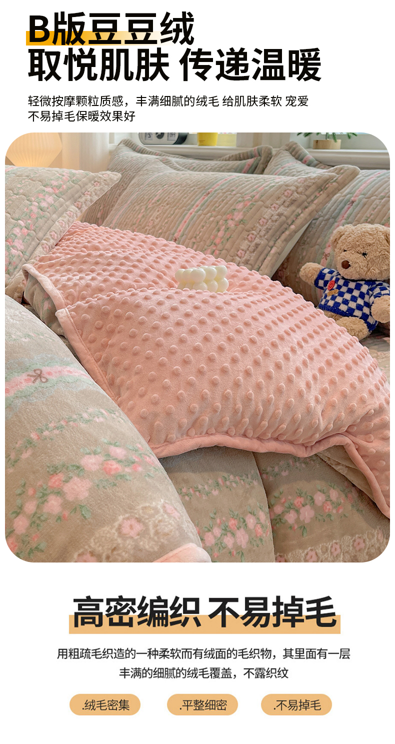 商品名称:元熙 2025新款印花小清新韩国绒牛奶绒豆豆床盖四件套-蔷薇粉