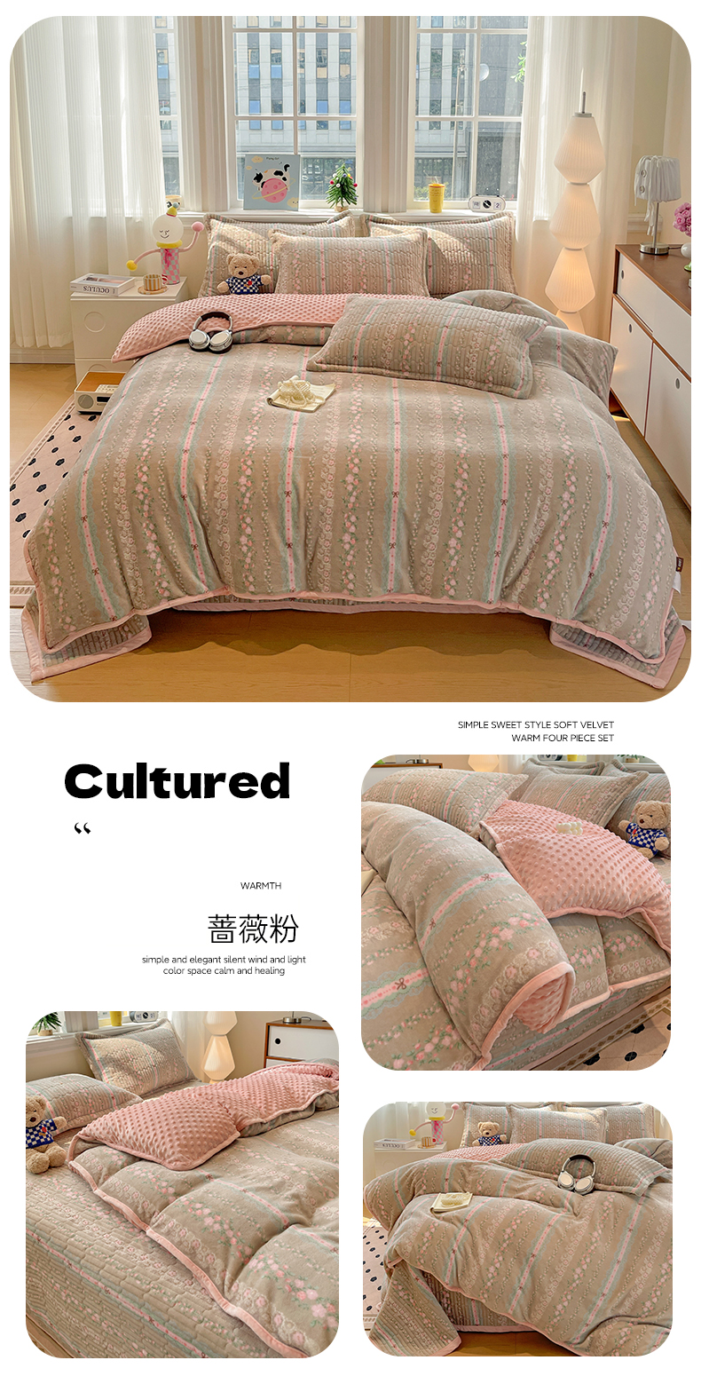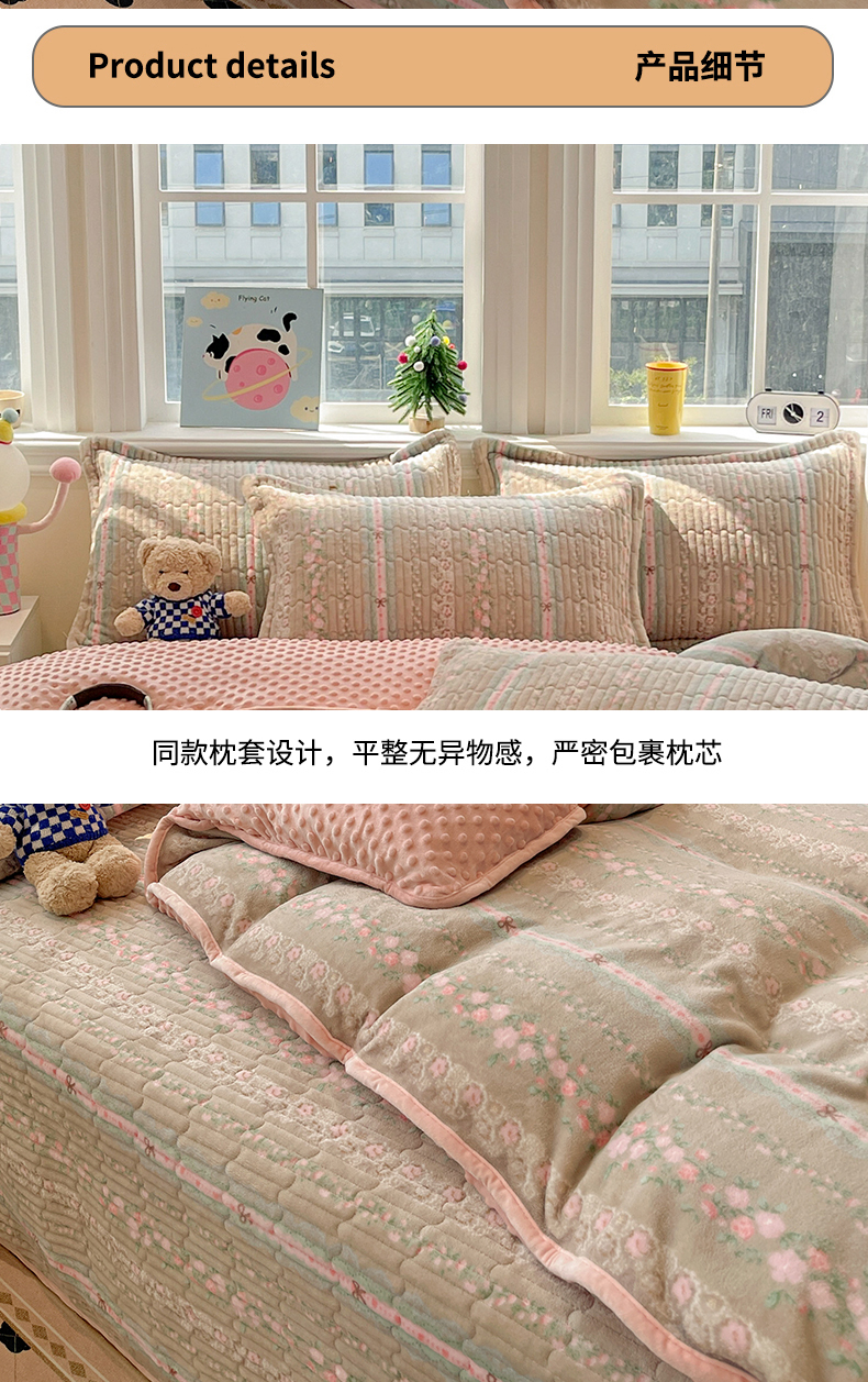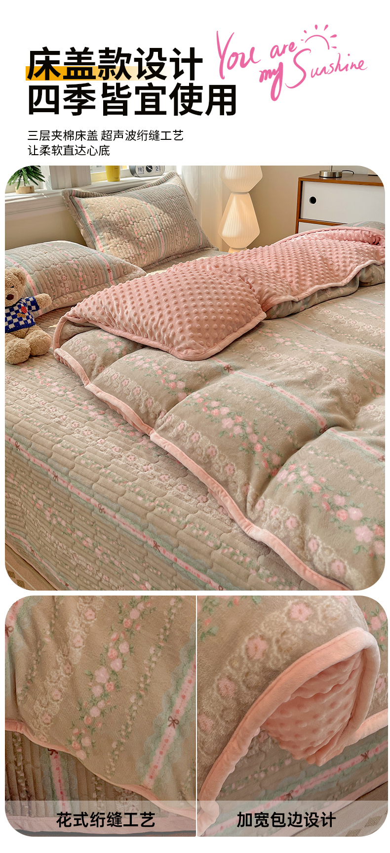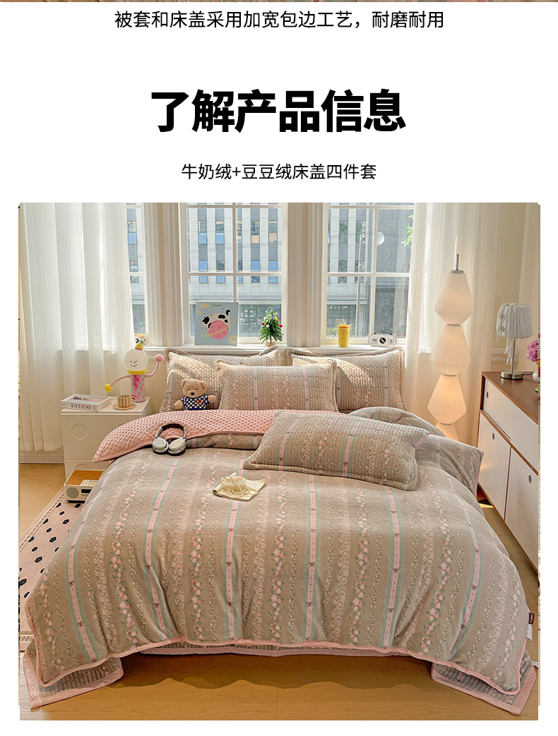 商品名称:元熙 2025新款印花小清新韩国绒牛奶绒豆豆床盖四件套-蔷薇粉