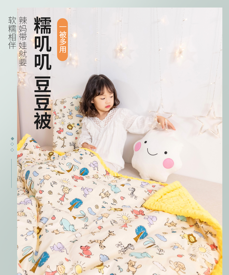 商品名称:十九色 2025秋冬新款全棉豆豆被春秋被被子被芯 开心乐园