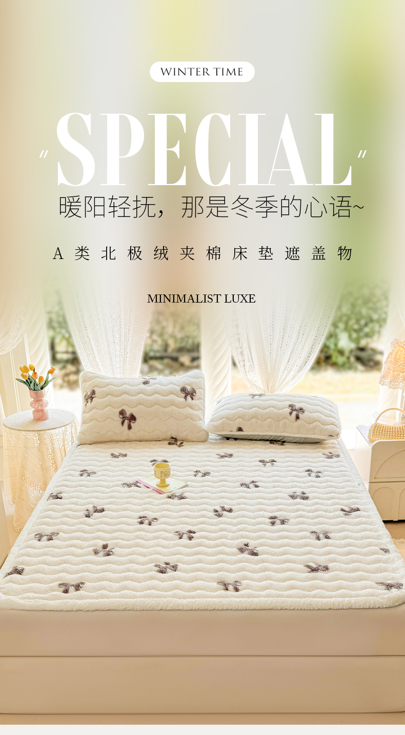商品名称:(总)LIFE.丽芙 2025秋冬新款北极绒加厚夹棉床垫床护垫单件牛奶绒床褥床垫子三件套
