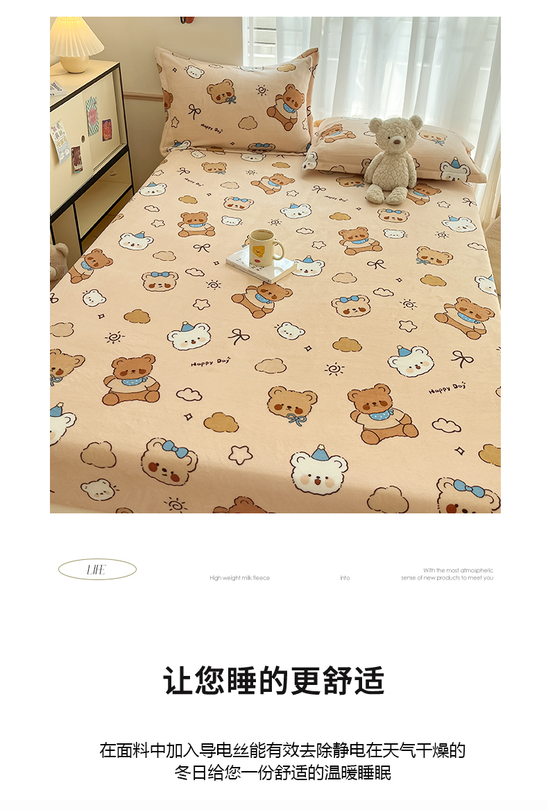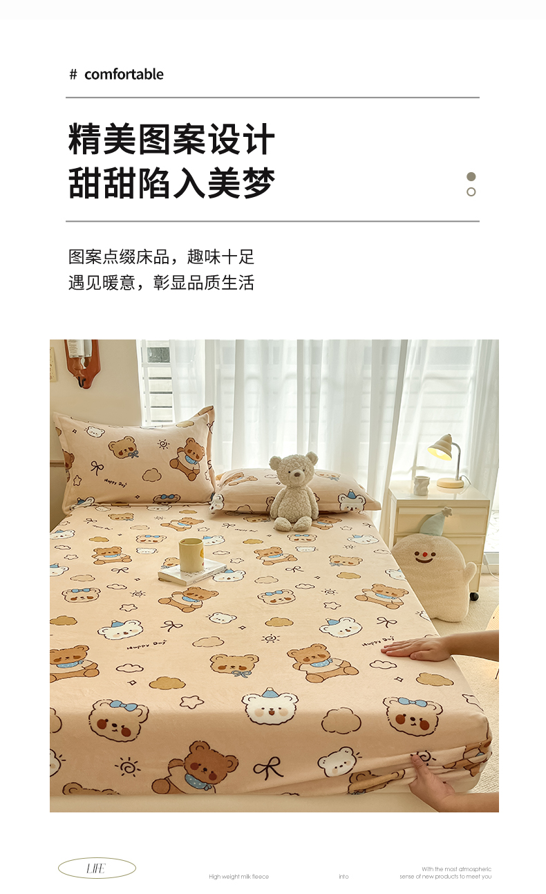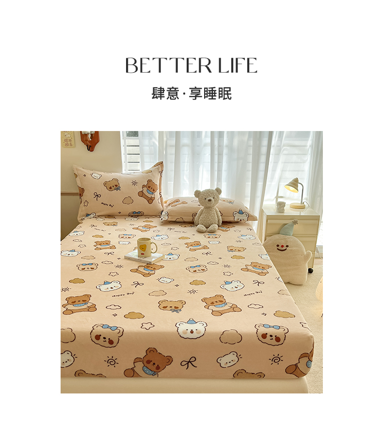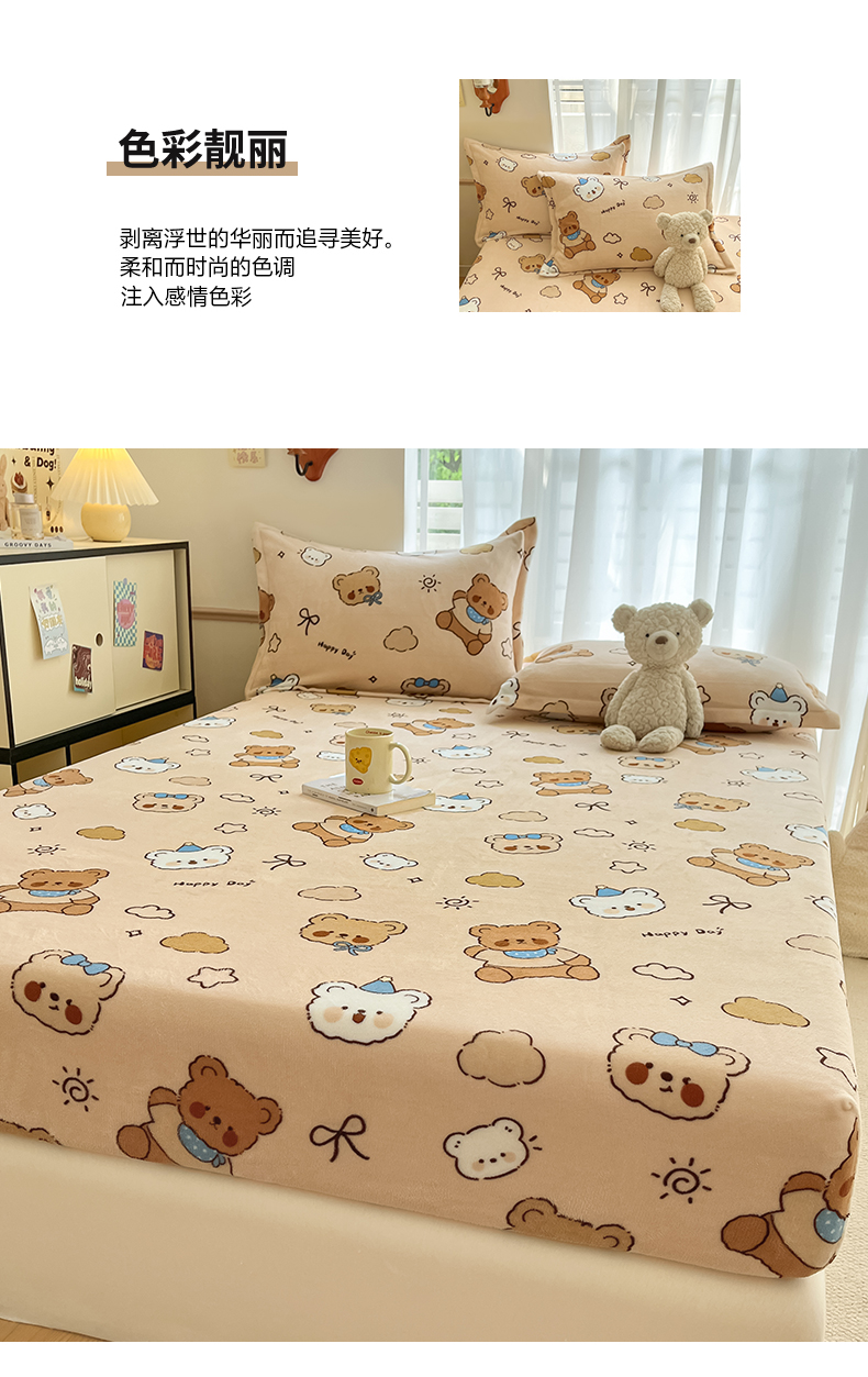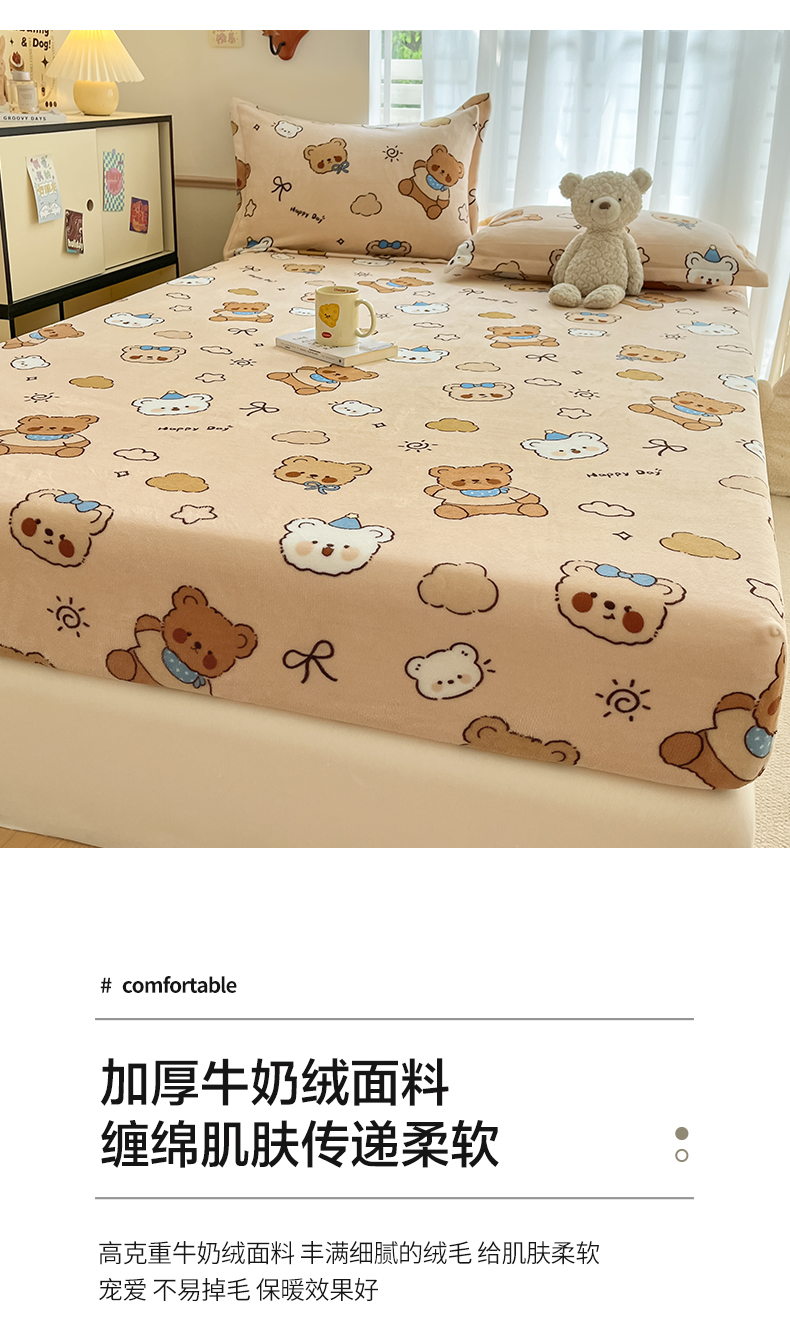 • 91家纺网 家纺一手货源 找家纺 寻米 2025新款高克重加厚保暖牛奶绒床笠-大床图 布朗尼熊