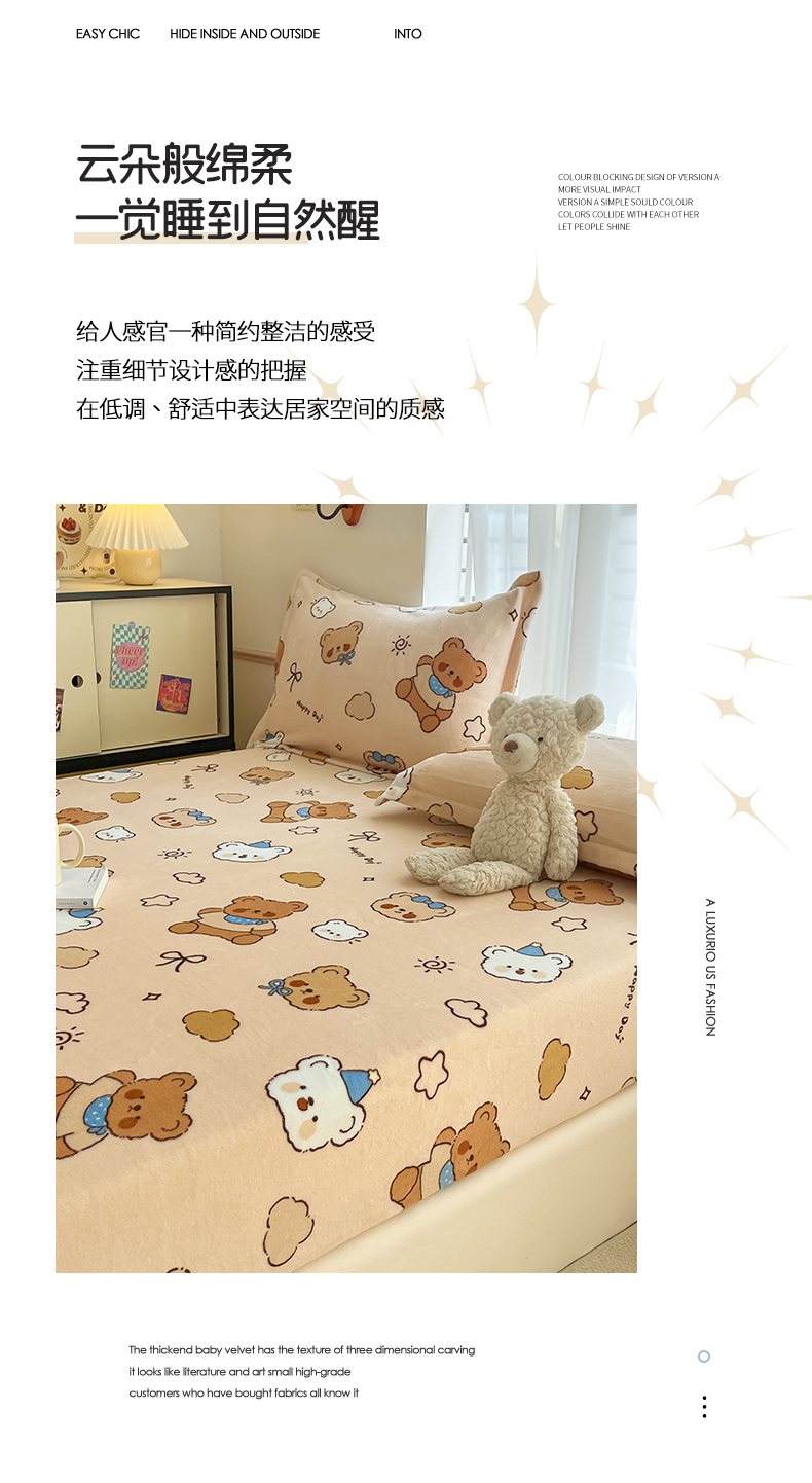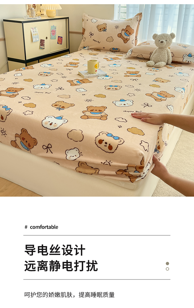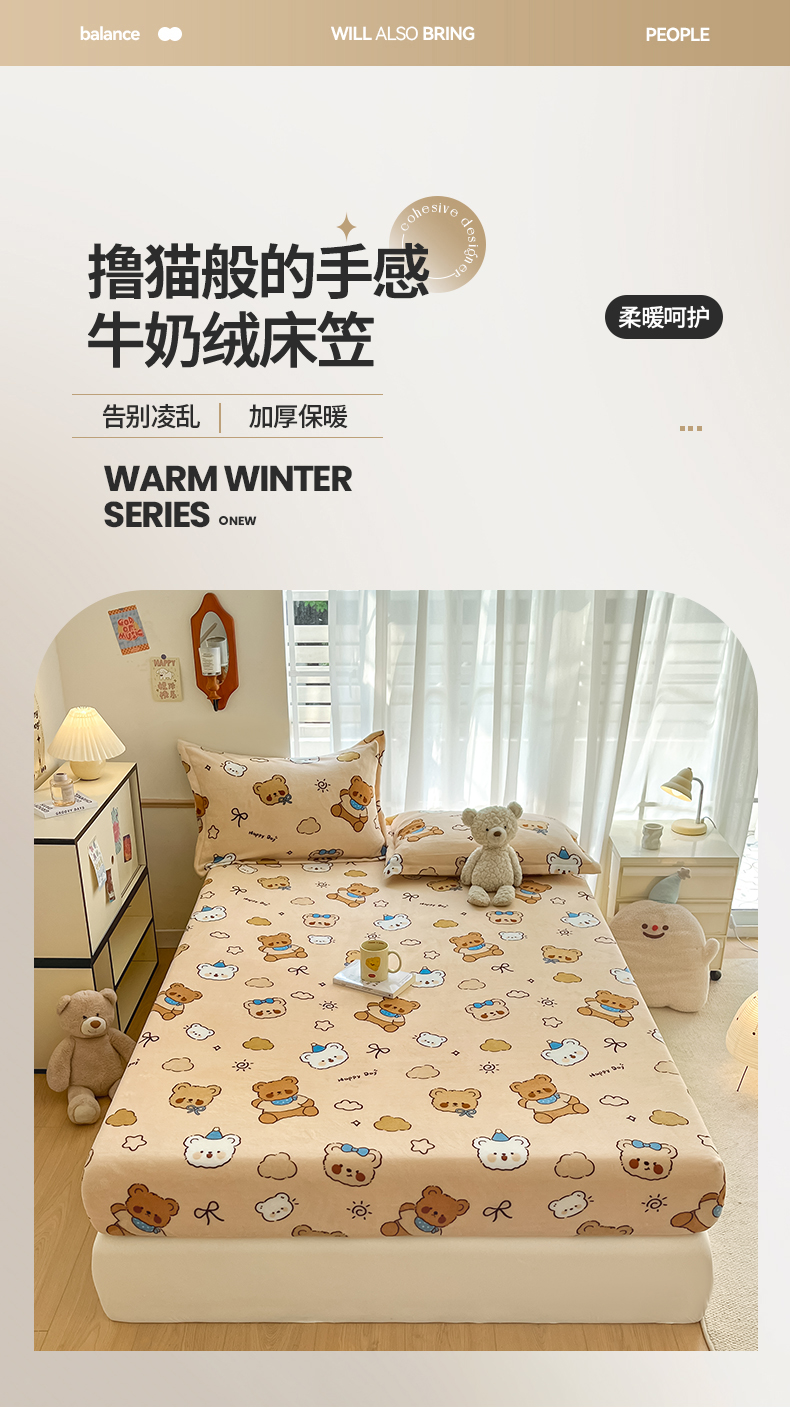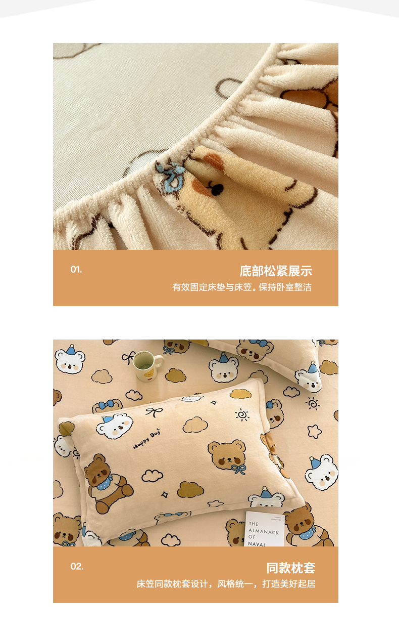 • 91家纺网 家纺一手货源 找家纺 寻米 2025新款高克重加厚保暖牛奶绒床笠-大床图 布朗尼熊
