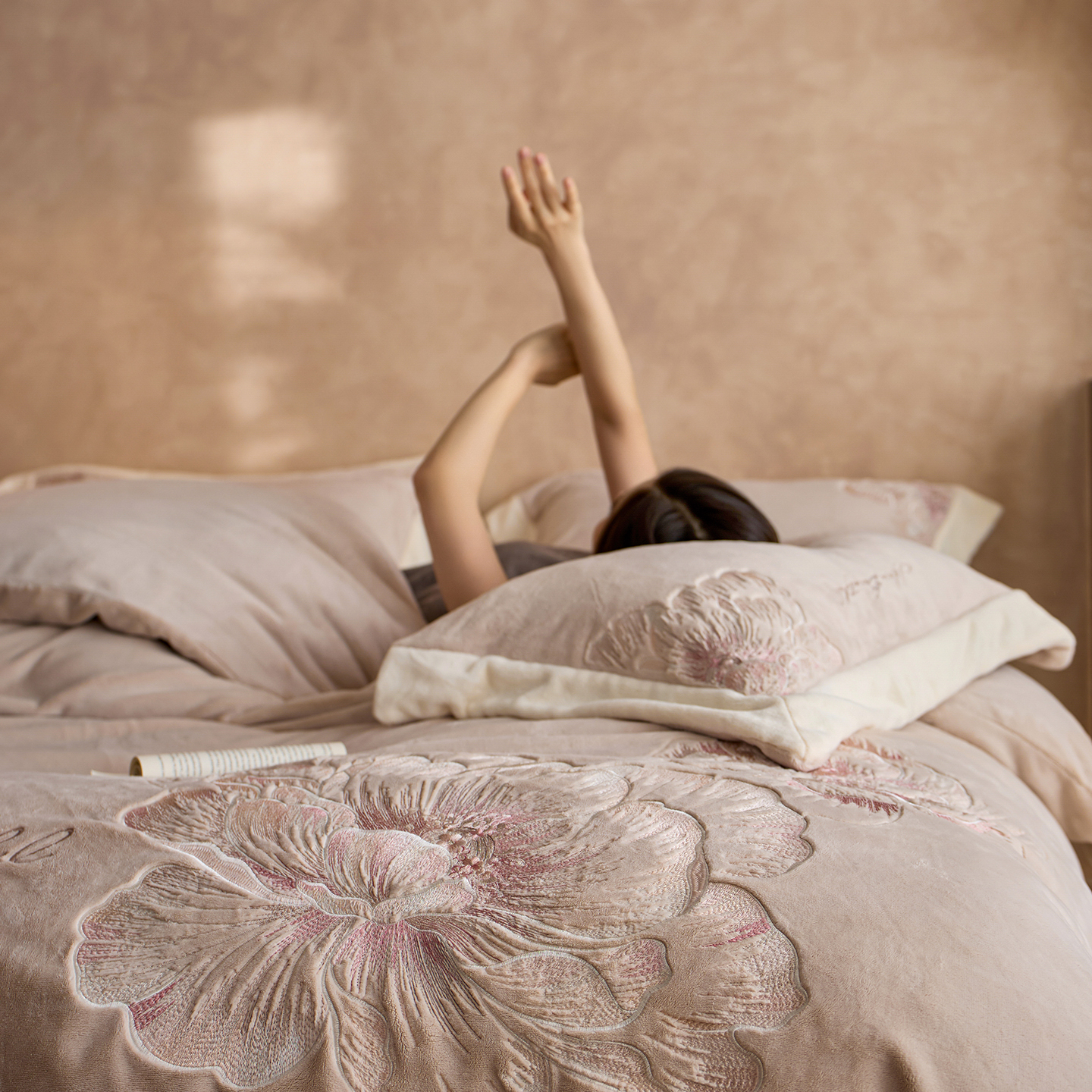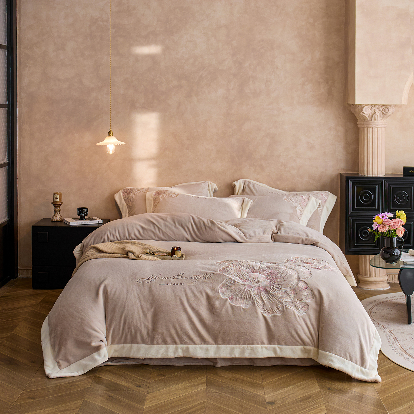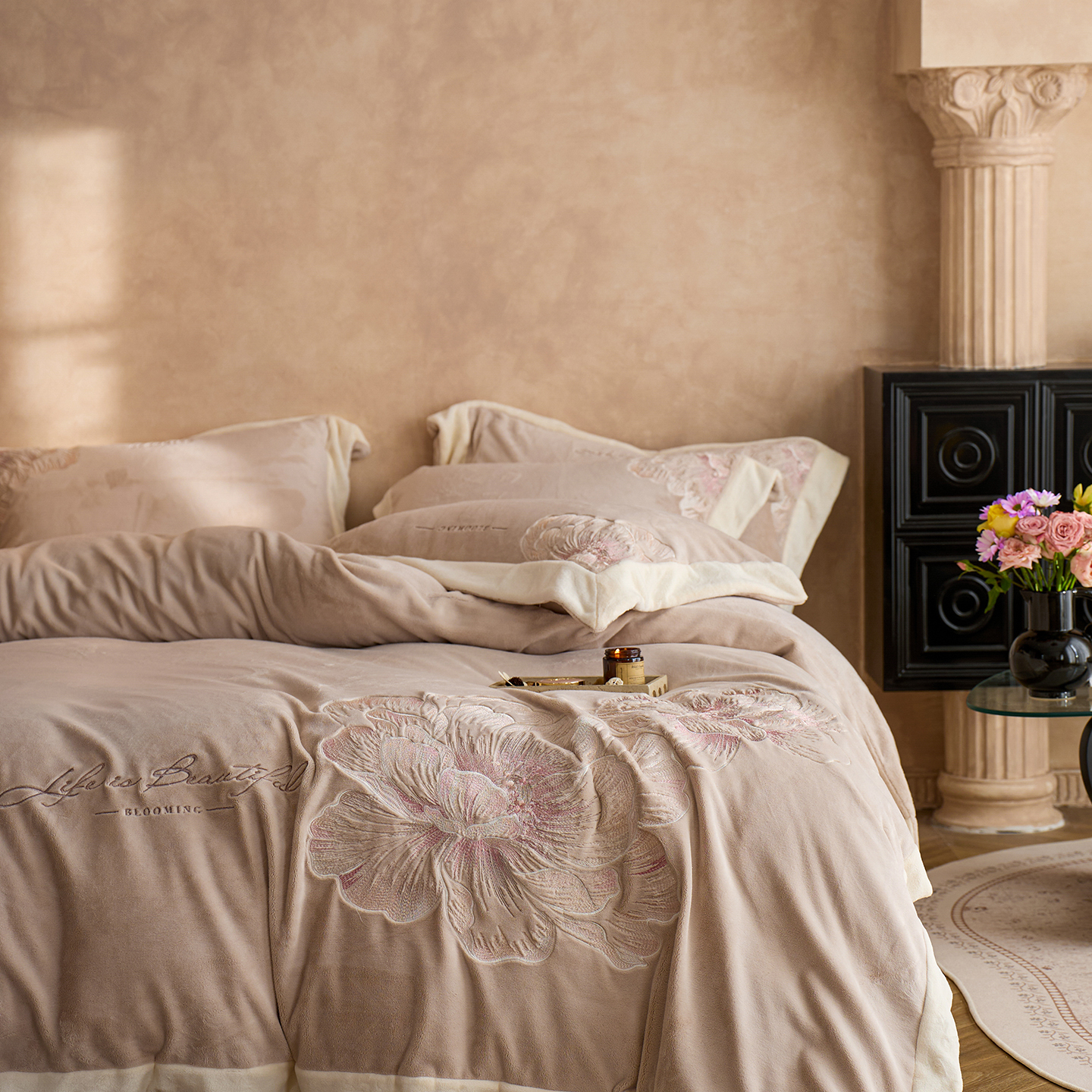 (总)蓝梦 2025新款270克全消光牛奶绒系列四件套-罗浮花影