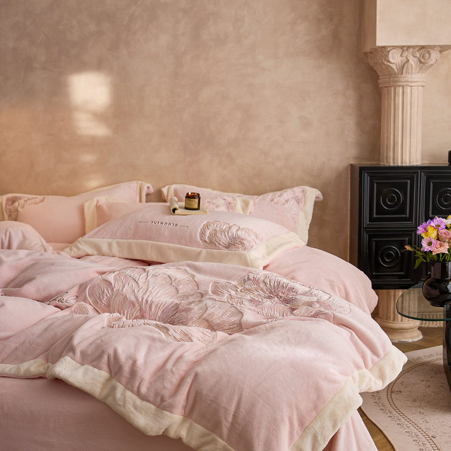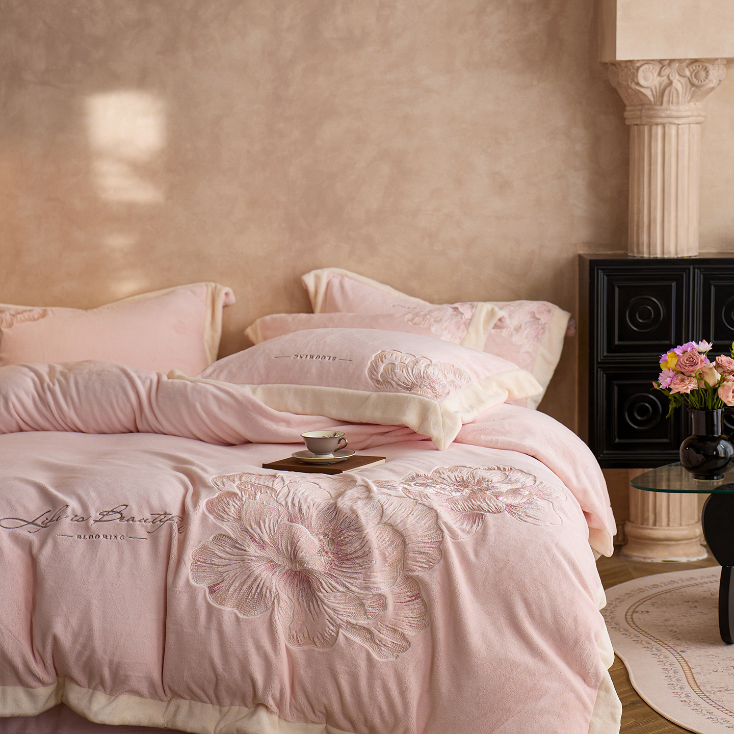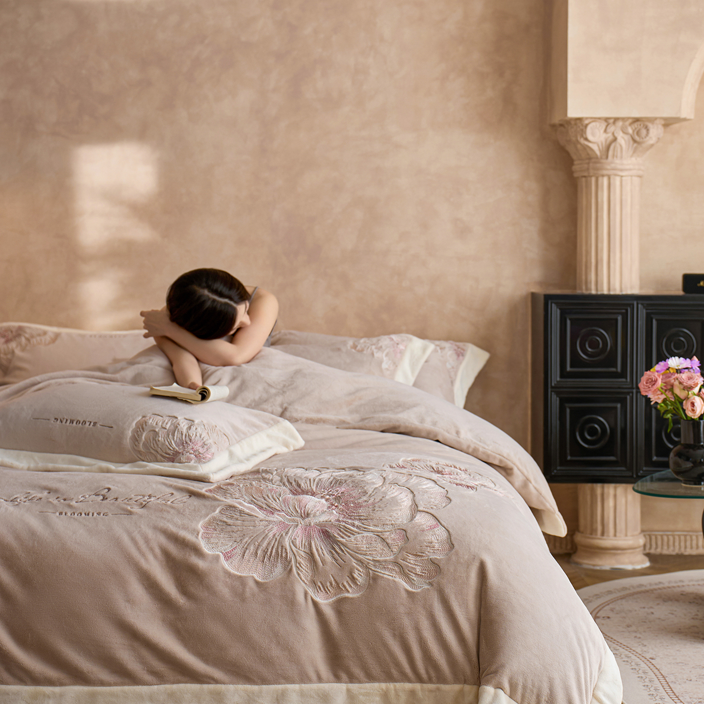 (总)蓝梦 2025新款270克全消光牛奶绒系列四件套-罗浮花影