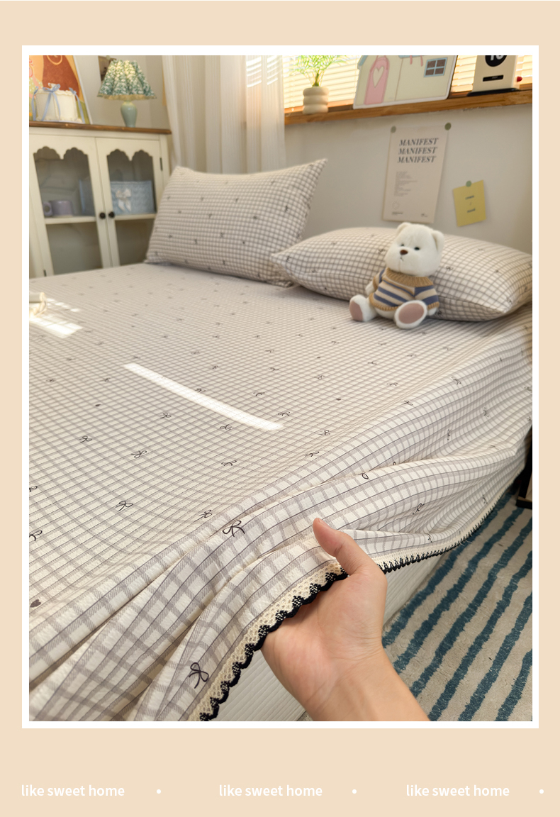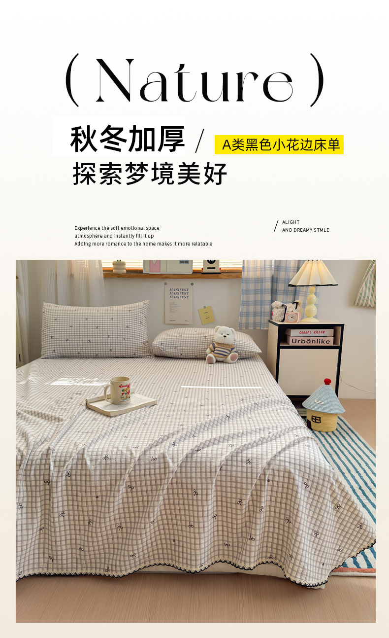 当前位置: 91家纺网 > 商品网购 > 床品套件 > 三件套 > 沐芷 2025 秋冬加厚床单高克重双层纱黑色小花边被单床单三件套 格纹蝶结