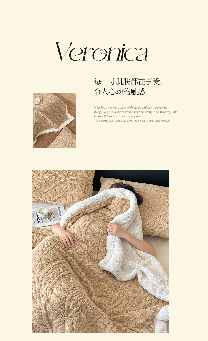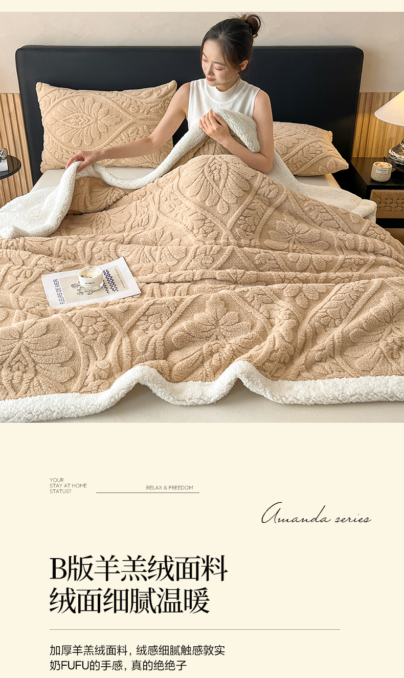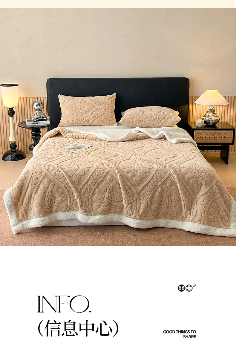 商品名称:莱家富 2026新款双层提花塔芙绒绒羊羔绒毛毯-繁花系列双层毯(可供跨境压缩) 繁花-香槟咖
